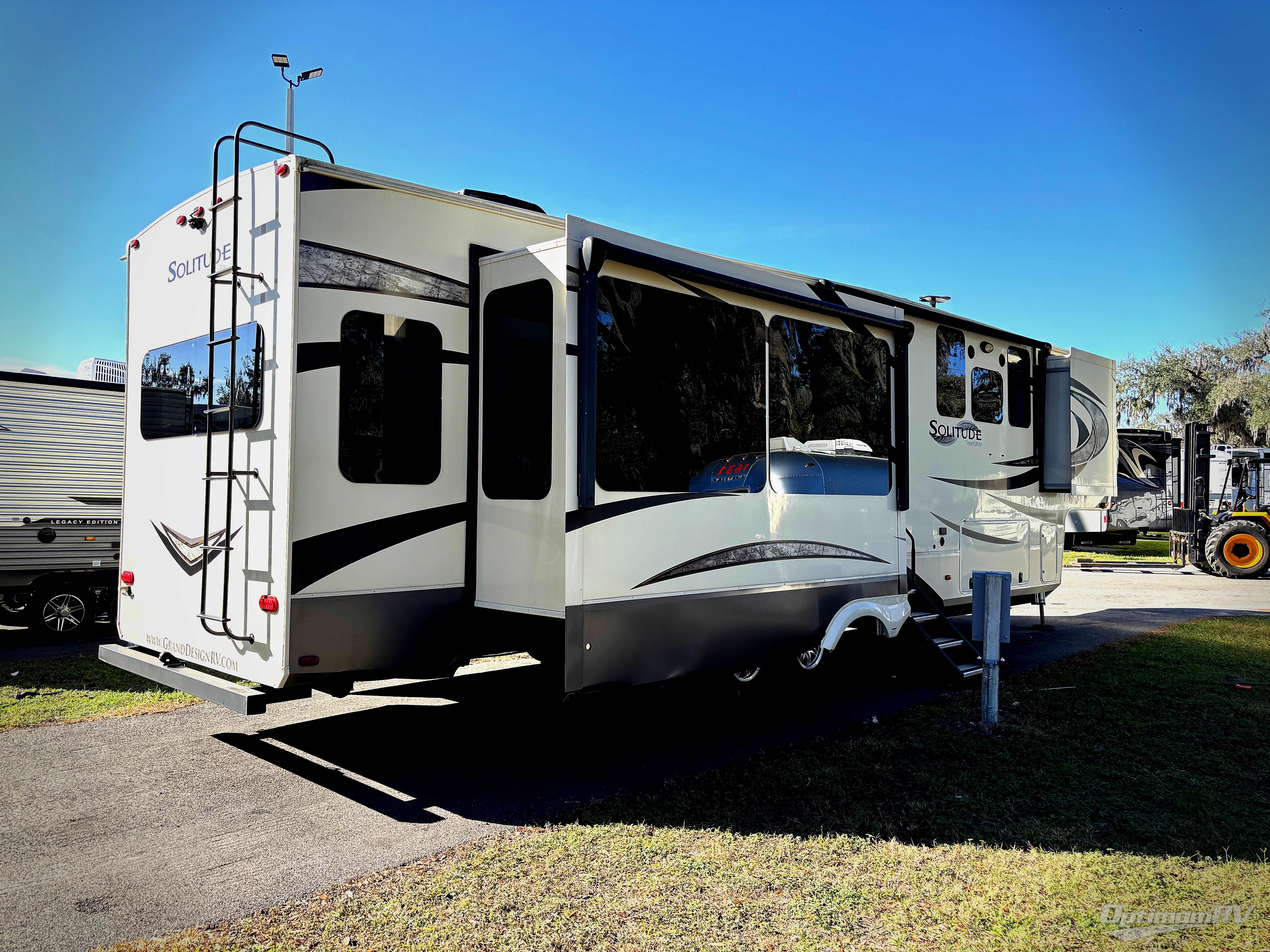With each Solitude fifth wheel by Grand Design you will receive refined residential finishes, and affordable luxury for your extended stays or weekend get-a-ways. From the solid foundation on an exclusive superchassis and maximum insulation to the taller ceilings, taller and deeper cabinets, the power reclining theatre seating with removable swivel tables including a heat and massage function to the pet dish drawer, the Stealth AC system, and the Weather-Tek package allowing you to travel any season, you will enjoy everything about your Solitude. It's time to redefine luxury living where ever you decide to land.