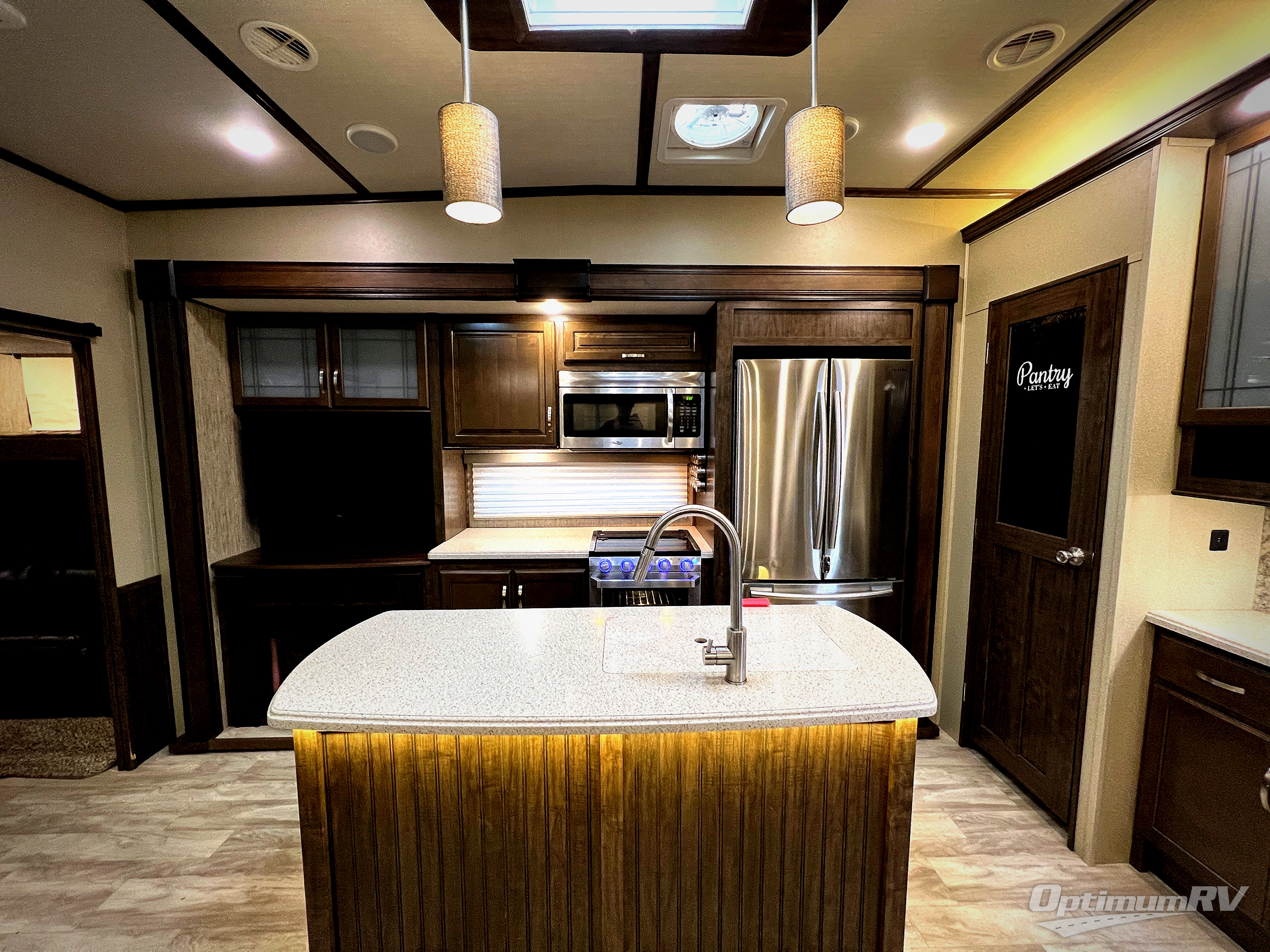 If you are a full-timer or a weekend warrior that enjoys taking the family with you to see the countryside, this fifth wheel might be perfect for you. The owners can relax in the front master suite while the kids call the rear bunkhouse with a half bath and second exterior entry door their own private oasis away from mom and dad. Everyone will enjoy coming together for meals in the spacious kitchen and living area thanks to the dual slide outs. The cook can make meals with the professional grade stainless steel cooktop and convection microwave, plus store dry goods and snacks in the the oversized pantry and stainless steel 12 cu. ft. four door refrigerator. The cook might even like to grill burgers outside on the outdoor kitchen. Be sure to keep warm by the fireplace while watching your favorite team on the big screen TV. You might even like to choose a few options such as adding a washer and dryer, a king size bed, a residential refrigerator, and/or a super sofa. Come see what else you can't camp without in this Solitude S-Class.
