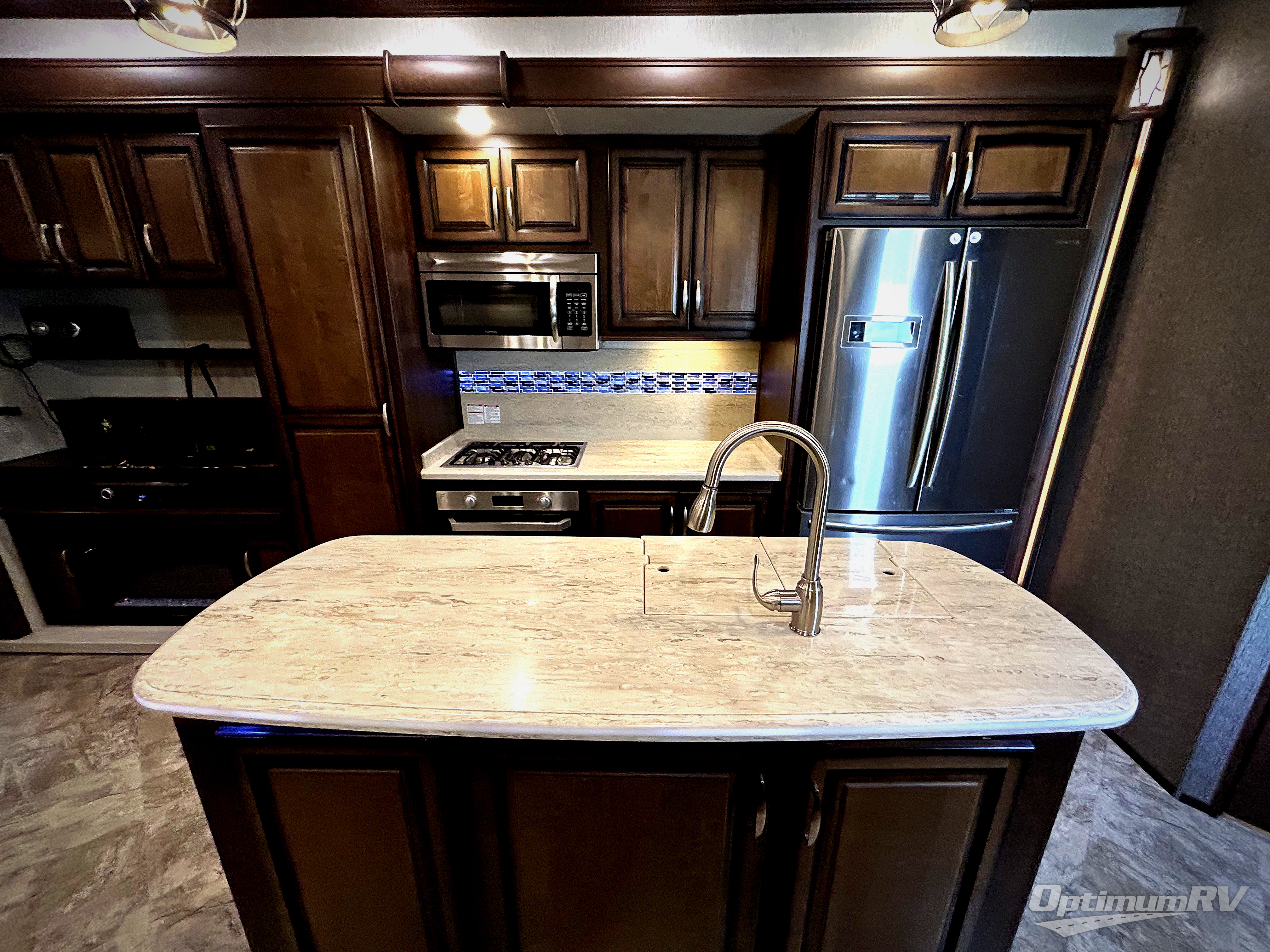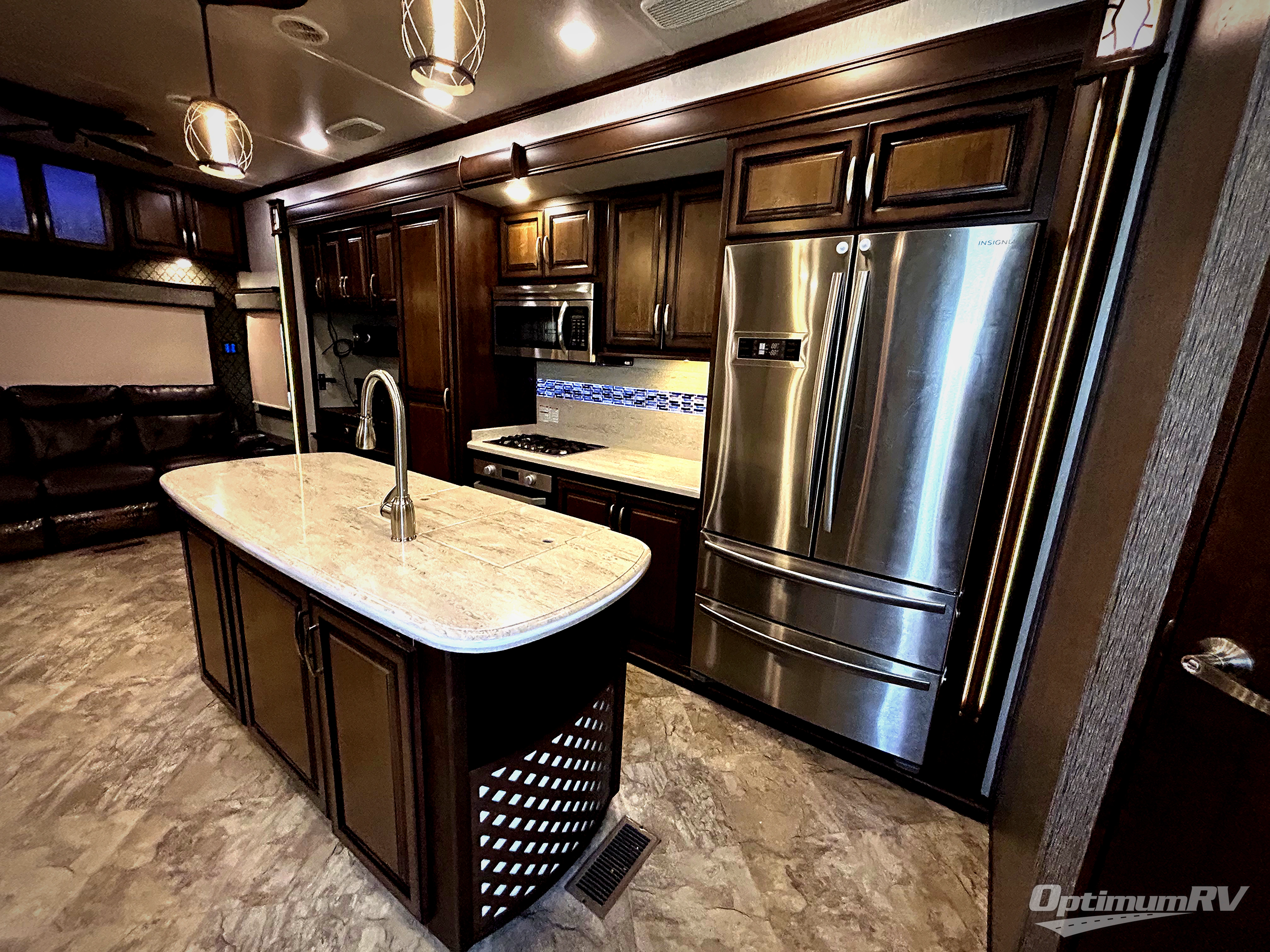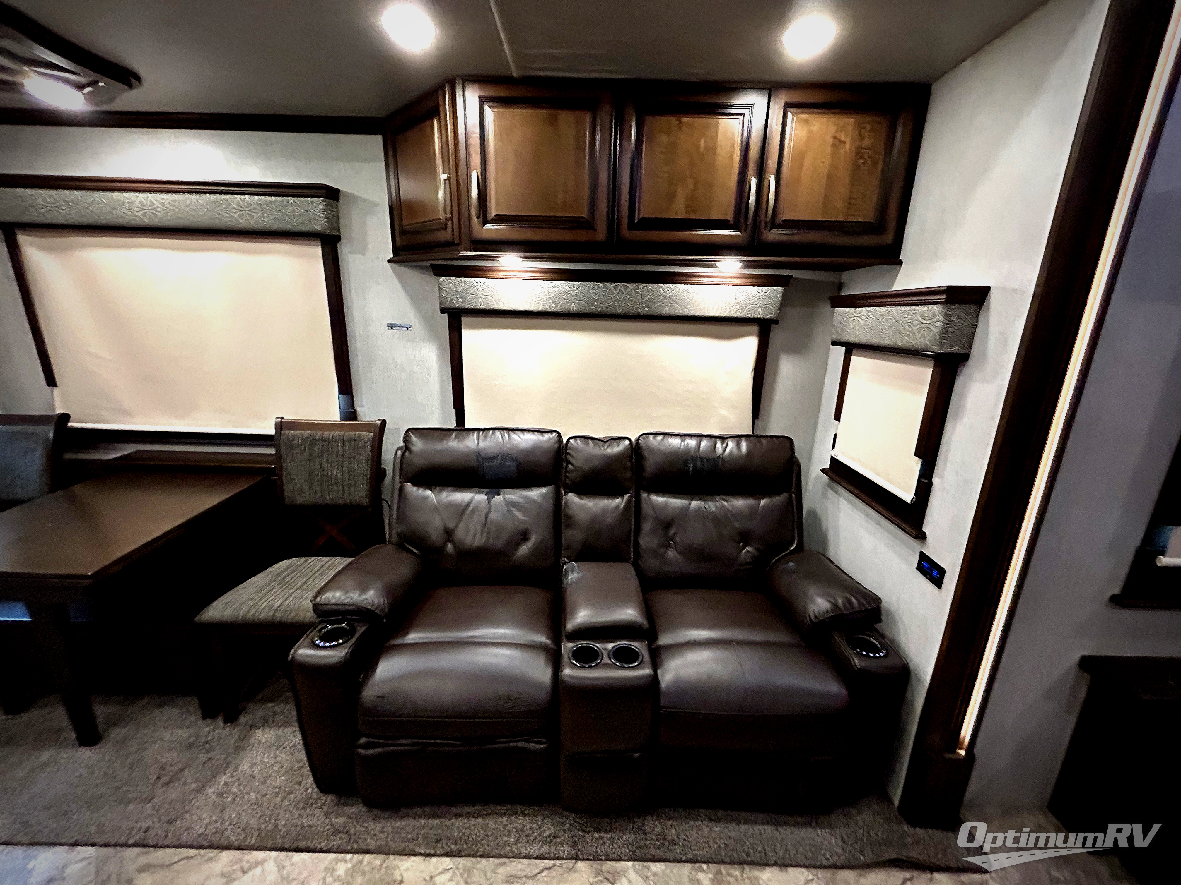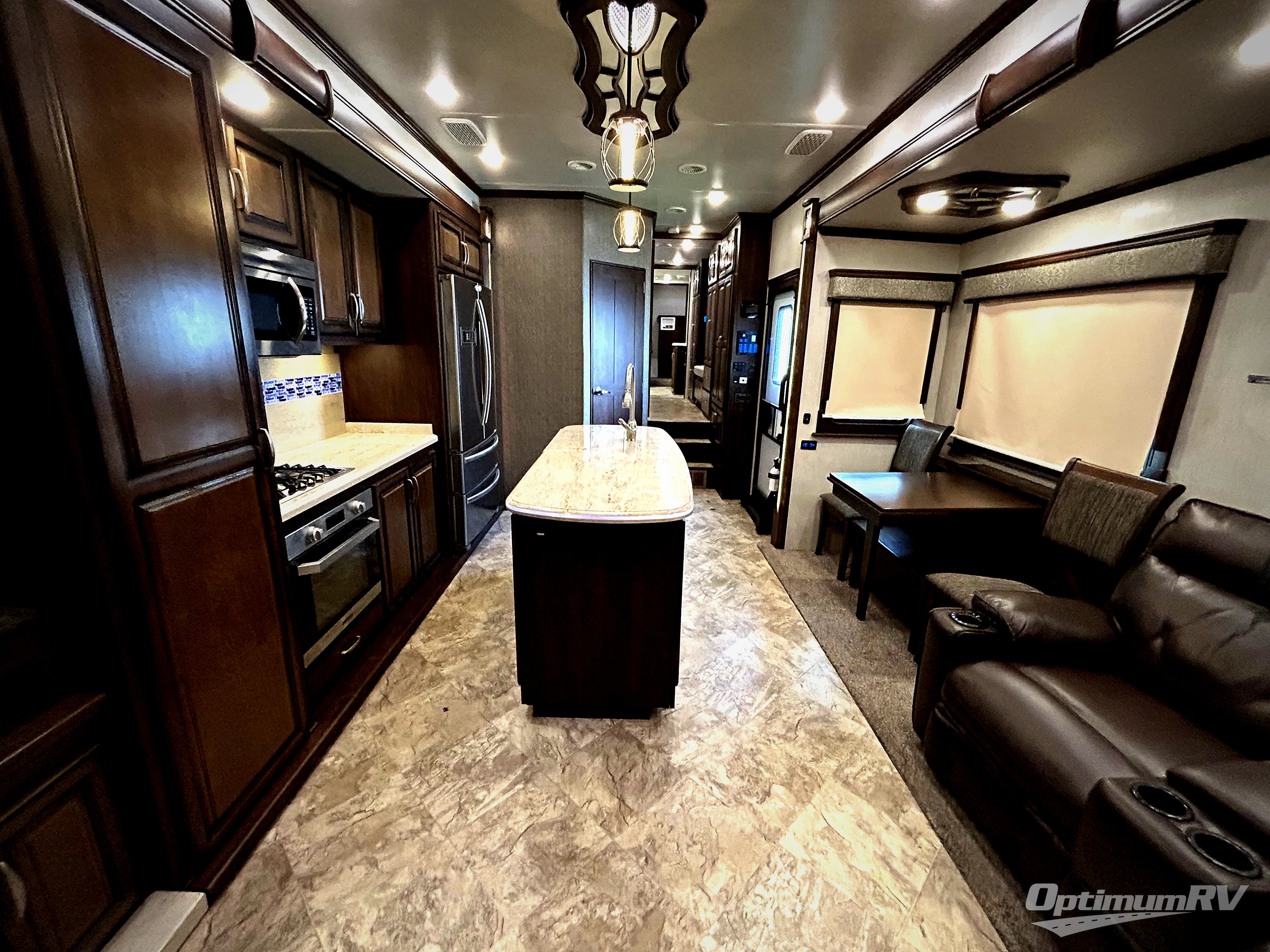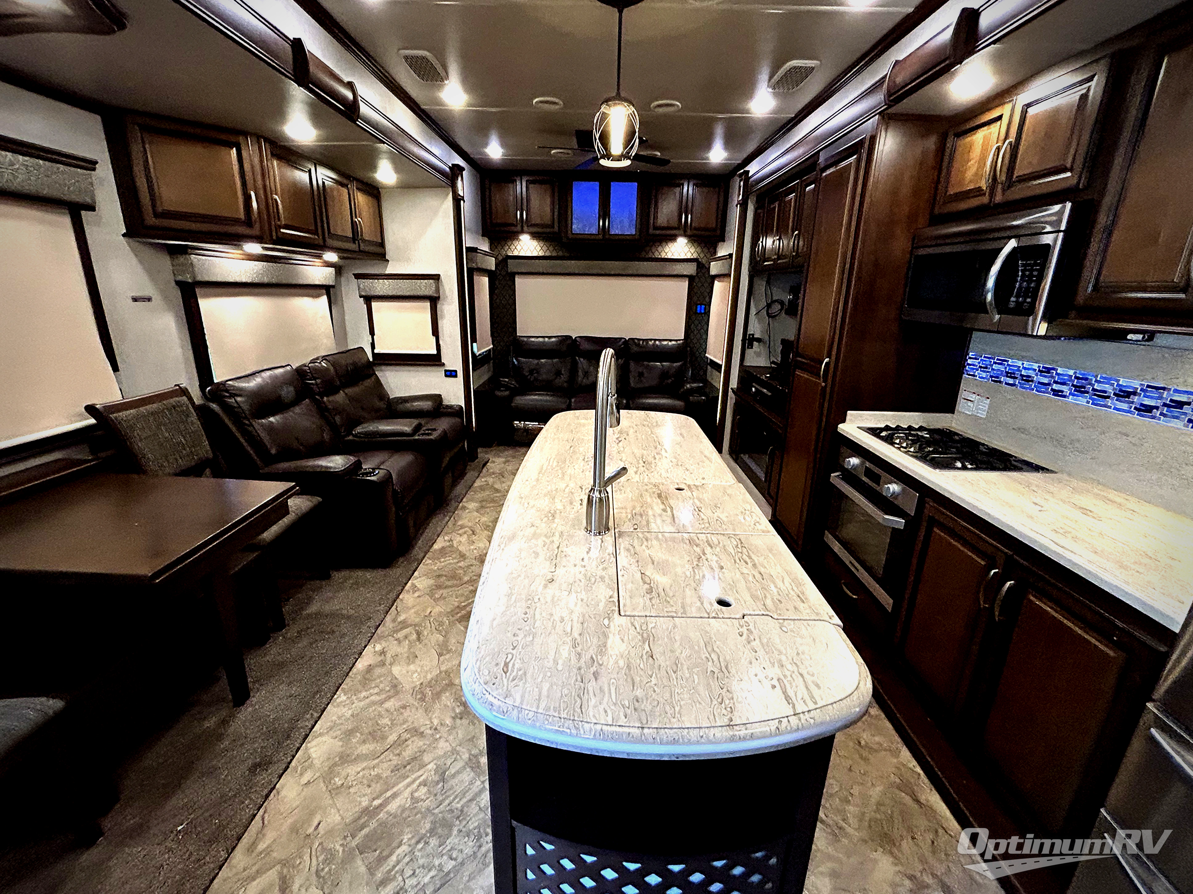 Come experience true luxury when you camp with the Landmark 365 by Heartland RV. These fifth wheels boast of comfort and convenience throughout. The sofa tables offer USB ports, so you can easily charge your electronic devices. You will also enjoy power theater seating with heat and massage - now that's luxury! The bedrooms offer adjustable reading lights, a power tilt bed, plus a TV. A few key features that you would find at home include a backlit tile backsplash, a residential refrigerator, and a farmhouse stainless single basin kitchen sink with a cutting board. There are also beautiful Maple hardwood cabinets throughout plus so much more!