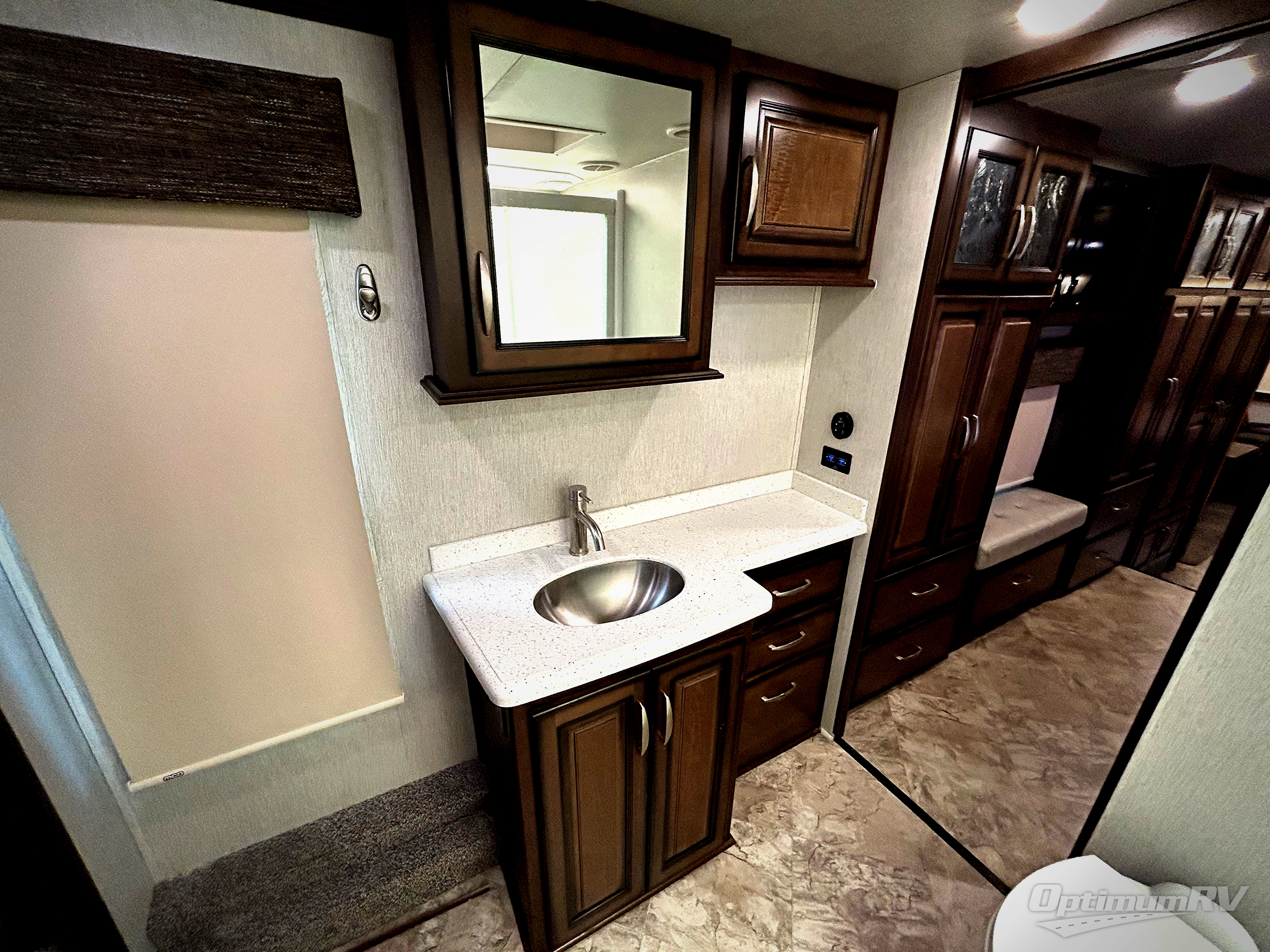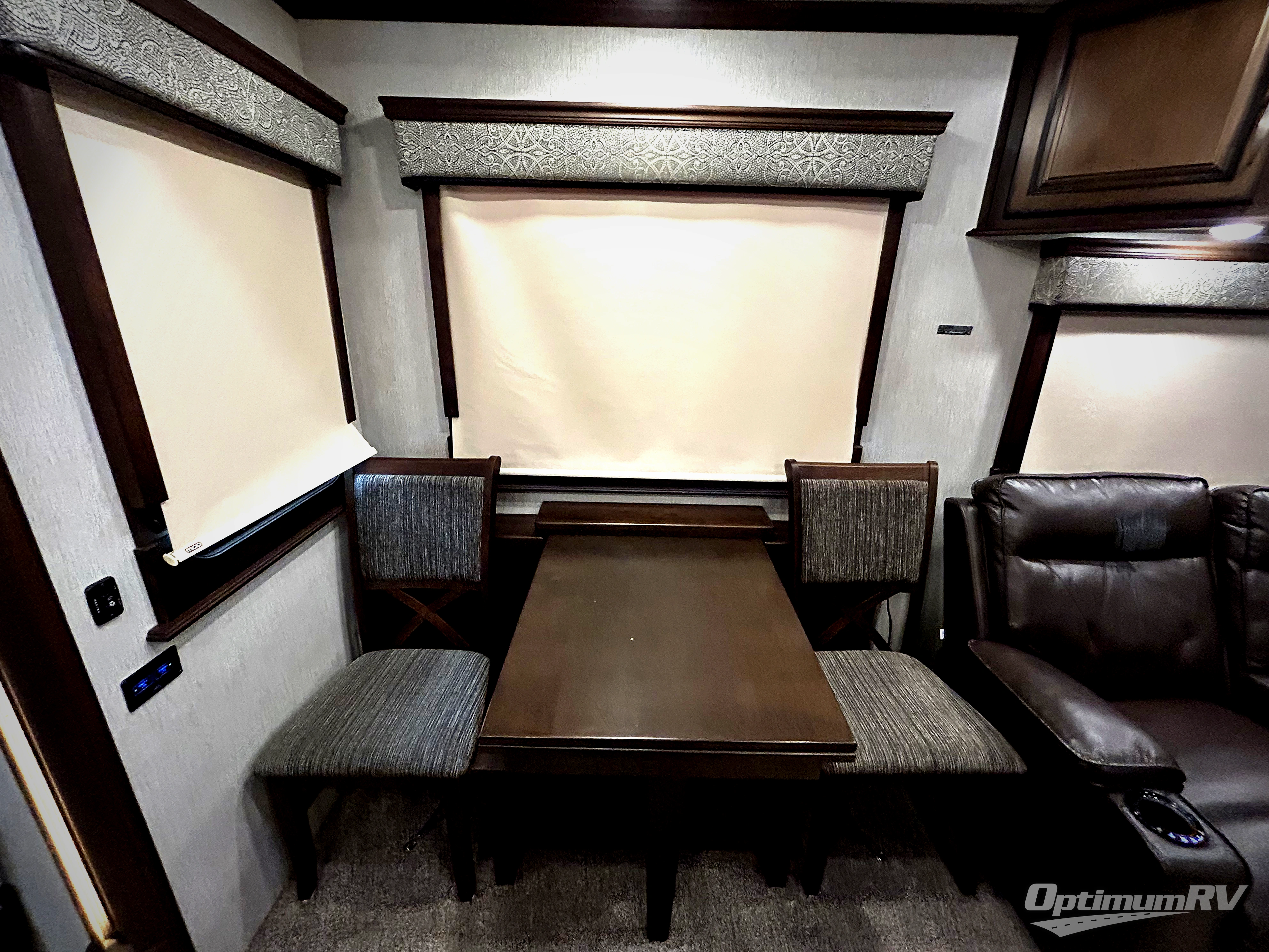 Enjoy spending time away from home and in the comfort of this Heartland Landmark 365 Newport. Throughout this model you will find plenty of features that you would expect from home. As you step inside you will love the LED lighting throughout, plus be sure to notice the edge lit solid surface countertops. When you are ready to watch a little TV then come enjoy the rear living area where you will find a TV with a soundbar, a comfortable sofa, and theater seats. While you are relaxing in the living room you can also charge your electronic devices from the USB ports at the sofa table plus so much more!