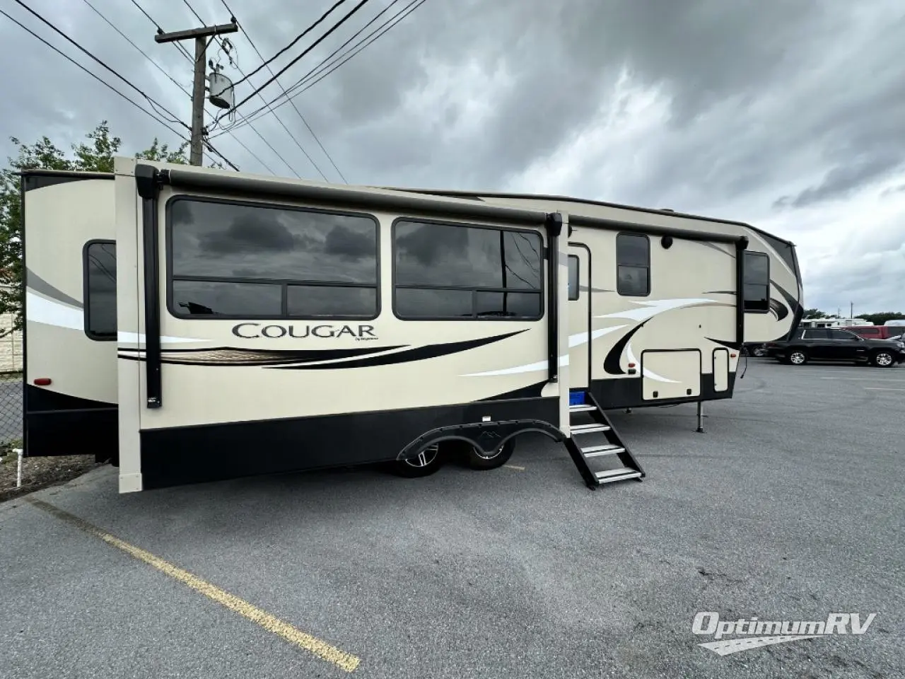 Just envision all the campgrounds you would like to visit this year. You might even decide to invite the grandkids on a few of the trips thanks to the extra sleeping space on the furniture when folded down. Once at your destination, you can began setting up this Cougar by pushing the button to open up the triple slides for more interior floor space. The cook can began making dinner with all the counter space from the kitchen island and storage in the pantry. You might even watch TV, rest by the fireplace, or take a nap in the master bedroom. You will find plenty of storage for your clothes in the bedroom's full height wardrobe and dresser. Outside, the unobstructed pass-through storage allows you to bring along larger outdoor camping items, and the two awnings offer an outdoor living space protected from the elements. Take a look inside and outside, then load up for your next trip.