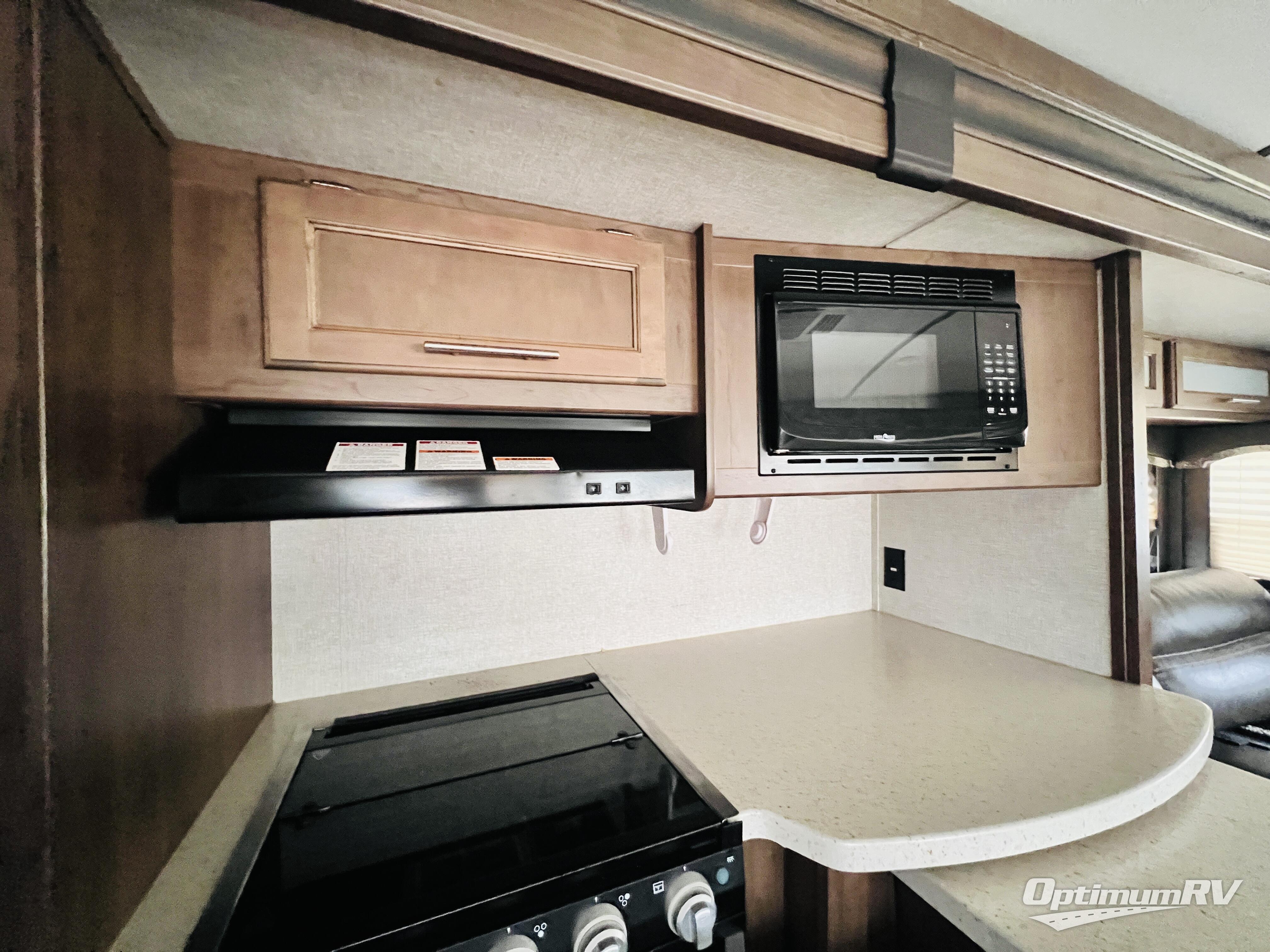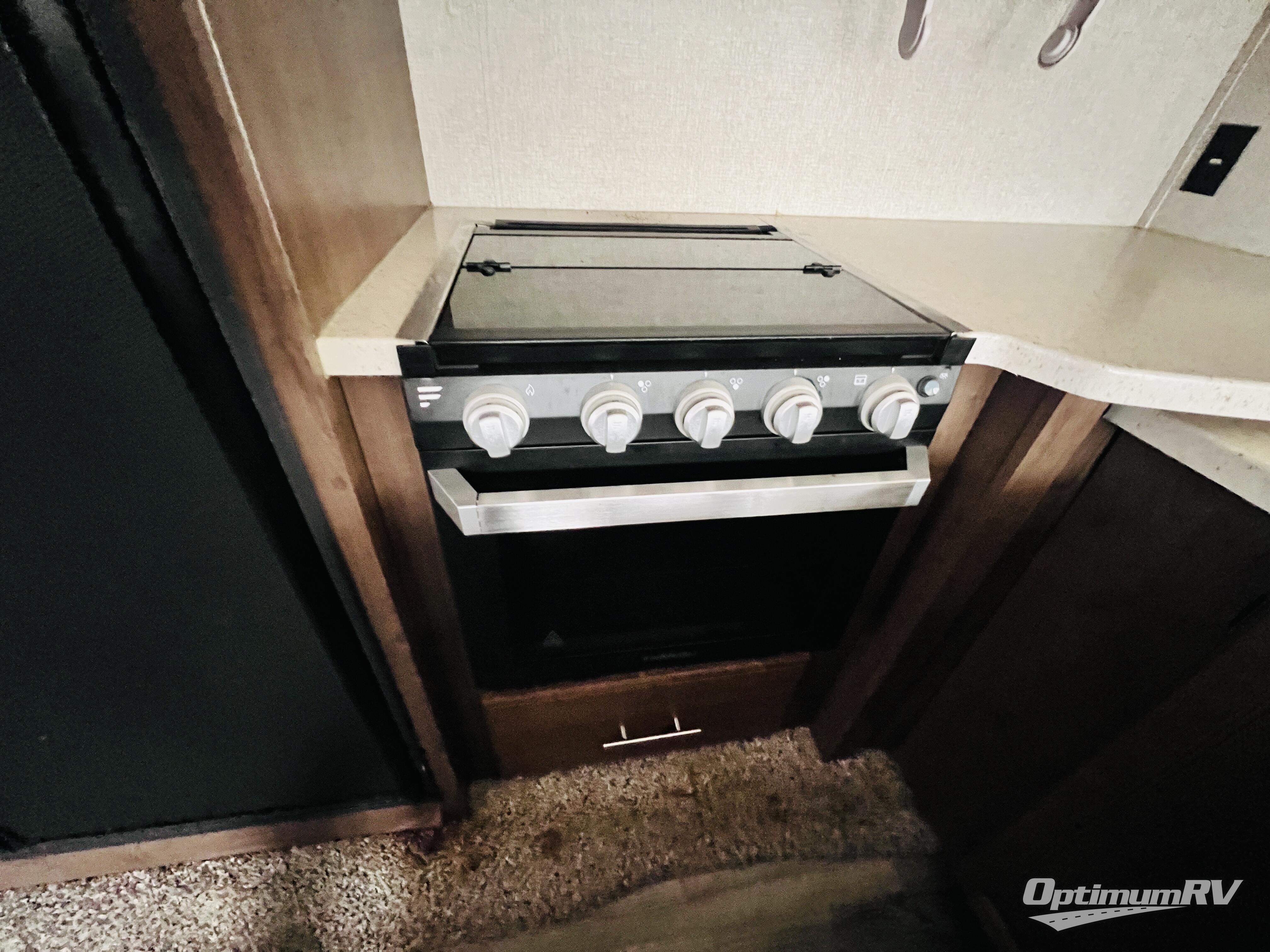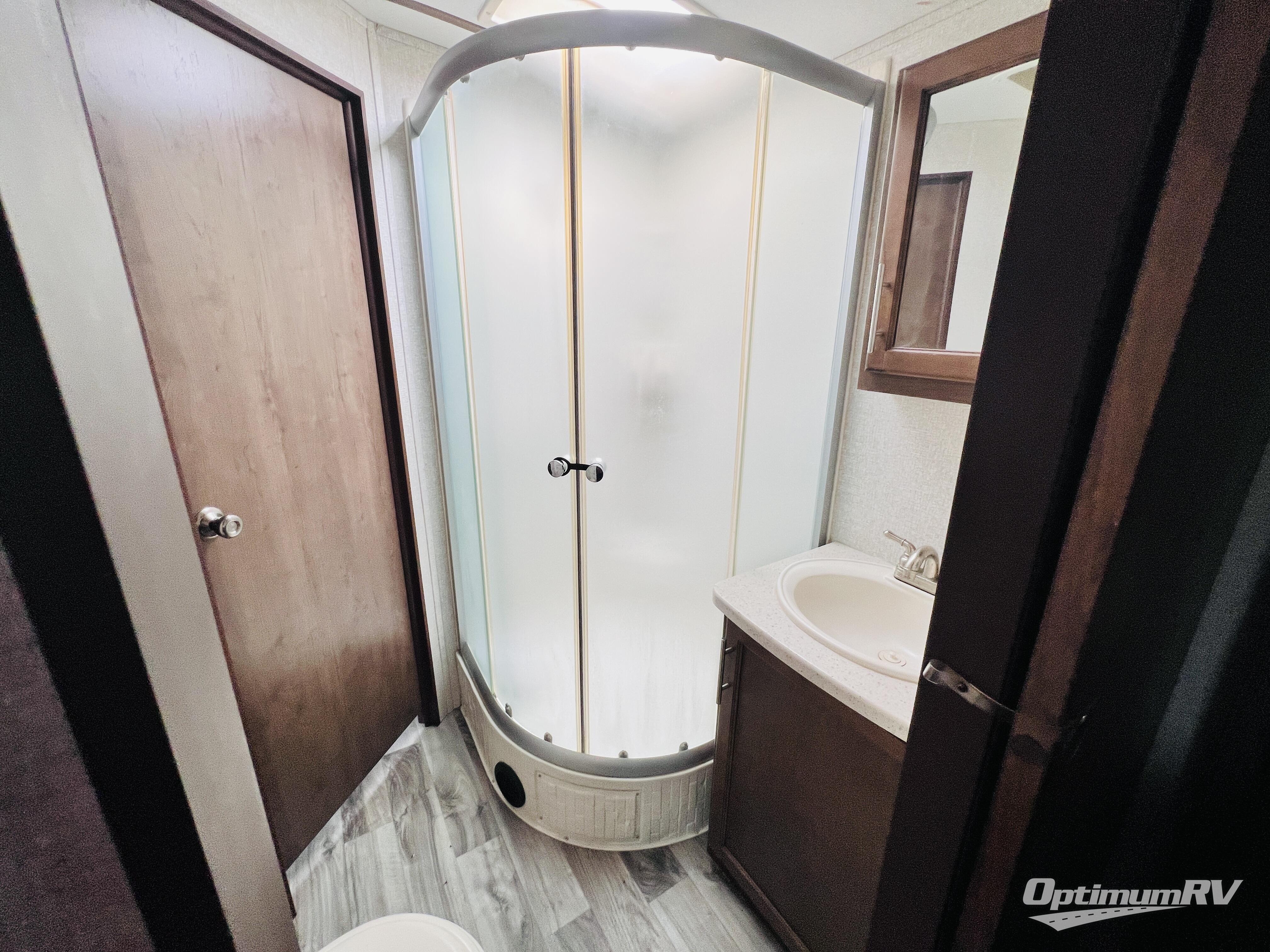 When you are ready for outdoor adventure and indoor comforts, this travel trailer is waiting! Once you have arrived at your destination the power jack will help make setting up a breeze. Inside, you will find a pop-up TV including storage along the rear wall for easy viewing from all the furniture including the two recliners in this combined living and kitchen area. Dual access into the bathroom comes in handy when you have extra friends over. There are triple slide outs providing more floor space for everyone, and the large pantry allows you to stock up at the store before heading out, plus there is much more to see!