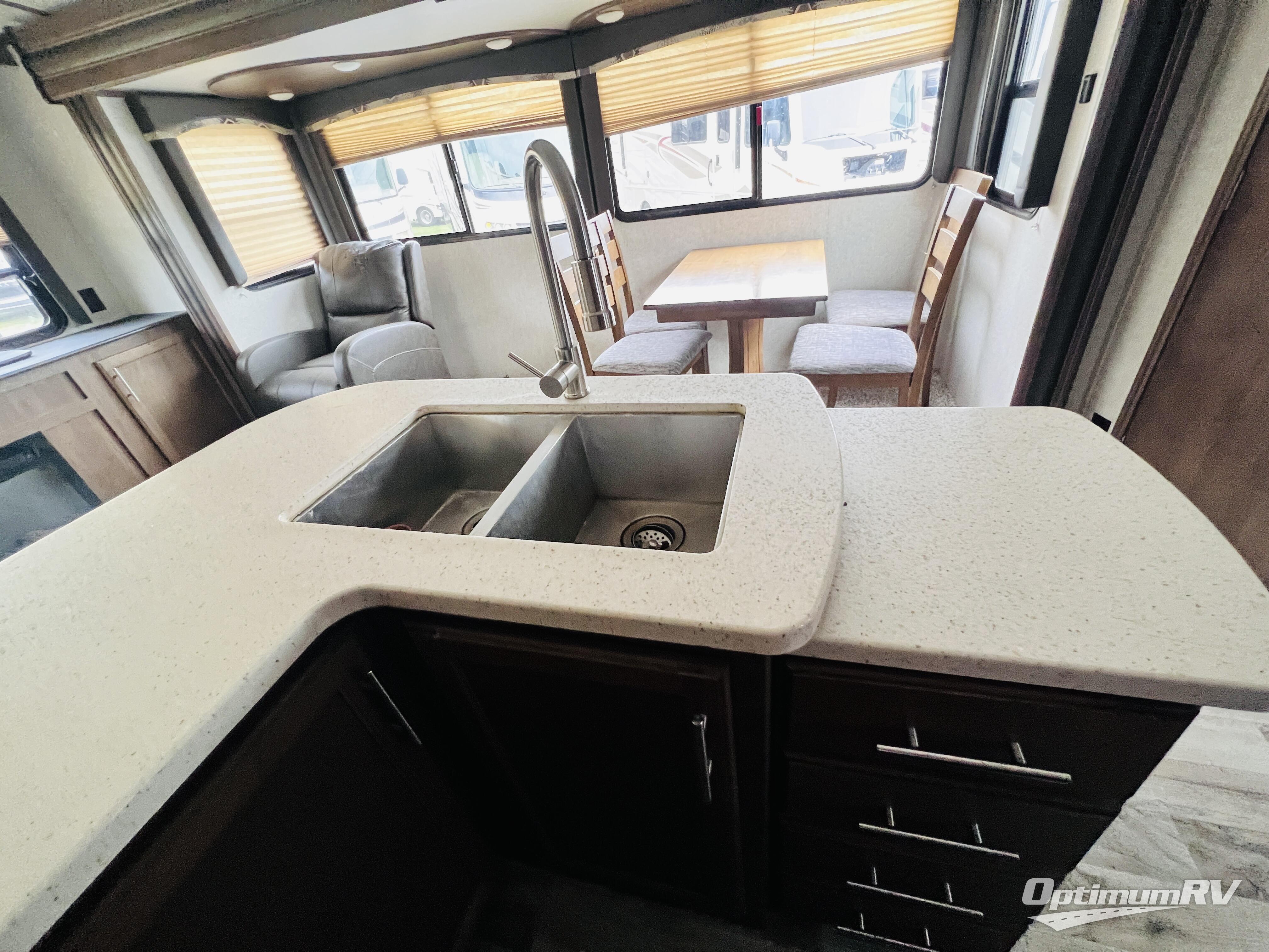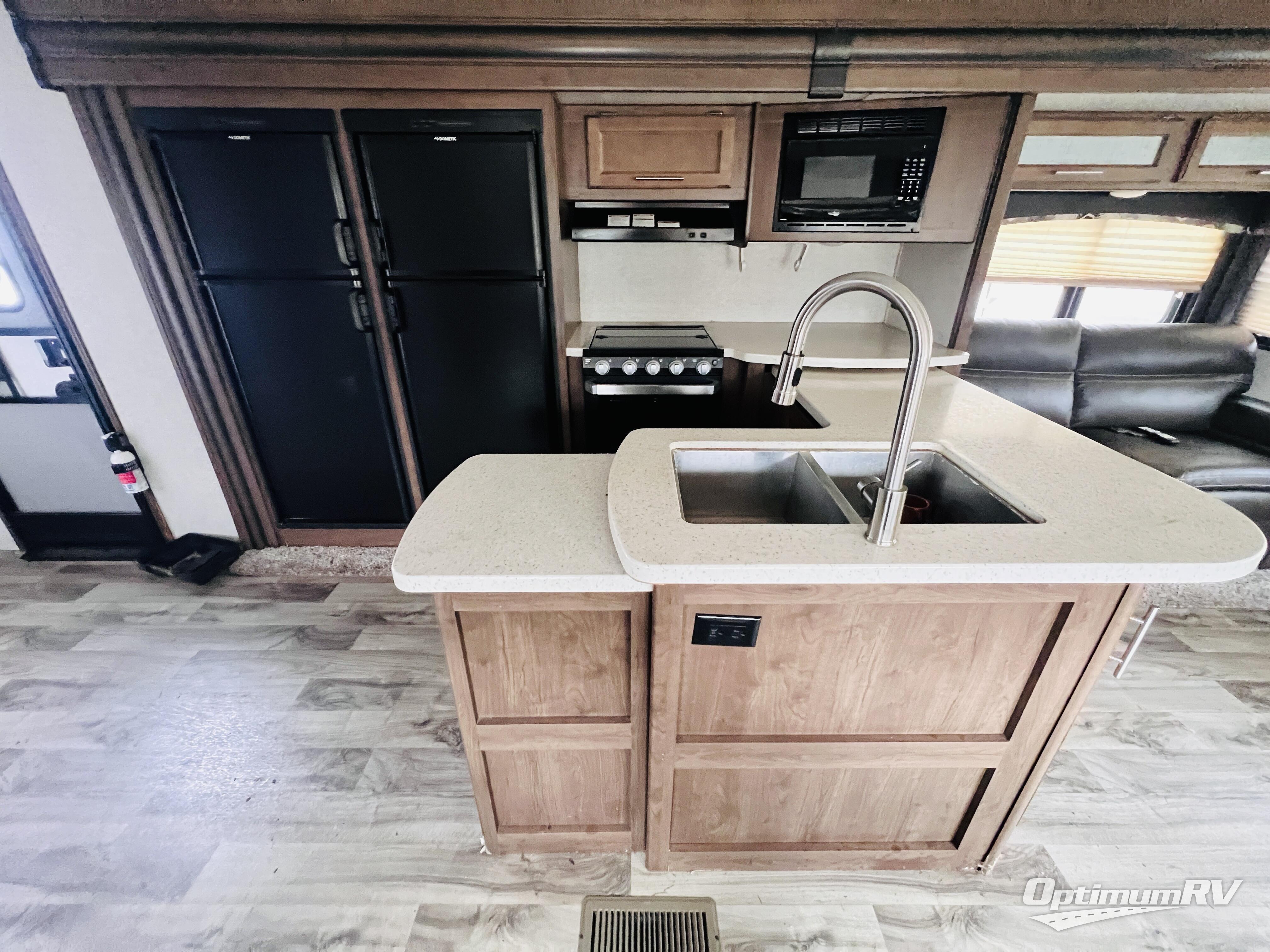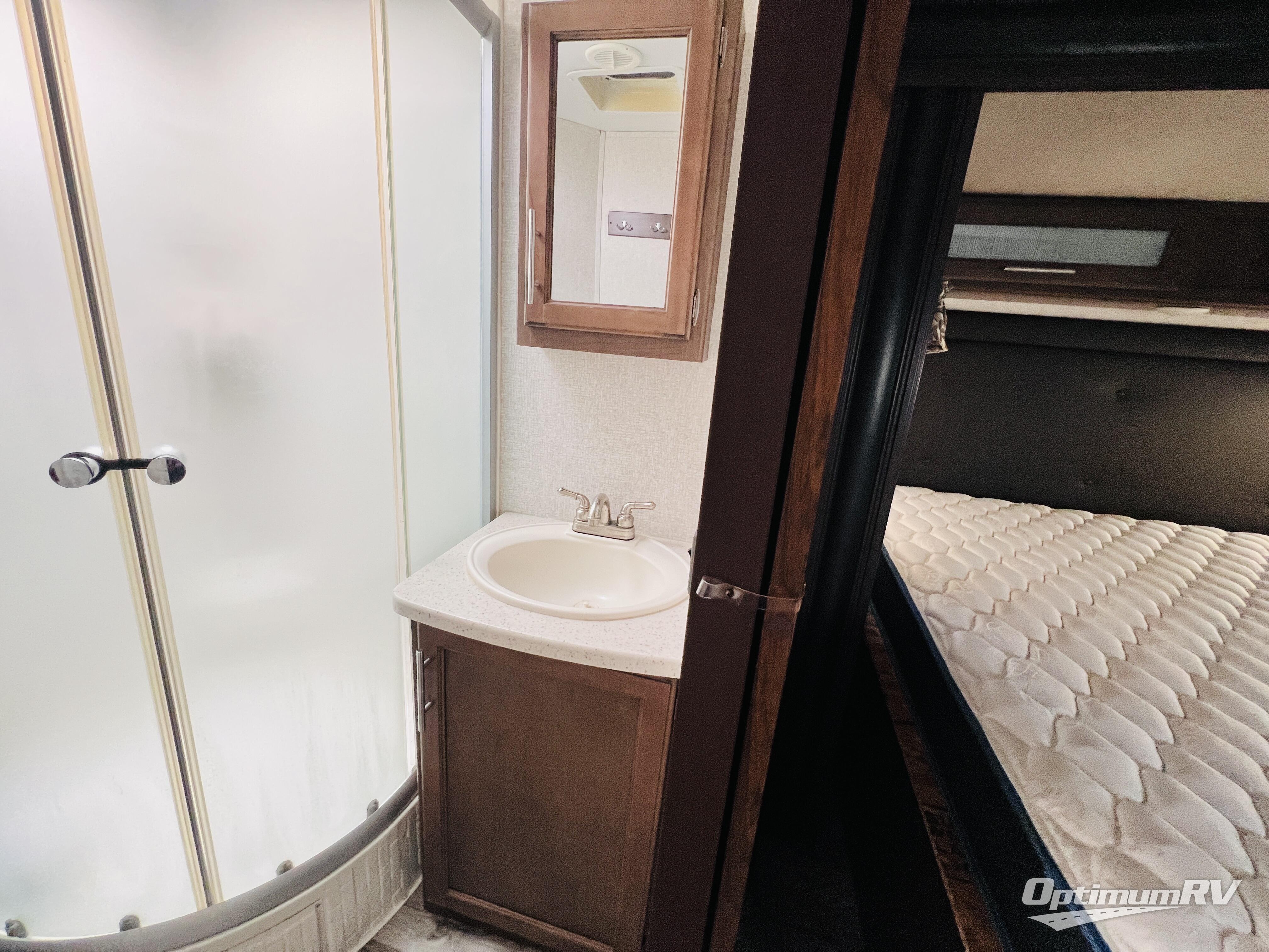 When you are ready for outdoor adventure and indoor comforts, this travel trailer is waiting! Once you have arrived at your destination the power jack will help make setting up a breeze. Inside, you will find a pop-up TV including storage along the rear wall for easy viewing from all the furniture including the two recliners in this combined living and kitchen area. Dual access into the bathroom comes in handy when you have extra friends over. There are triple slide outs providing more floor space for everyone, and the large pantry allows you to stock up at the store before heading out, plus there is much more to see!