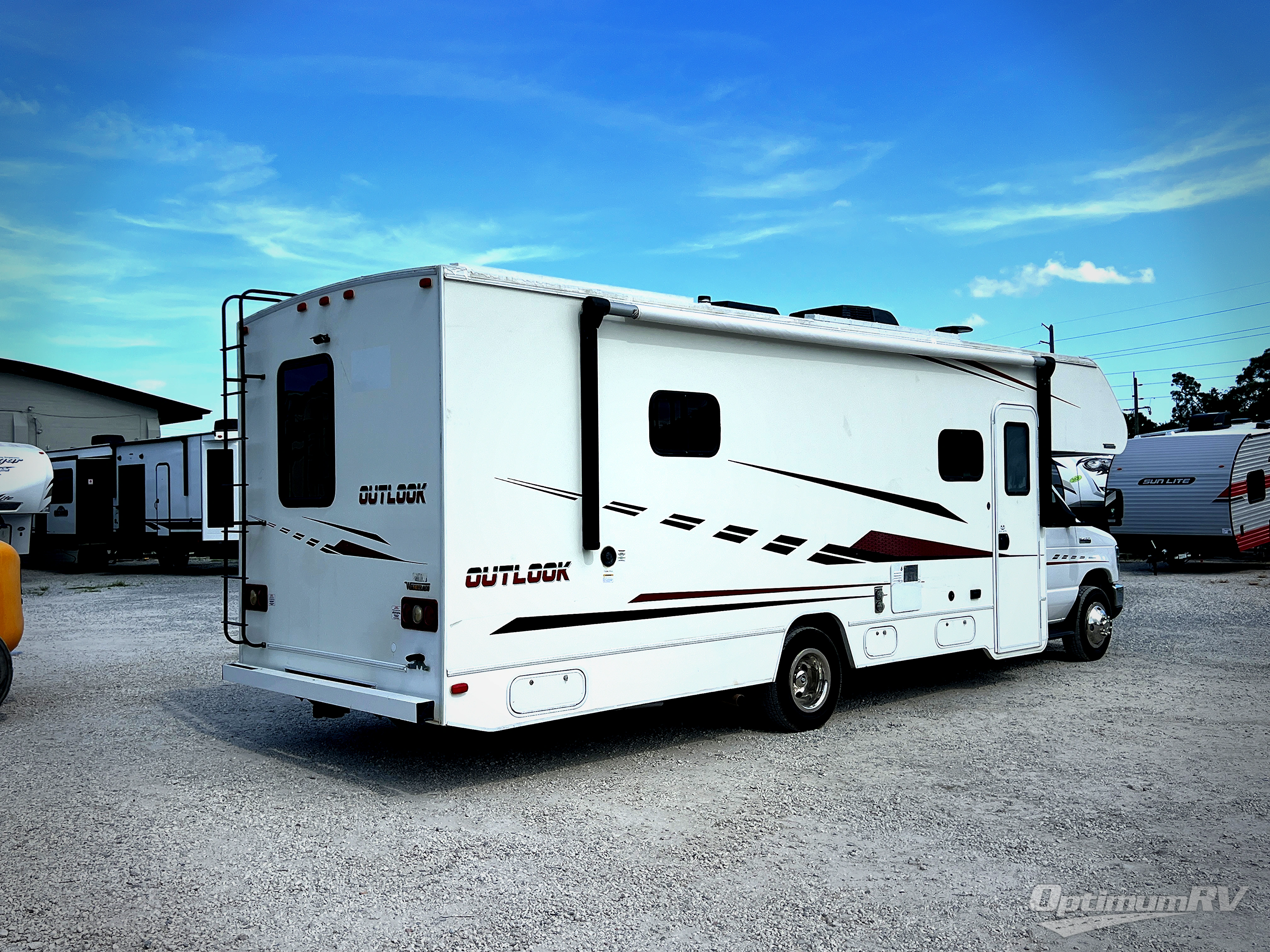 Are you and your family ready to take on any type of adventure whether near or far? Come experience this Outlook Class C gas motorhome and enjoy your meals at the 40" x 72" booth dinette which can easily be converted into additional sleeping space at night. Mom and dad will enjoy the private bedroom with a 60" x 75" walk-around RV queen bed while the kids sleep on the 54" x 95" overhead bunk. Stop imaging everywhere you will go and start living it in this Outlook!