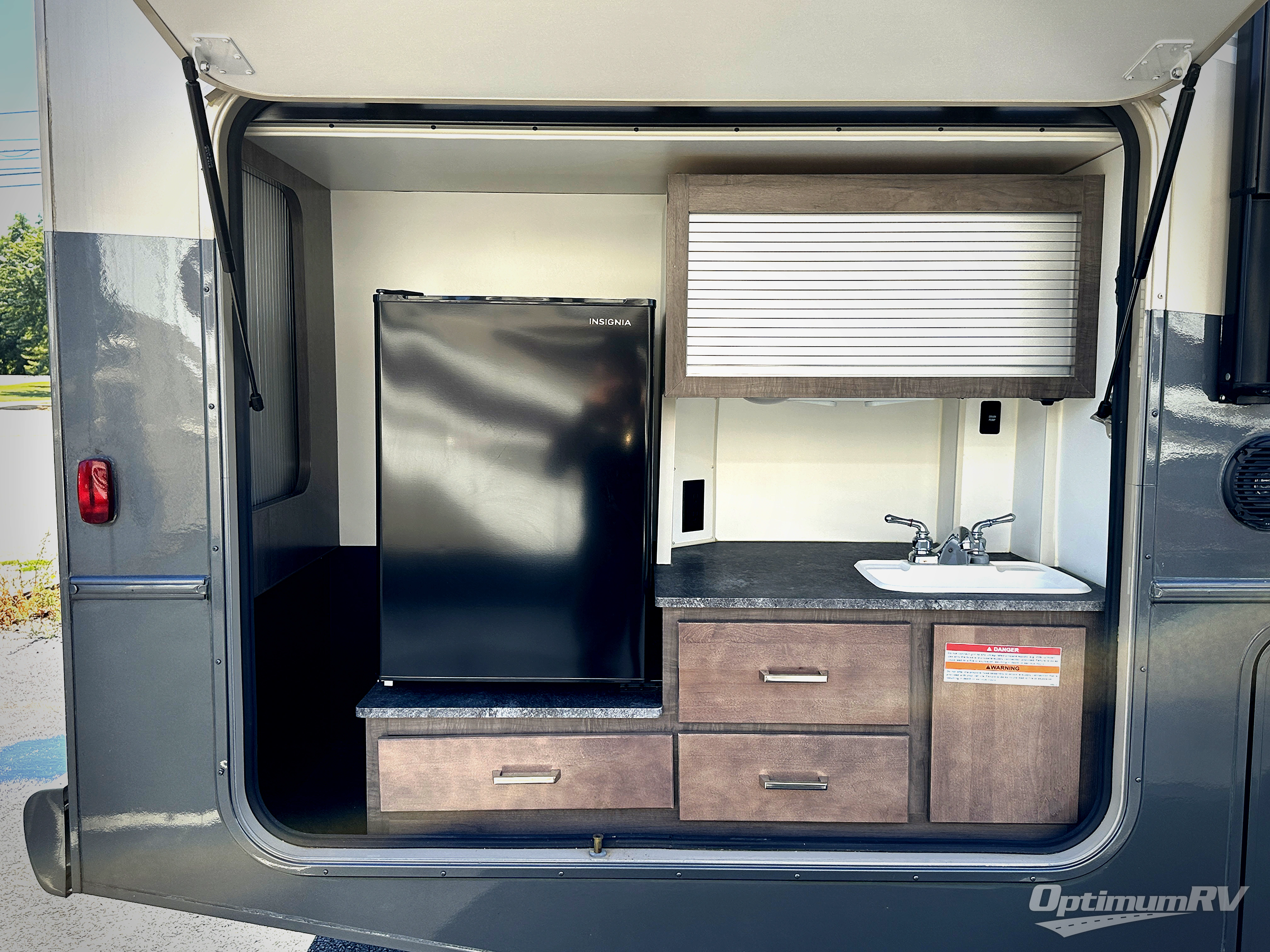 If you're a tailgating enthusiast then you will enjoy taking this Sunstar 29VE Class A gas motorhome to every tailgate! This model features the exterior tailgate package which includes everything you could possibly want like a refrigerator, a portable grill with a folding stand, a Quick Connect LP hose, an ice chest with a plug, and even a wall-mounted bottle opener, plus so much more. Inside, you will enjoy features like the rear private bedroom for you to crash on the queen bed after a long day of tailgating, and the 40" x 66" sofa bed up front for you to relax on while watching your favorite movie with the 40" HDTV, plus there are two seat belts so you can even travel comfortably!