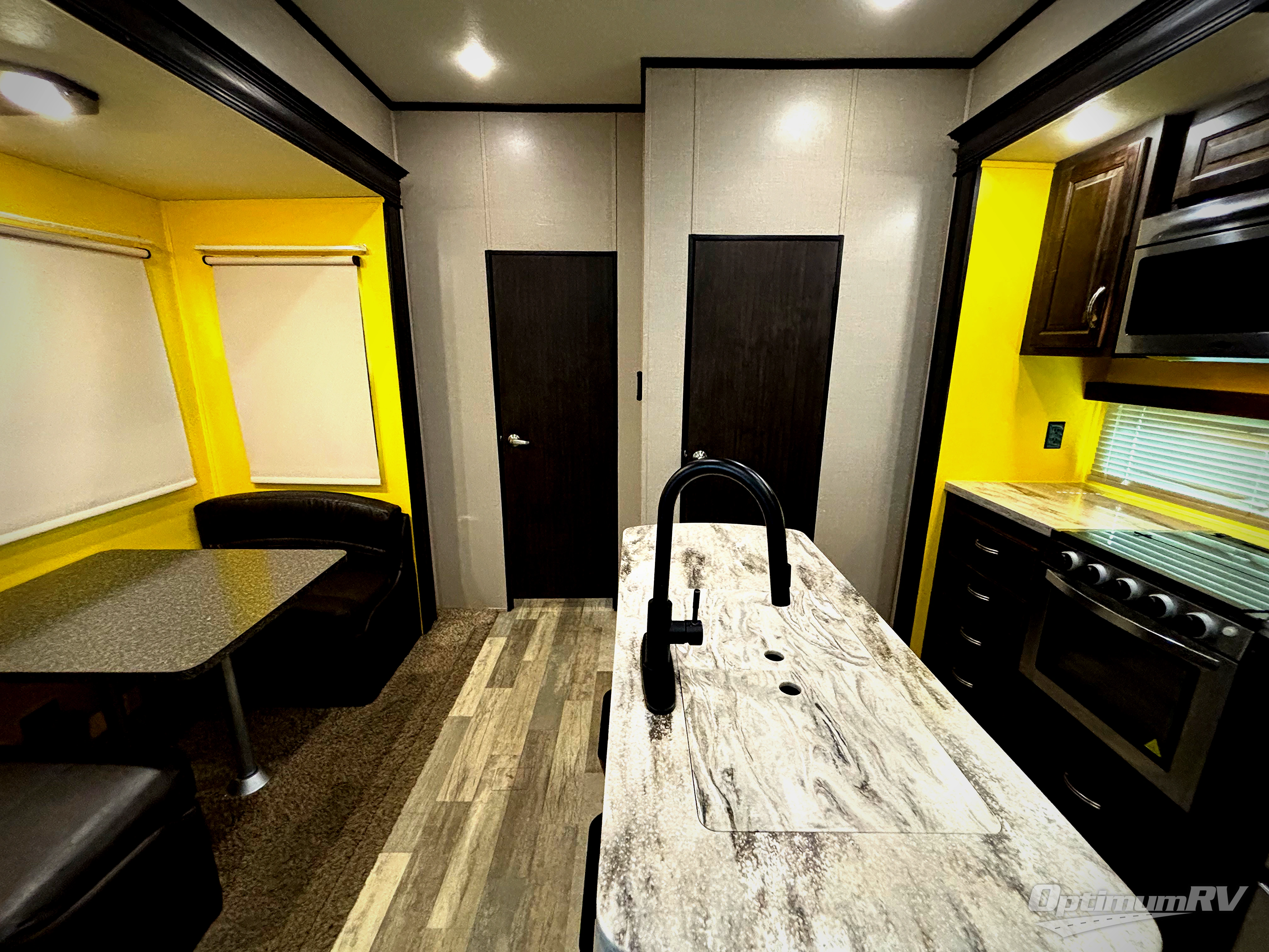 Any Brookstone fifth wheel will have all the comforts that you desire for camping. Each newly redesigned high-profile wide-body provides a quality build that allows you to explore and enjoy any surroundings that you choose without compromise. On the outside, you will appreciate the vacuum bonded and aluminum framed sidewalls with rot proof Azdel panels, Weather Shield protection for both extreme hot and cold temperatures, and Dexter EZ-Flex suspension for a smooth tow. Parking will also be a breeze with the Turn-Tec engineering that is short-bed friendly. From the inside, enjoy beautiful views through the extra large windows that bring nature right in next to you. You will also find a well appointed kitchen with stainless steel appliances, granite/marble-style countertops, and storage in all the right places. Don't wait any longer for your dream vacation, get it anywhere you park a new Brookstone fifth wheel featuring all the detail and comfort that you've been waiting for!