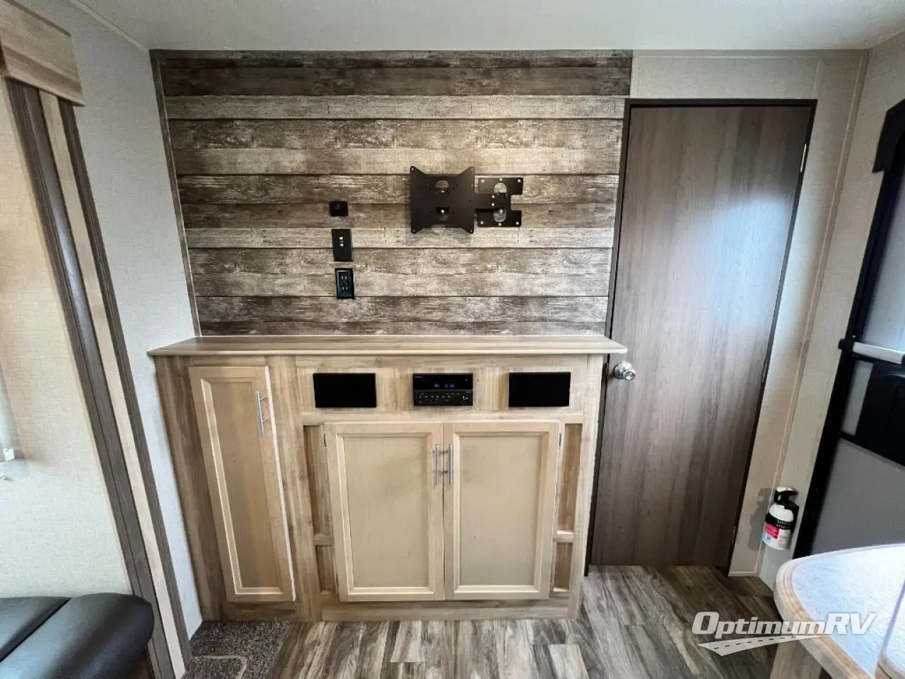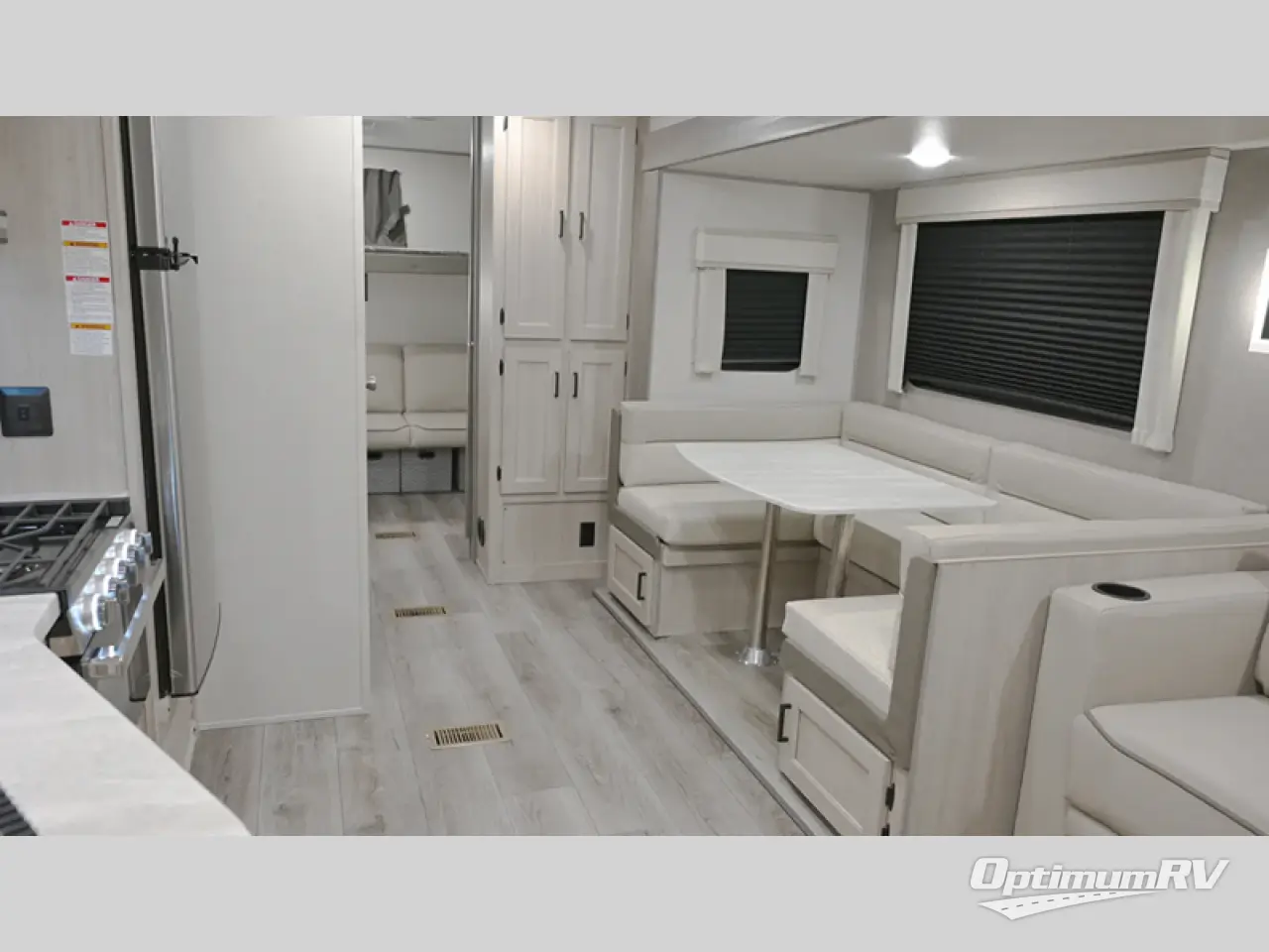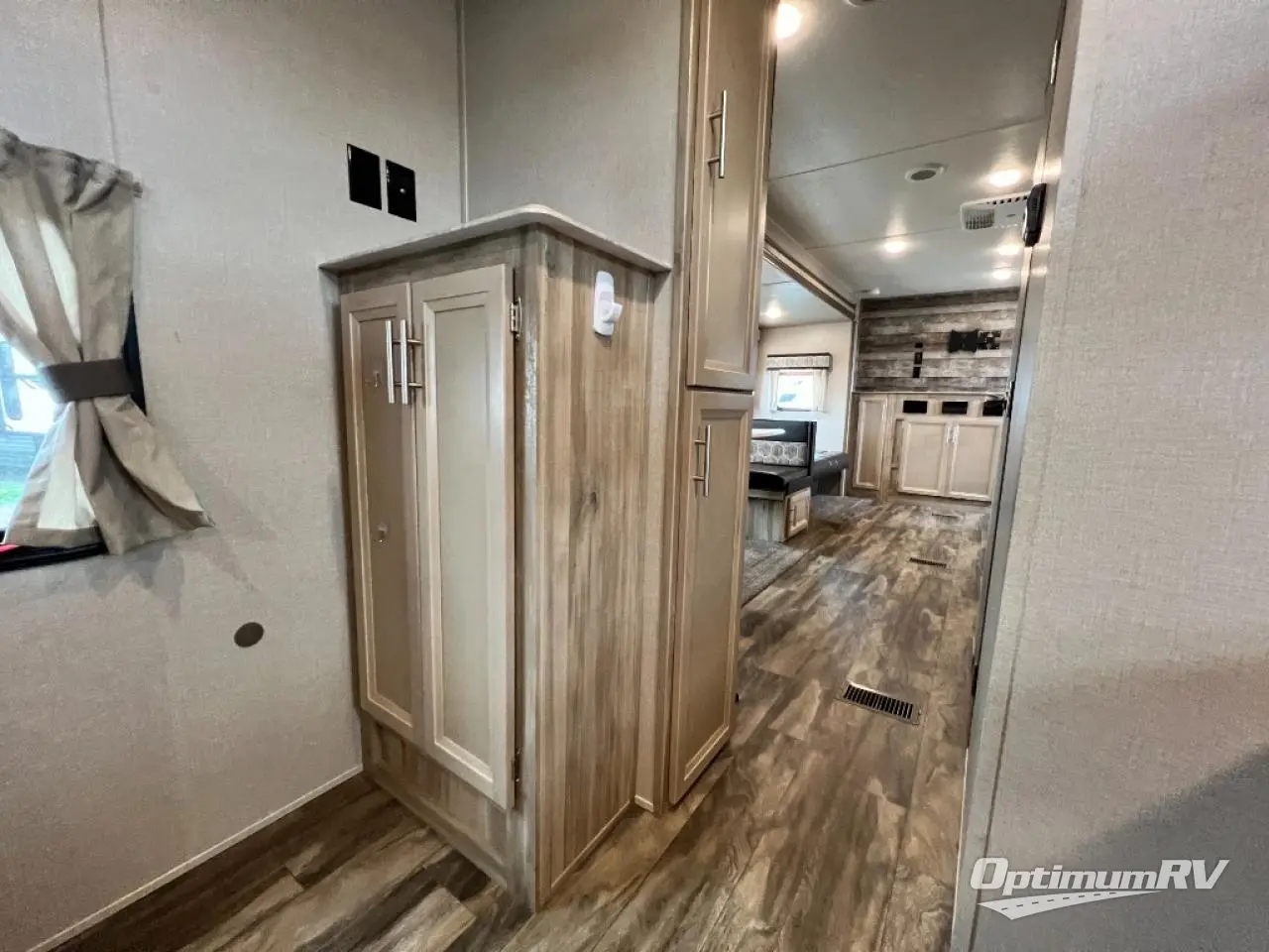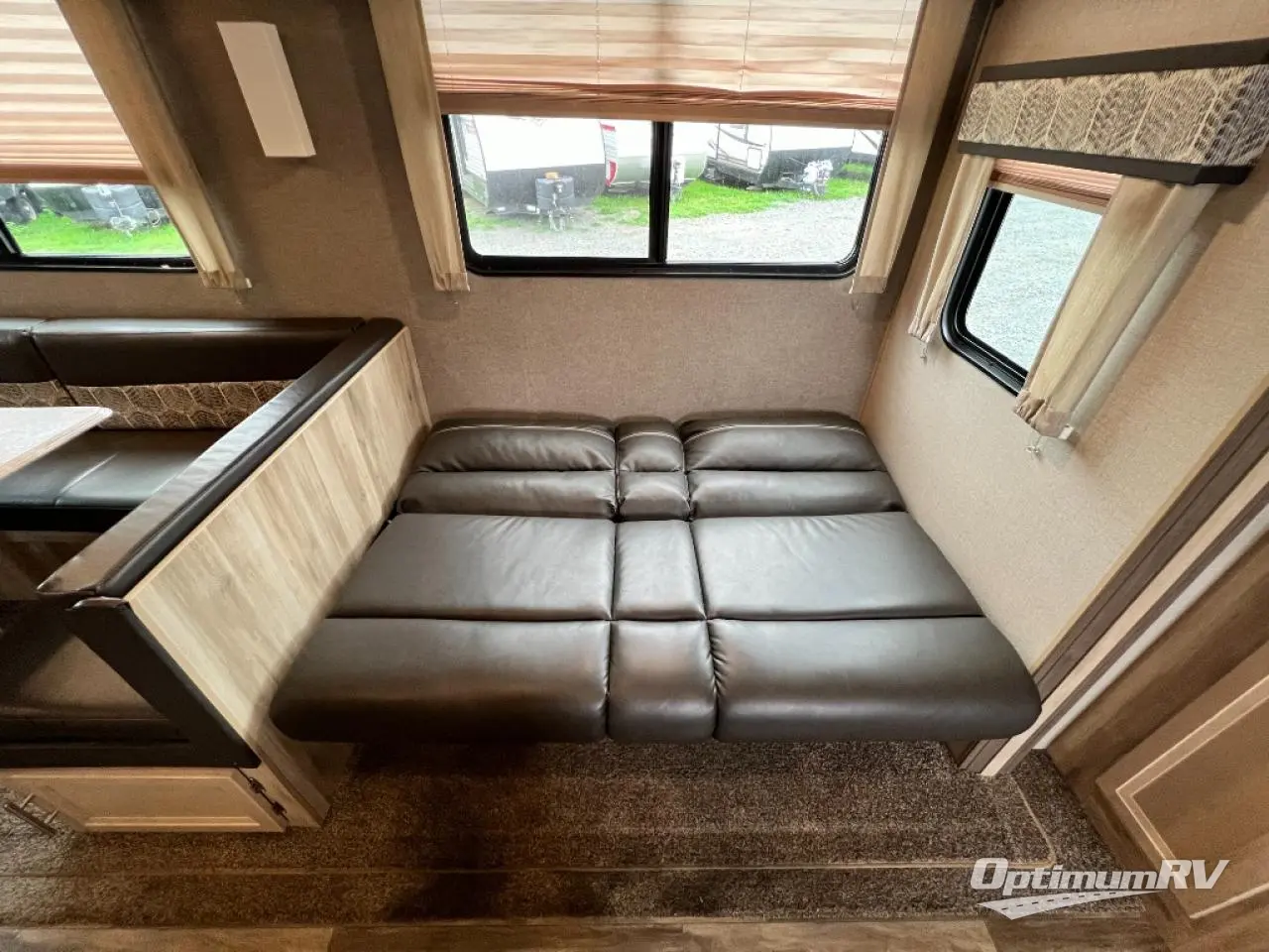 Not only will you be comfortable in this trailer, your friends will have comfort and privacy thanks to having their own bunkhouse, and you'll have a front bedroom where you can sleep like royalty! There are three bunk beds and two COA cube seats plus a location for a TV, a wardrobe, and windows for natural lighting. The combined living and kitchen is spacious thanks to the slide out U-shaped dinette and sofa with drink holders. You can even add the fireplace option if you want that feature. The cook will have full amenities to whip up meals including overhead cabinets for dishes and snacks. And the exterior camper kitchen allows the cook to visit with everyone outside under the 18' electric awning that includes multicolor LED lights with a remote.