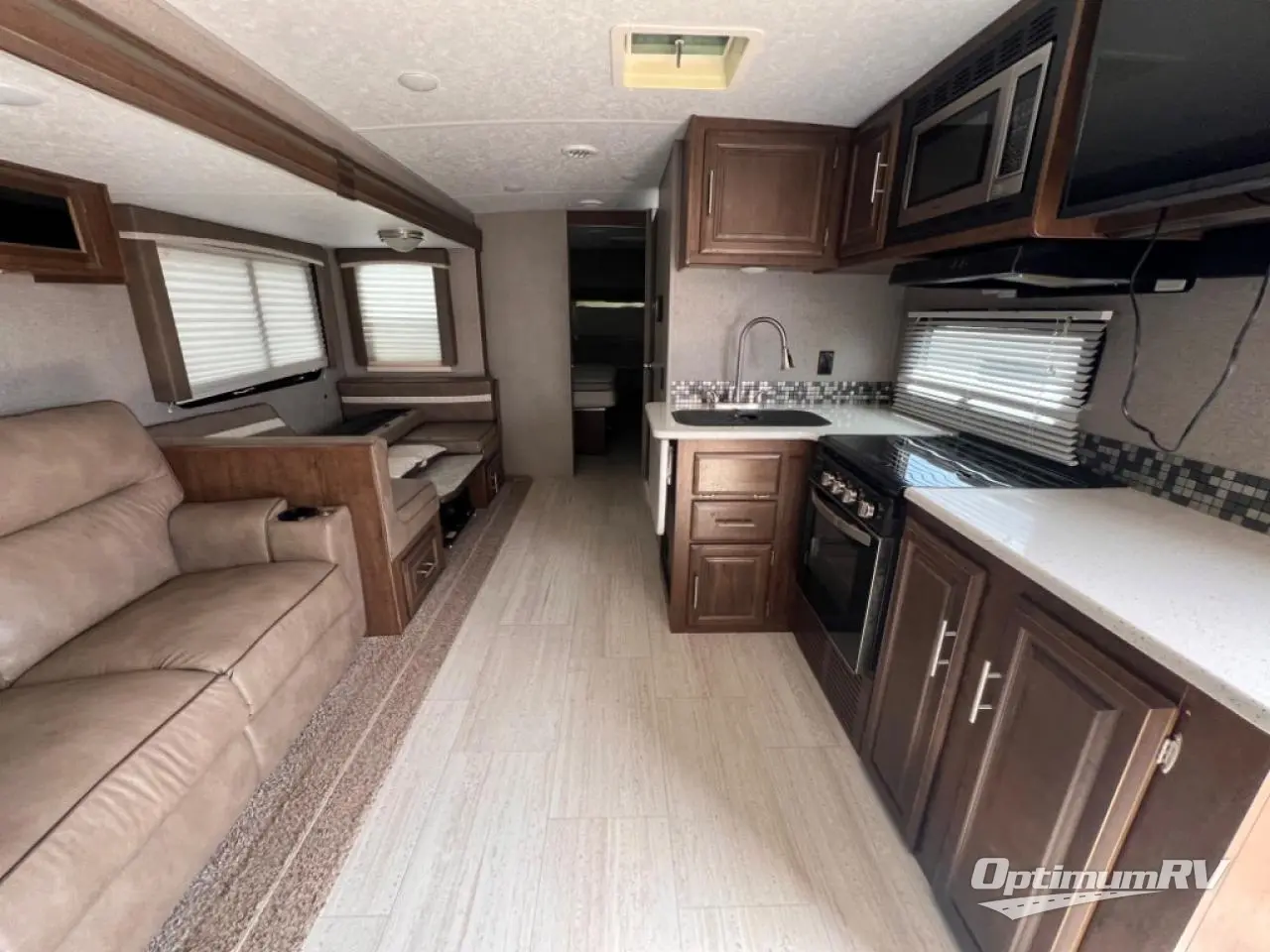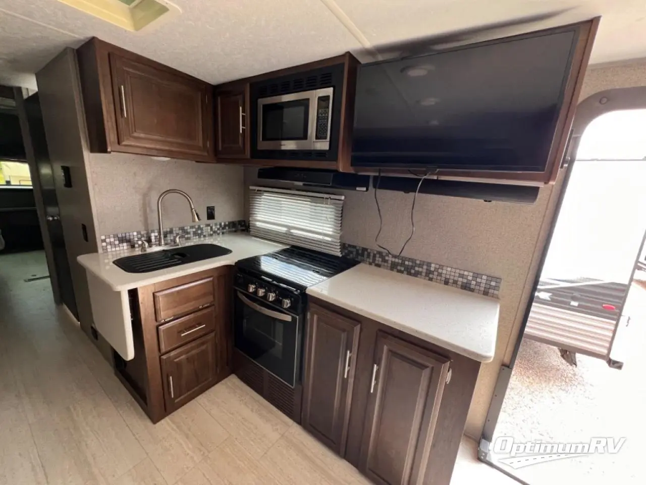 It will be easy to make plenty of memories with your family when you choose to camp with a Flagstaff Super Lite travel trailer by Forest River. These models have beautiful slatewood cabinetry with hardwood cabinet doors and drawer fronts, solid surface kitchen countertops, and ceiling LED 12 volt interior lighting. The 6 sided aluminum cage construction offers lightweight towing, the radius roof with interior vaulted ceilings give you more headroom, the WiFi ranger Wifi booster Sky 4, the enclosed underbelly, and the power awning with adjustable rain dump and LED light strip, will give you years of enjoyment!
