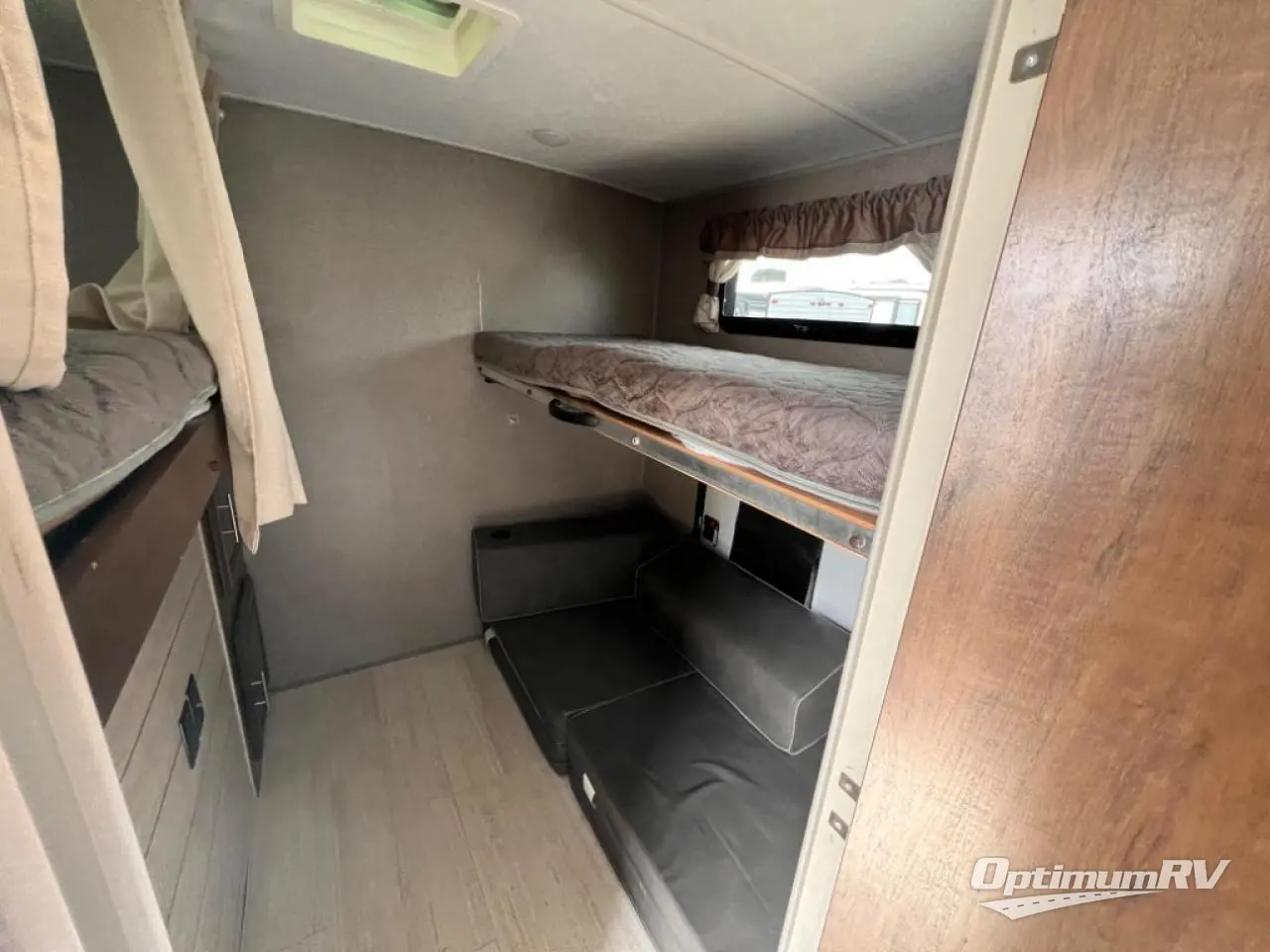 Been thinking about upgrading your travel trailer to a bunkhouse model? Just imagine your kids sleeping in their own private room which includes two bunks and a Play-Cube sofa for those rainy days inside. This Flagstaff Super Lite also provides a master bedroom with a slide out queen Serta mattress, storage and an optional TV. You can even choose to add carpet in your room. The main living and kitchen area includes a slide out with a U-shaped dinette and hide-a-bed sofa offering more floor space to do yoga, play Twister, or even stretch your legs out from the furniture. The cook will love the L-shaped counter space, and countertop extension when washing the dishes. The outside kitchen and gas griddle will come in handy for outdoor cooking while visiting everyone hanging out around the campfire. Load up and head out!