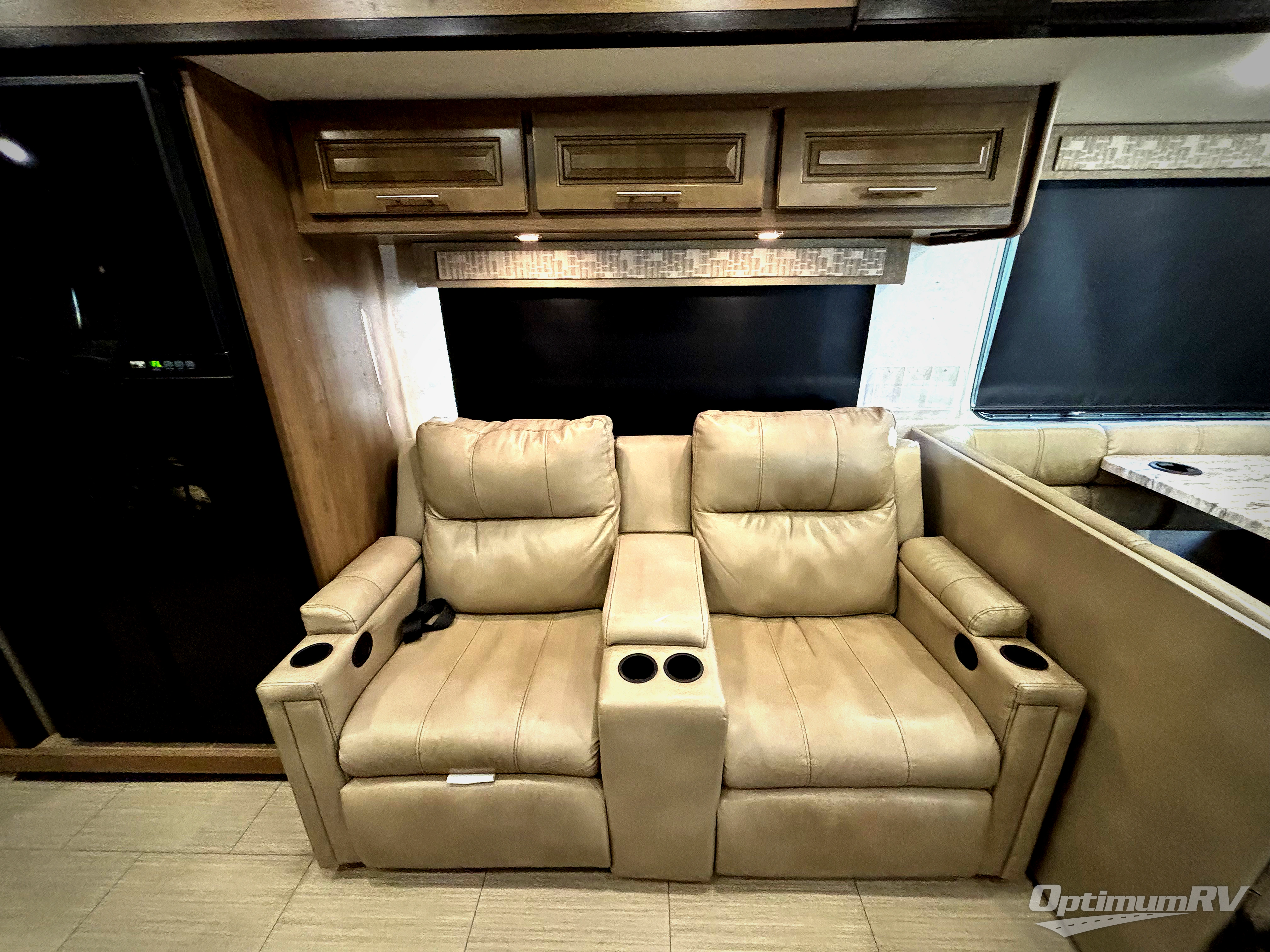 Whether you are driving down the road in comfort or sleeping in your own king-size bed, you will enjoy every minute you get to travel in this coach. You even get to skip the public stops when you have a full bath and a half bath on board. You can quickly set up the power awning to relax outside while watching the outdoor TV or you can take a walk around the campground to start planning your activities. You might have decided to add the washer and dryer option so a load of laundry might even get done. Once you are ready to fill your tummy, the full kitchen offers everything you need, plus a residential microwave. You might even decide to relax on one of the theater seats after dinner as you watch the big game on the LED TV.
