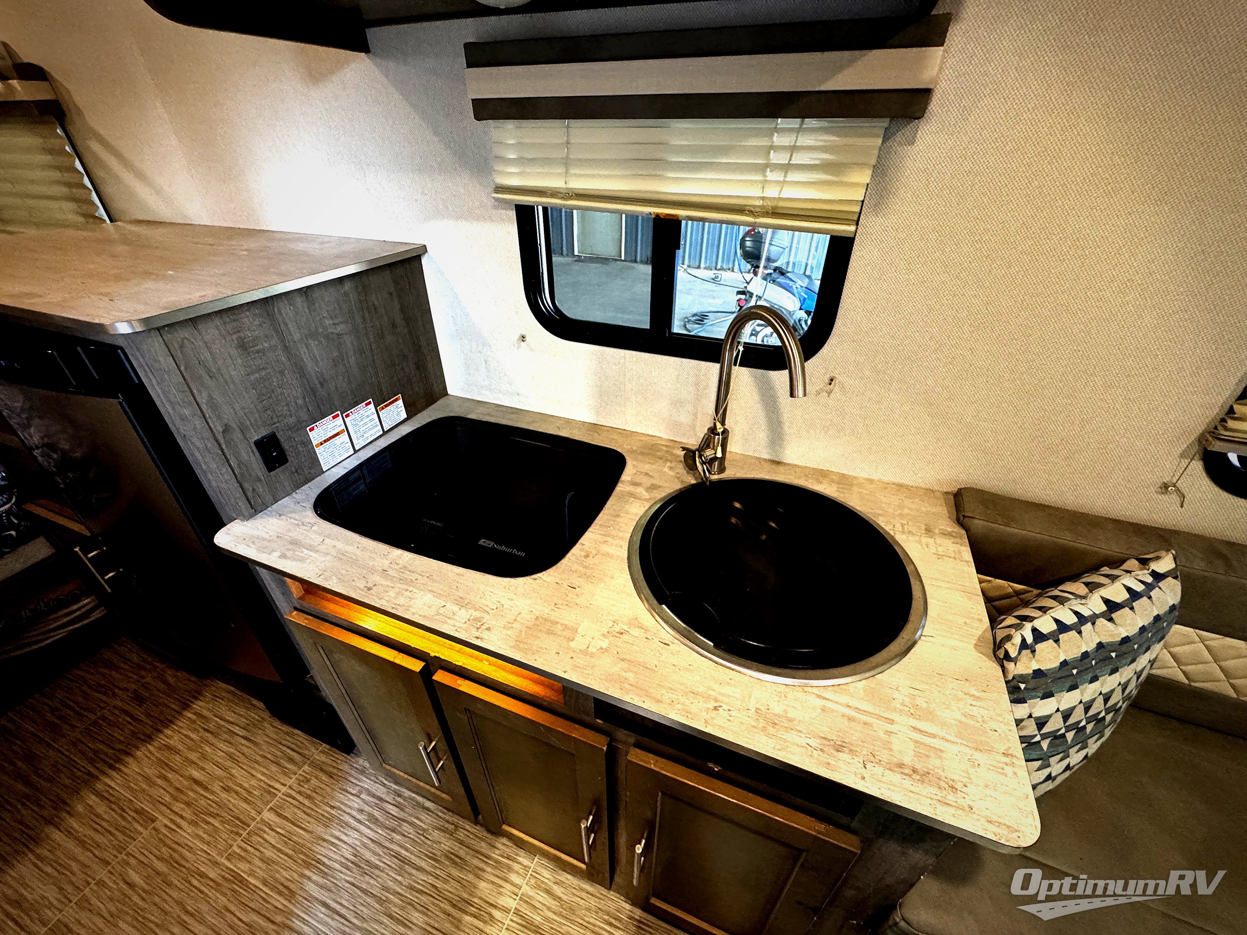 You are going to love the freedom that this No Boundaries travel trailer gives you. This 16 Series model comes in under 3,500 lbs. and features all of the necessities for camping at a state park campsite or a little more off-road location if you like. Step inside to find sleeping space for four with a 60" x 74" queen bed in back and a large U-shaped dinette up front. The wet bath will keep everyone comfortable and fresh, and the kitchen amenities will allow you to cook meals and snacks inside while keeping the campfire outside for the evening where you can roast marshmallows and hot dogs! You will also appreciate the abundant storage throughout, as well as a pass-through compartment in back and more outdoor storage in front.