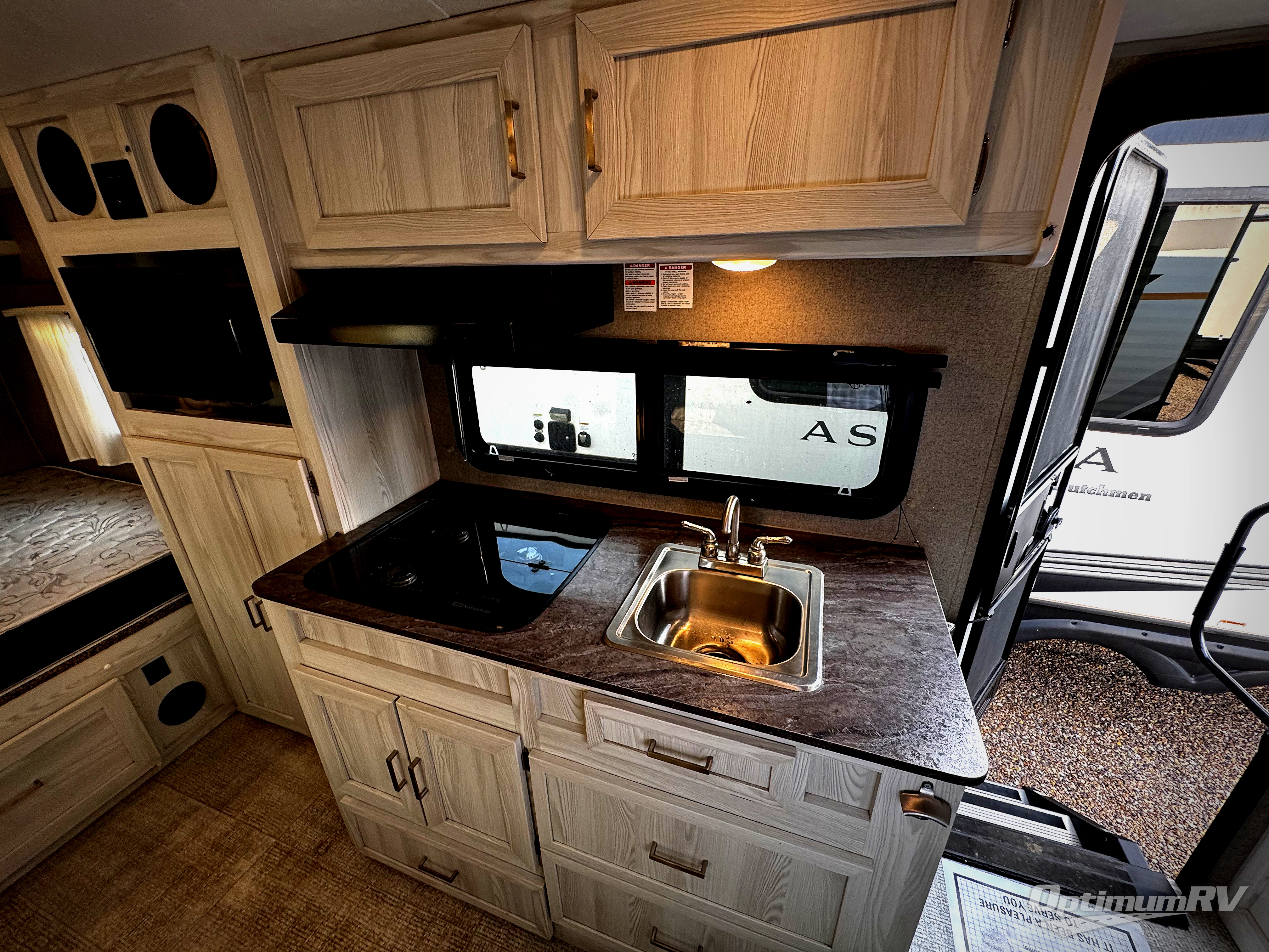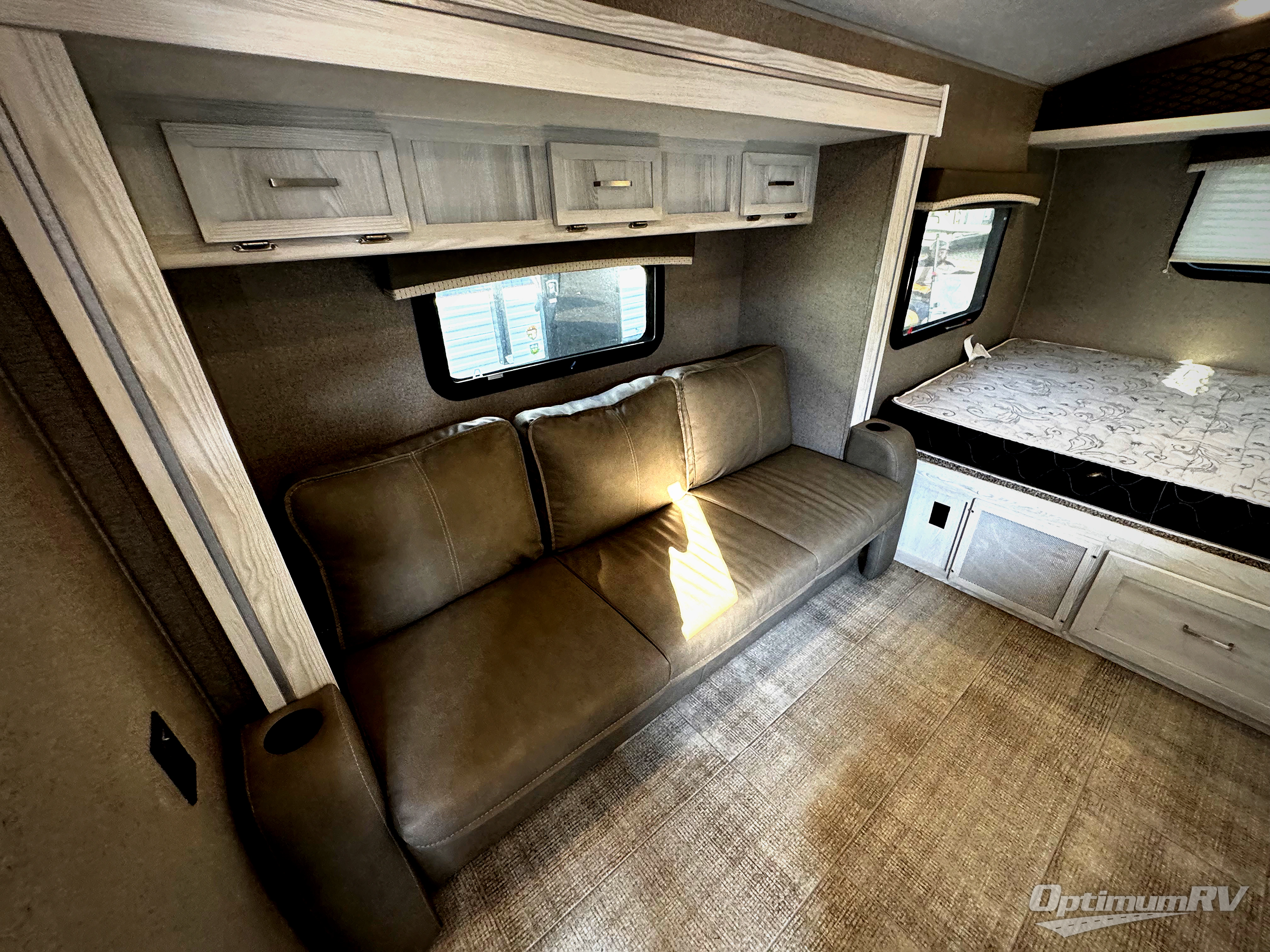 Come see just how fun and easy camping can be with this single slide sofa with cupholders and a table giving you more floor space between the front and the rear of the trailer to move about without having to squeeze in. The rear corner full bathroom is across from the entry allowing you quick access inside and back outside so that you don't have to miss anything. You can make meals in the kitchen area or outside on the gas griddle, watch the 12V TV, and sleep on the queen-size bed up front with overhead storage. You even have a handy exterior ladder on the rear if you need to check the top of the trailer sometime.