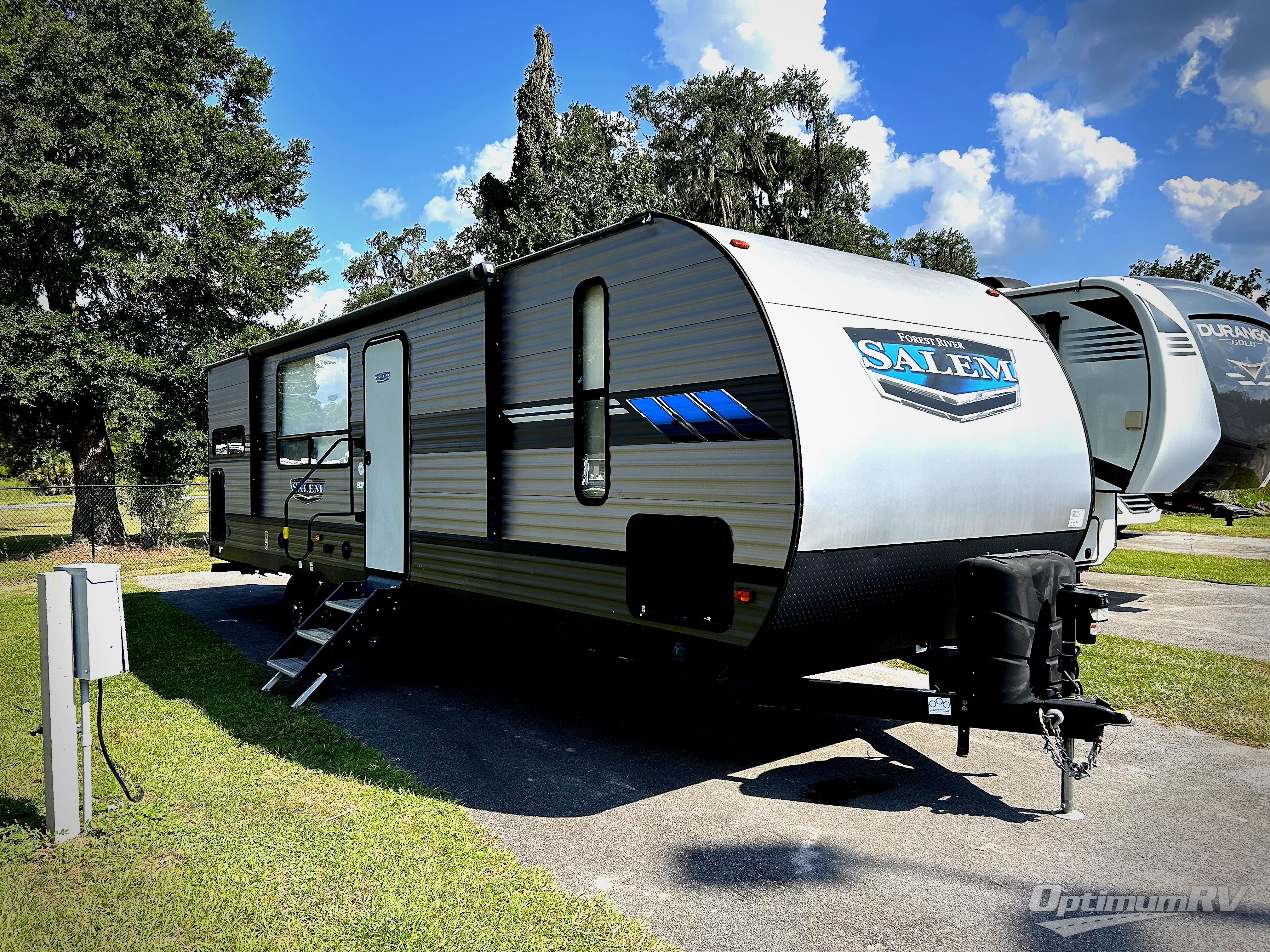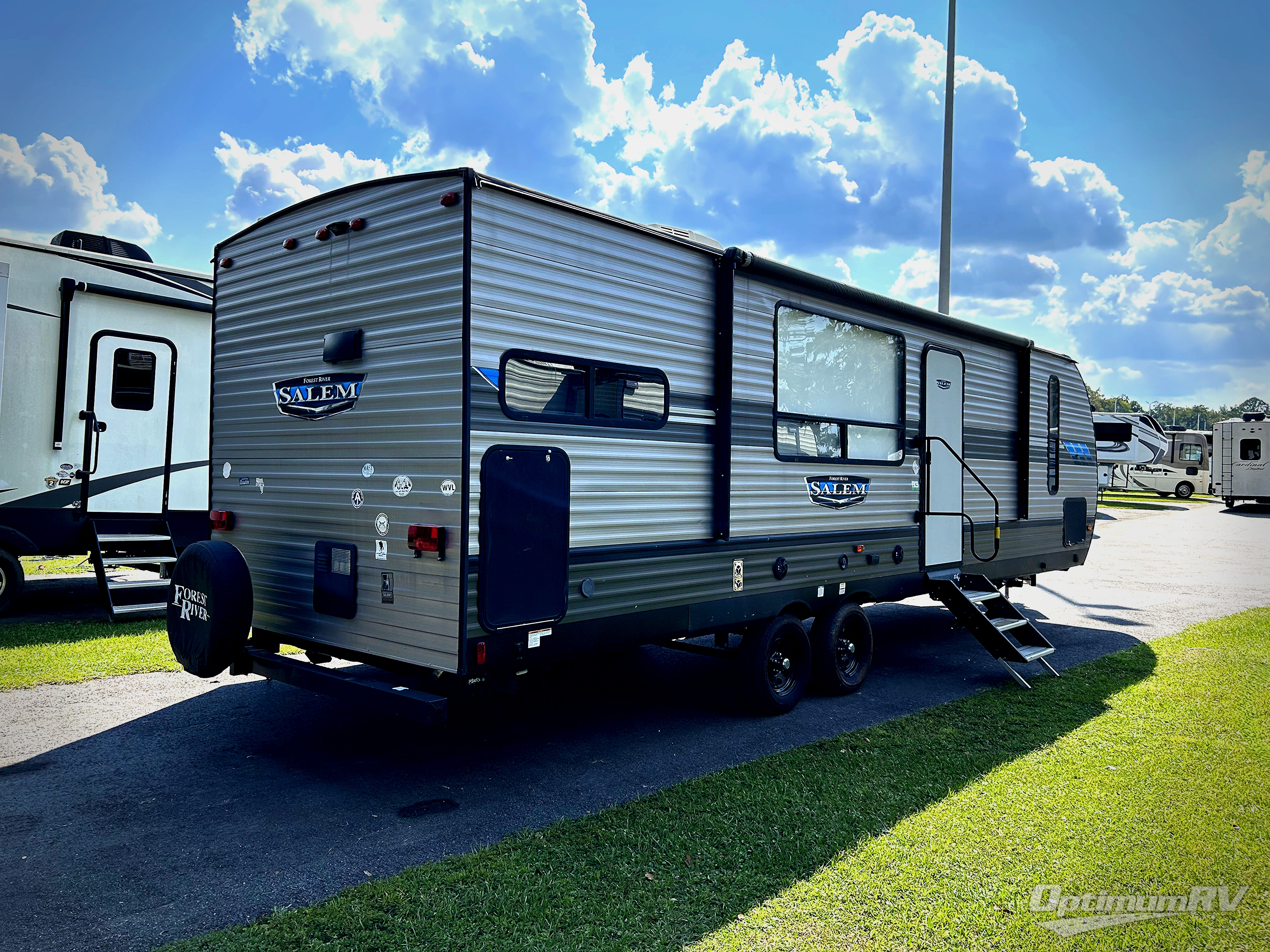The Forest River Salem travel trailers come in a variety of layouts and designs because families come in a variety of shapes and sizes! Each floor plan has been customized with the very best features so that you and your family always feel cared for when you travel! You will find panoramic windows with cross ventilation so that your surroundings can welcome you even while you remain indoors, and the in-floor ducted heat will keep you comfortable, just like at home. The strut-lifted storage under the bed will allow you to keep extra items stored away so that they are ready when you need them, and a Bluetooth FM stereo with soundbar will create the perfect party atmosphere while you're camping.