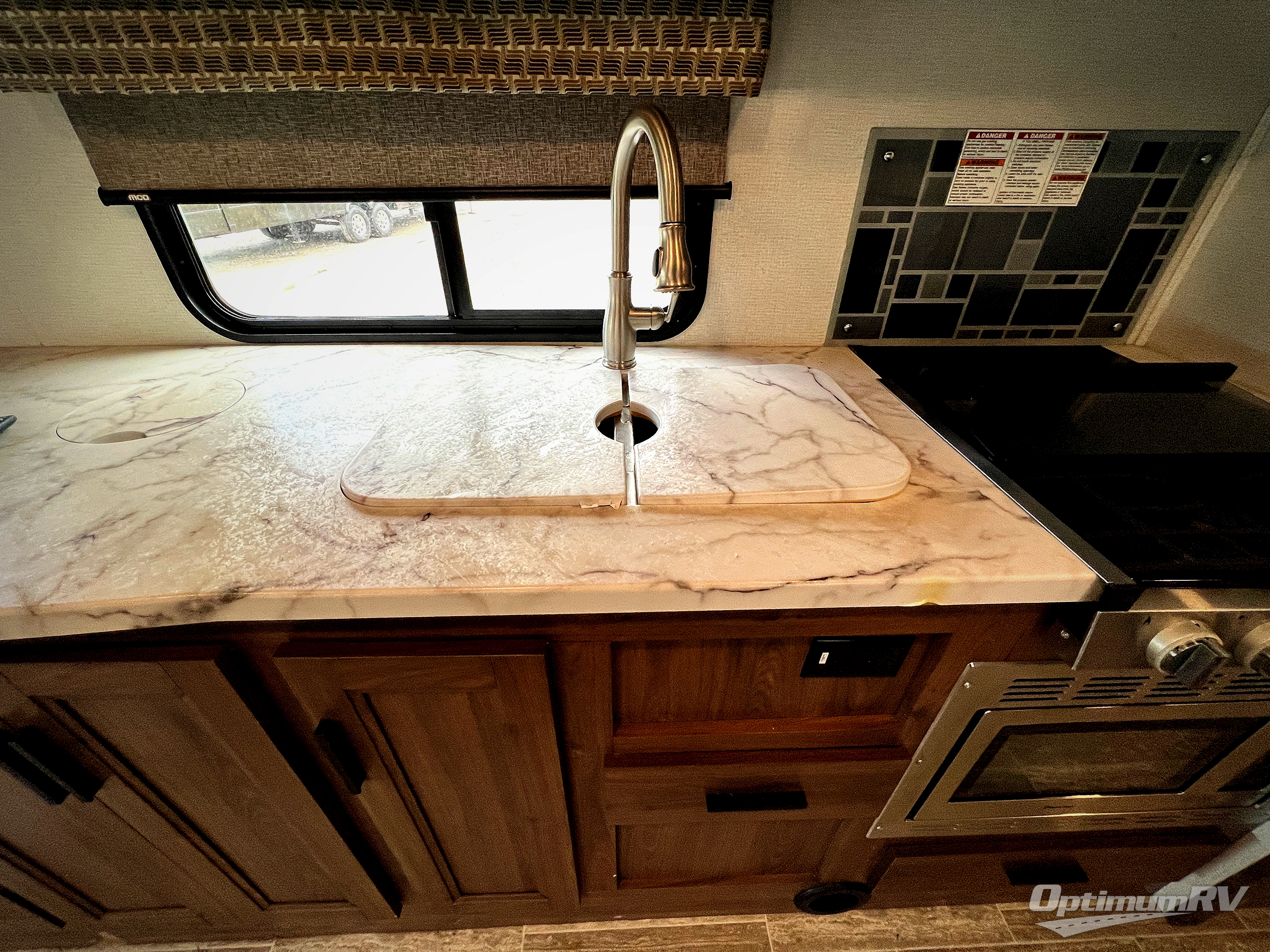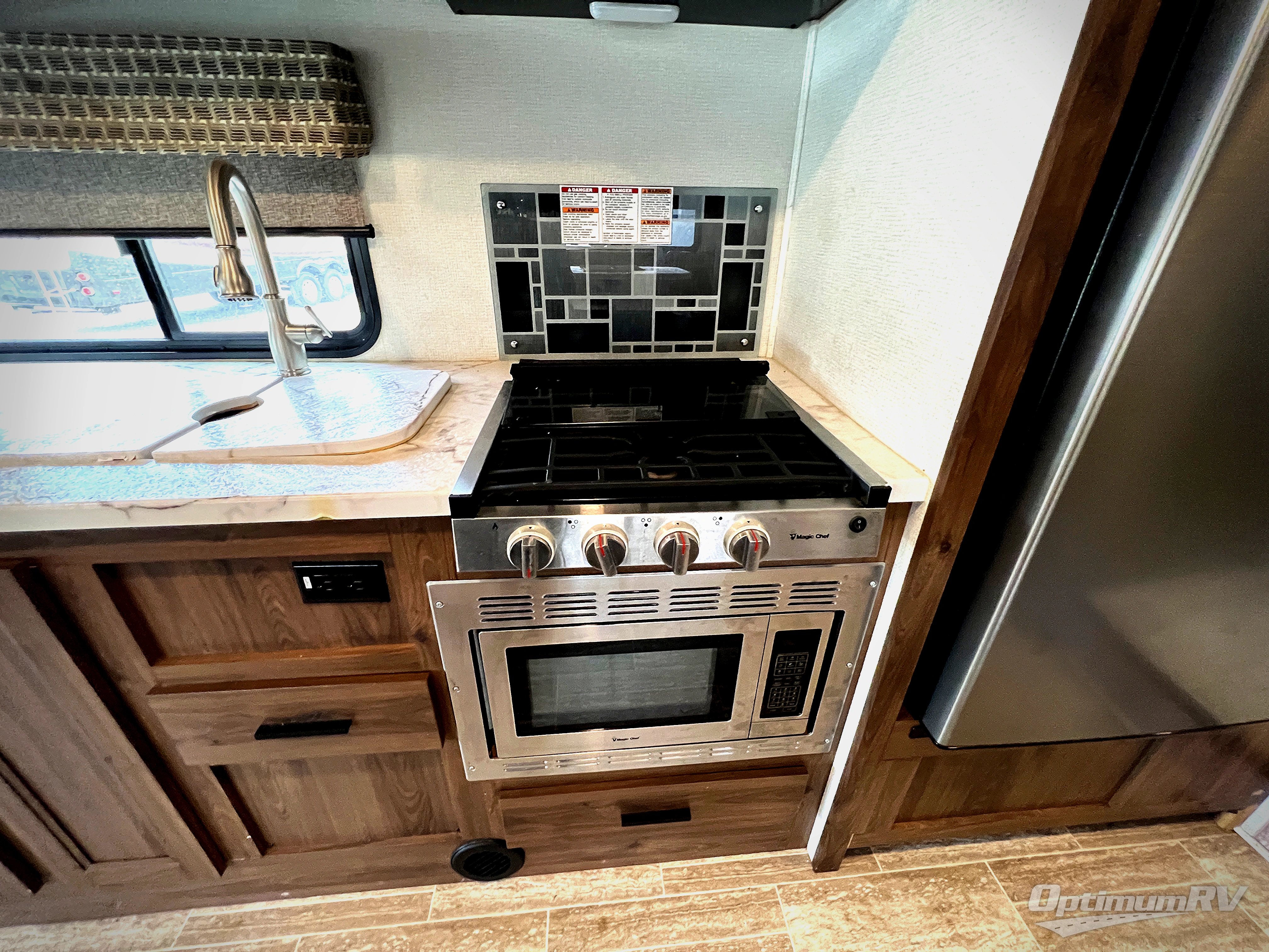 Imagine being able to travel with your own bedding, bathroom and cookware to see new scenery and places when you like. You can even invite seven more people to join you thanks to the eight total seatbelts. Once at your destination, easily set up the two slide outs and power awning with LED light strip and start relaxing or making lunch. The kitchen appliances are across from the large slide allowing you to visit with everyone while they relax on the U-dinette and sofa. Everyone can watch the LED TV as well. You will find sleeping space on the furniture and on the cab over bunk unless you decided to add the optional Trekker cap with built-in entertainment center in its place. You can even choose optional recliners or a 32" outside TV option.