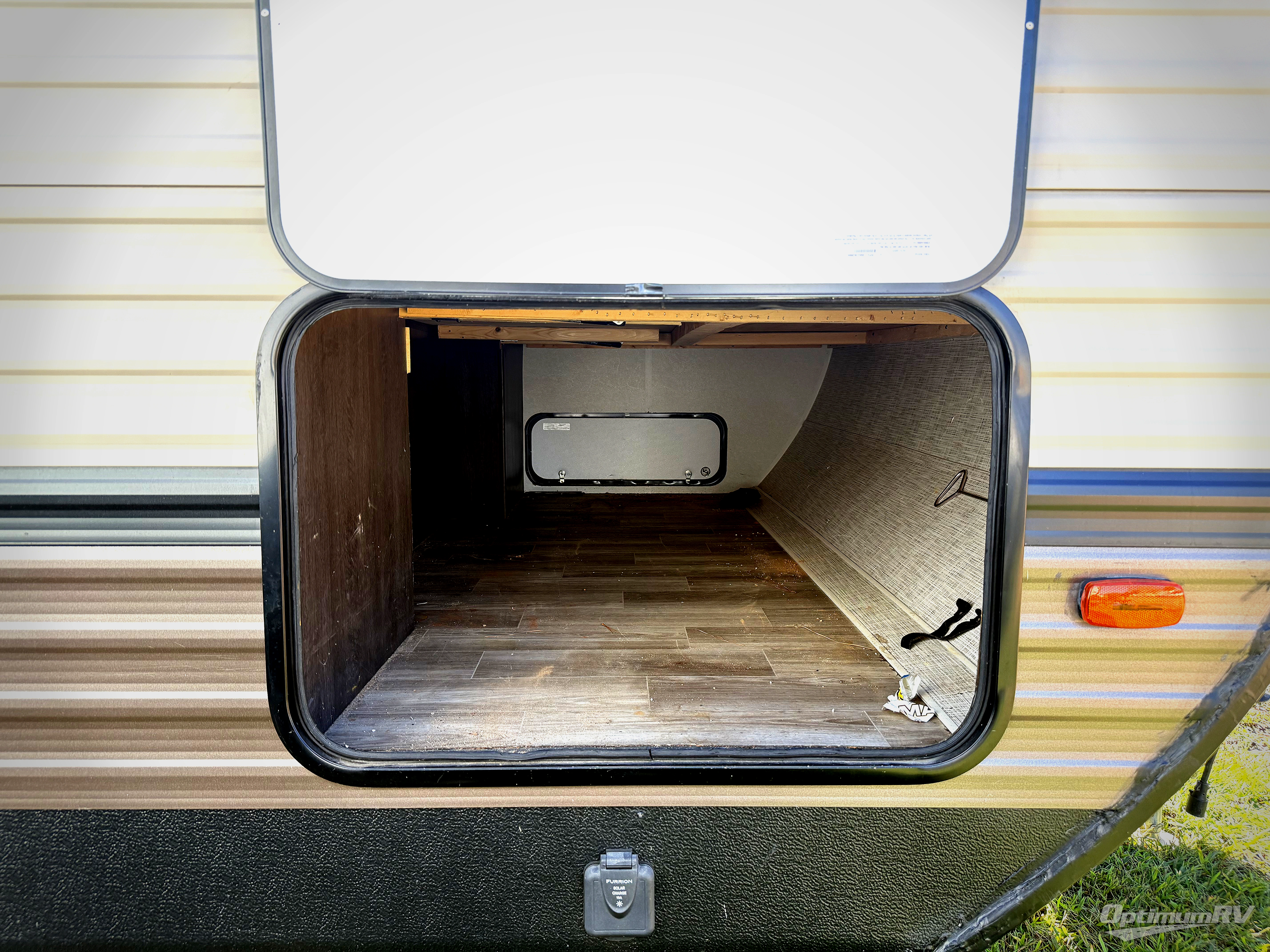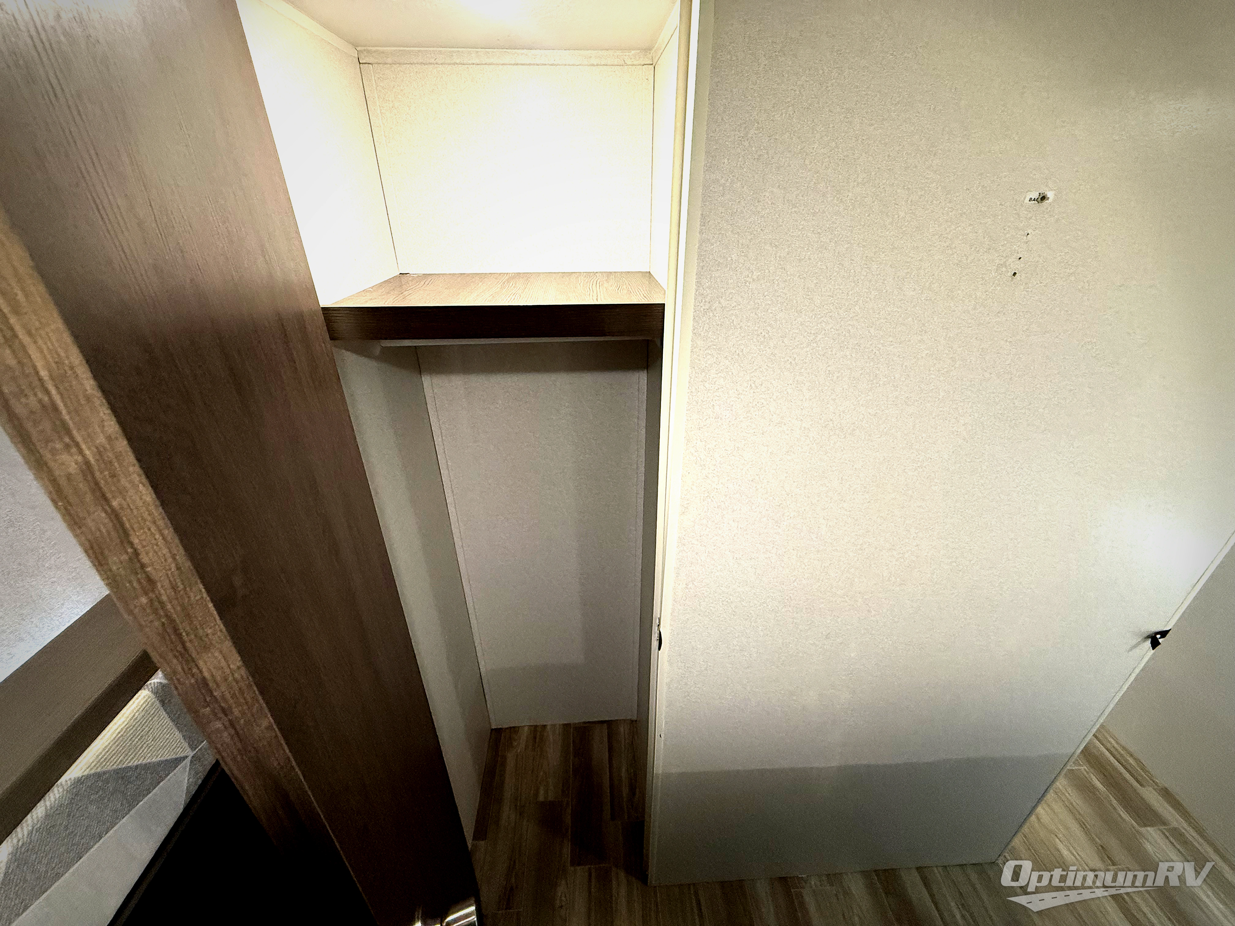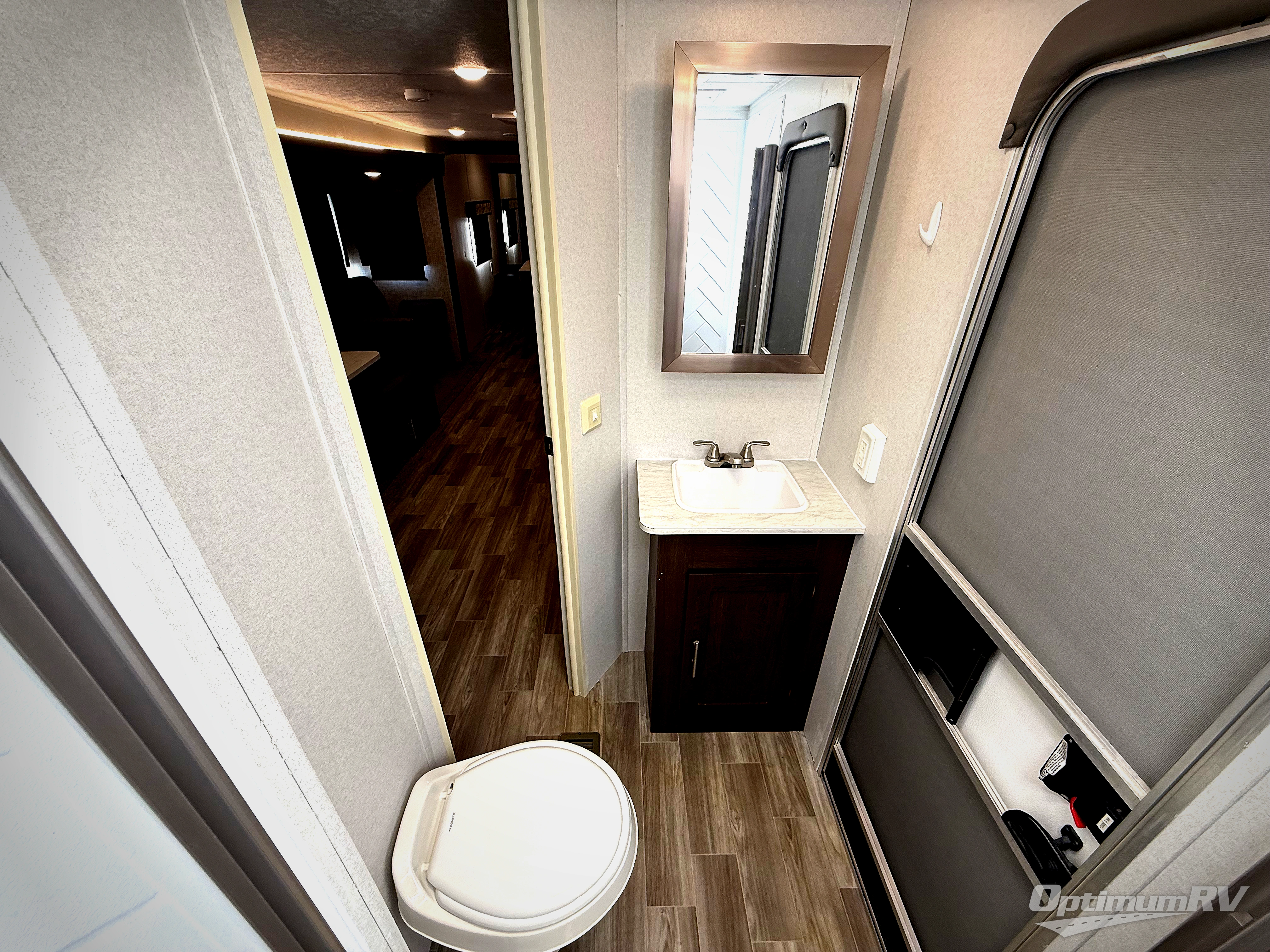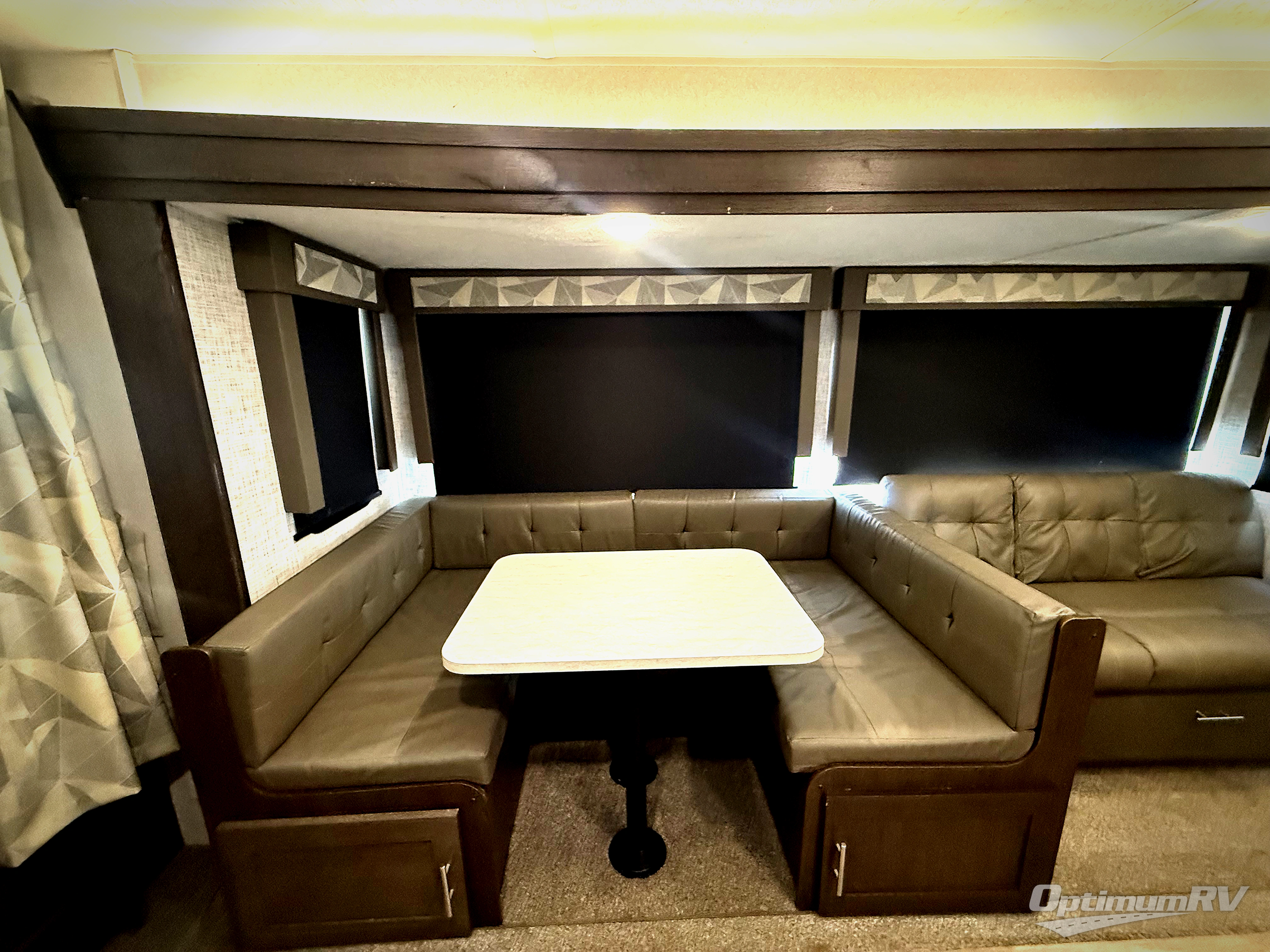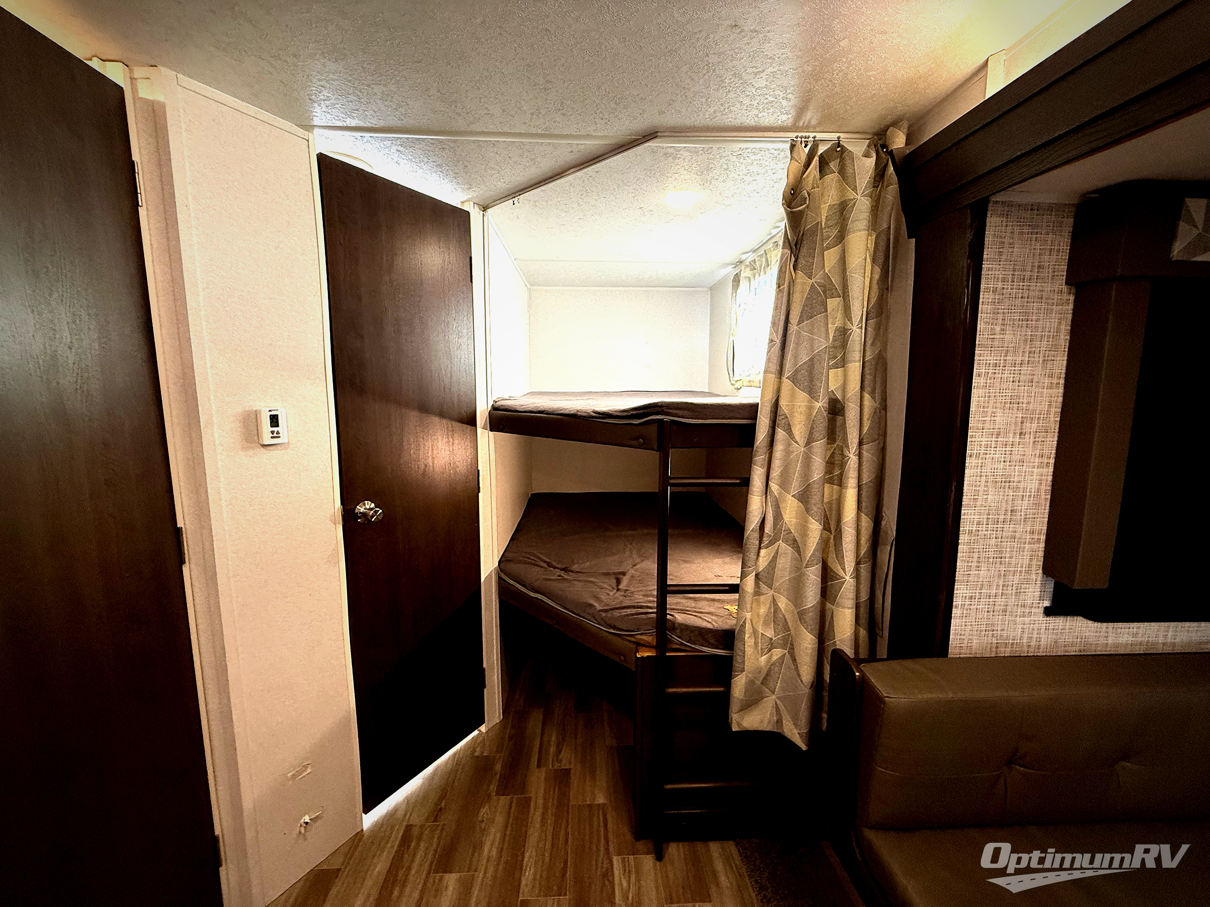 This travel trailer is perfect for a larger group and family since it includes double bunk beds for the kids and a front private bedroom for mom and dad. You'll find a Versa Lounge in the large slide out which includes a large U-shaped dinette and sofa and the panoramic windows will provide great views. This model includes dual entry doors; one leading into the main living area, and one into the rear corner bath for convenience. Bring along all of your camp gear and store it in the pass-through storage and the walk-in pantry indoors can hold all the snacks.