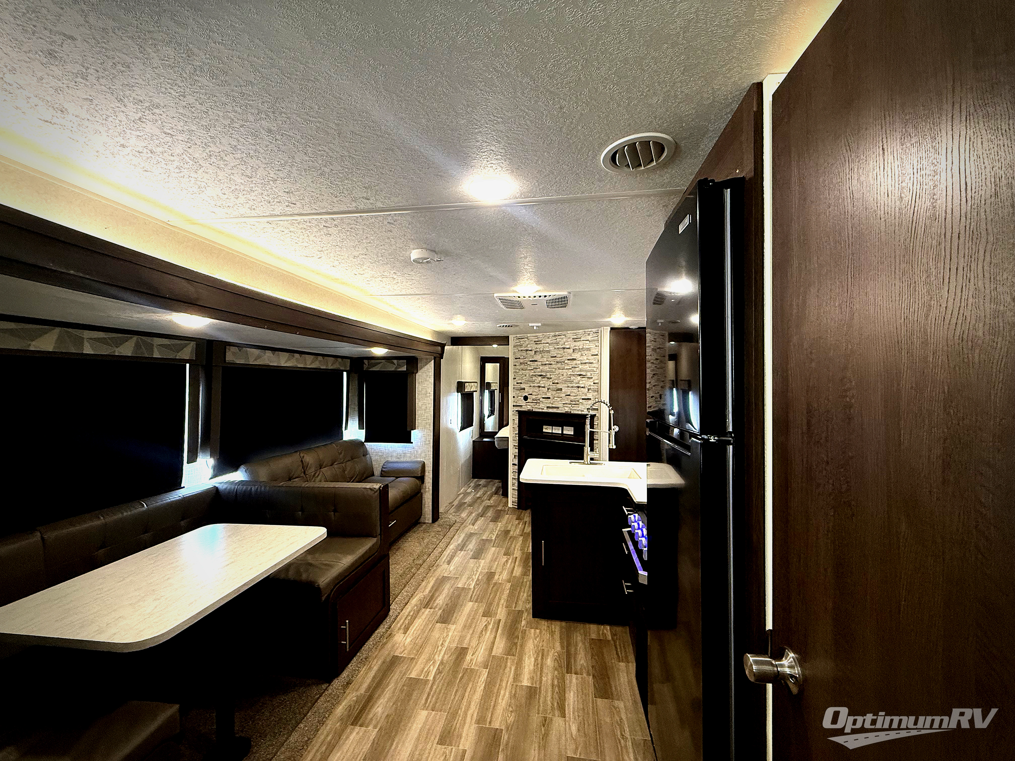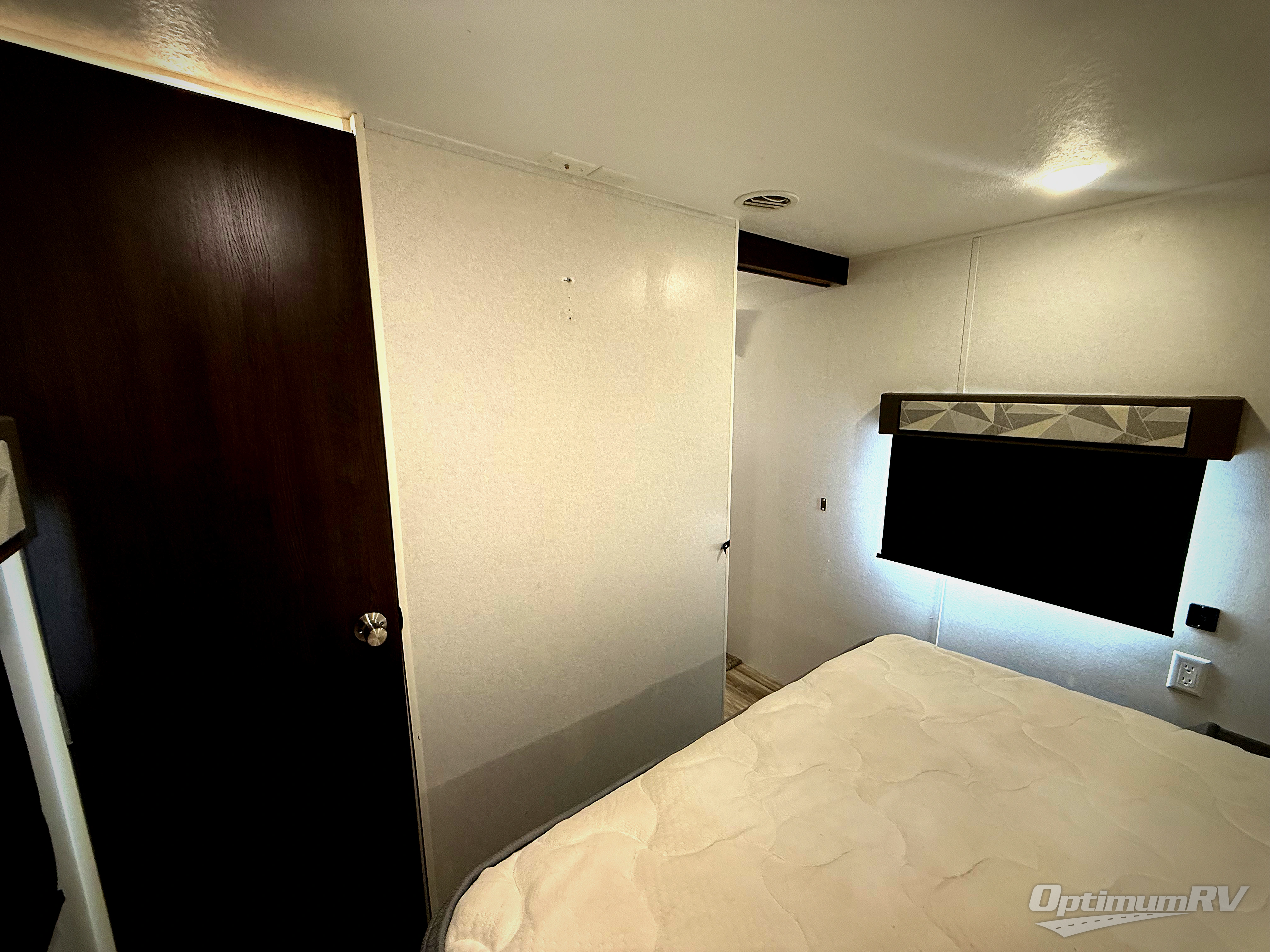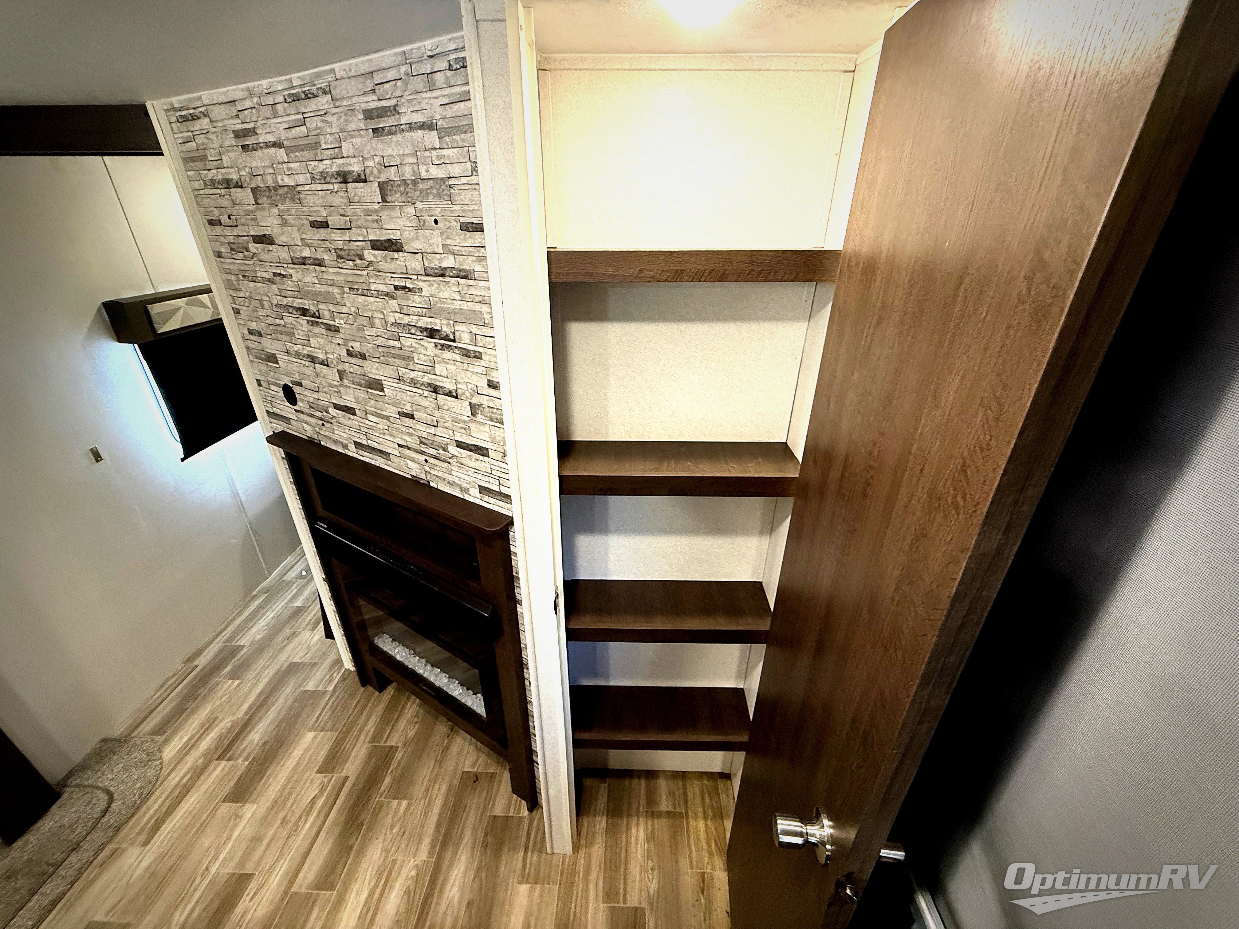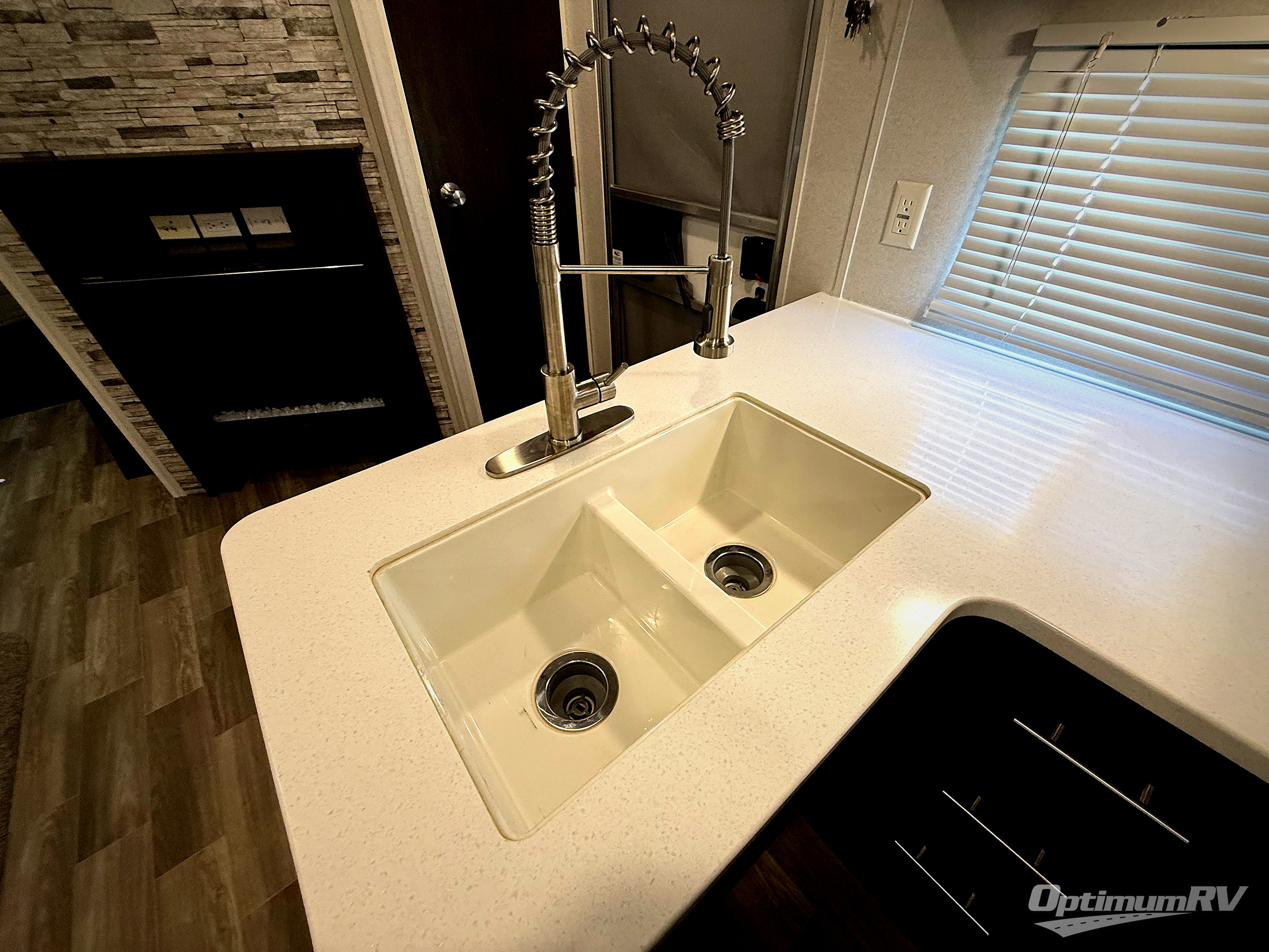 This travel trailer is perfect for a larger group and family since it includes double bunk beds for the kids and a front private bedroom for mom and dad. You'll find a Versa Lounge in the large slide out which includes a large U-shaped dinette and sofa and the panoramic windows will provide great views. This model includes dual entry doors; one leading into the main living area, and one into the rear corner bath for convenience. Bring along all of your camp gear and store it in the pass-through storage and the walk-in pantry indoors can hold all the snacks.