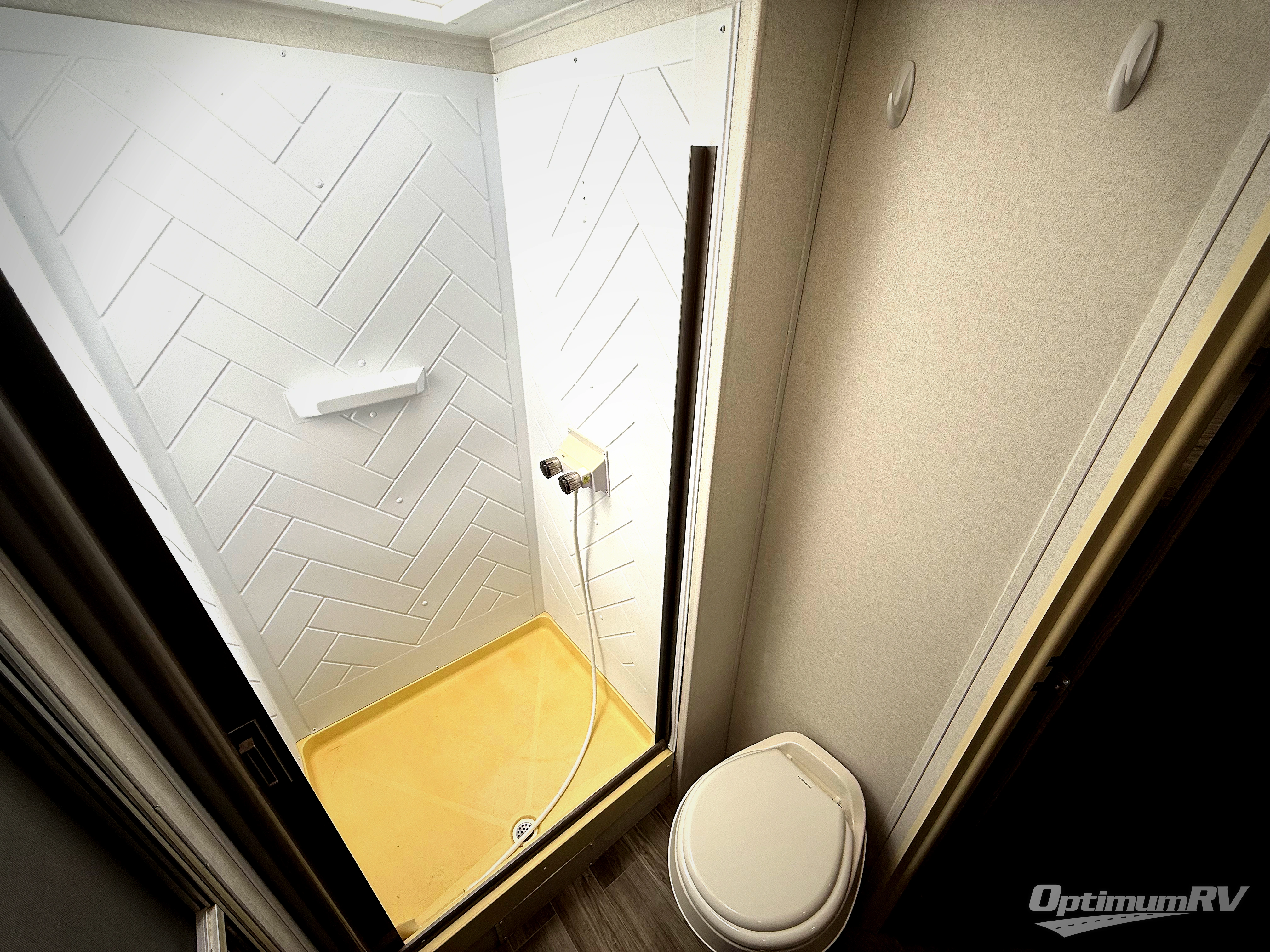 With each Midwest region Wildwood travel trailer by Forest River you will enjoy many interior comforts, like the Herringbone pattern luxury vinyl flooring, the Evergreen mattress, the tub surround, plus much more. There is a fully walkable one piece roof that will make cleaning off the top of your unit a snap, each model is also constructed with a powder coated I-beam frame and a tough coat paint exterior. The power awning with adjustable legs will provide an outdoor living space, and the exterior speakers with a blue LED light will keep the party going!
