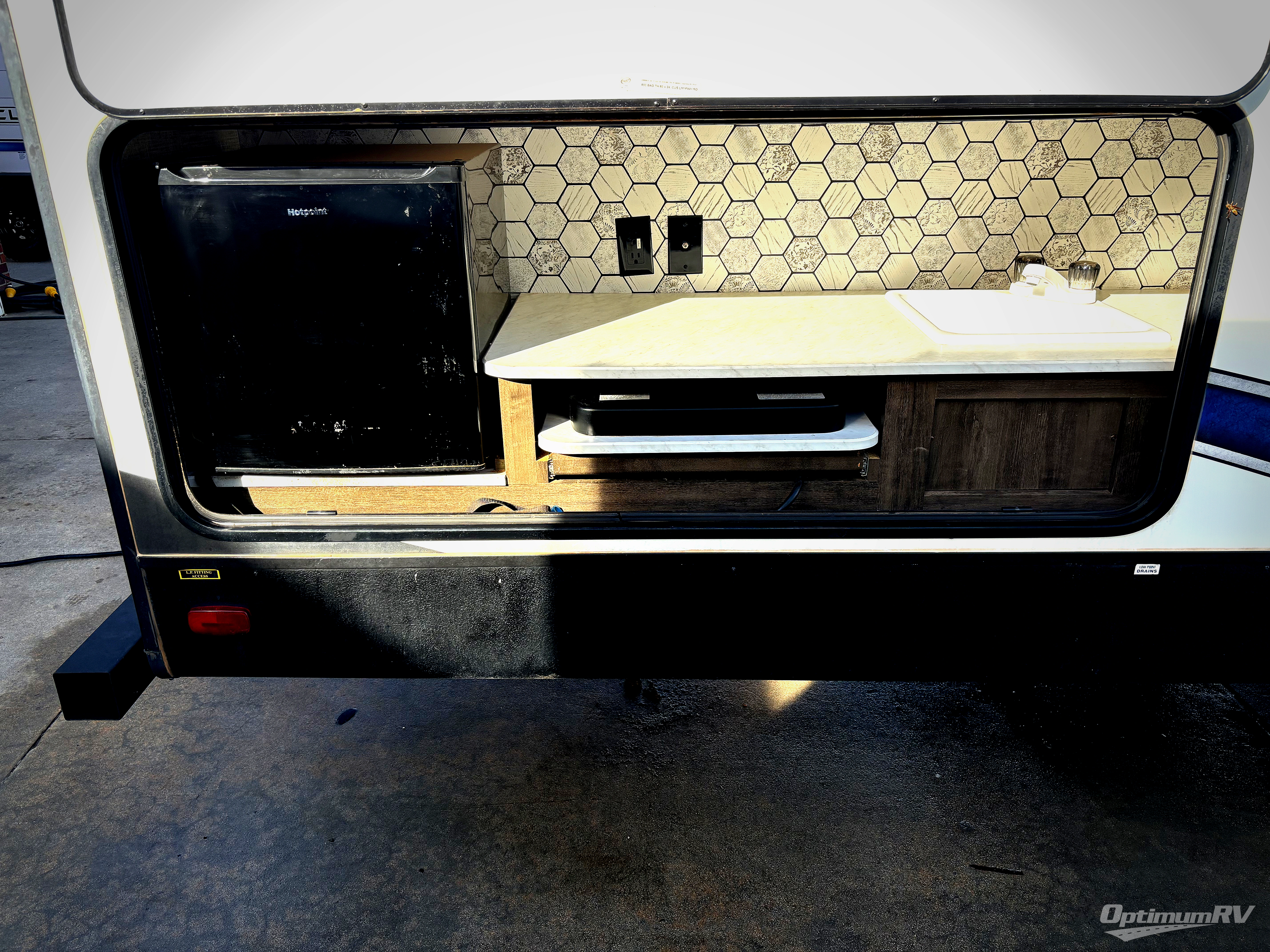 You will enjoy every camping vacation in this trailer with features such as the exterior slide cook top, and the set of double size bunk beds next to the corner full bathroom which will come in handy for any late night trips. The booth dinette is the perfect place for you to enjoy your meals at, play a game or even transform into an extra sleeping space for guests, and right next to it is the sofa. And the single slide gives everyone more floor space to move about when inside, and the power awning allows everyone to relax outdoors with some protection from the elements.