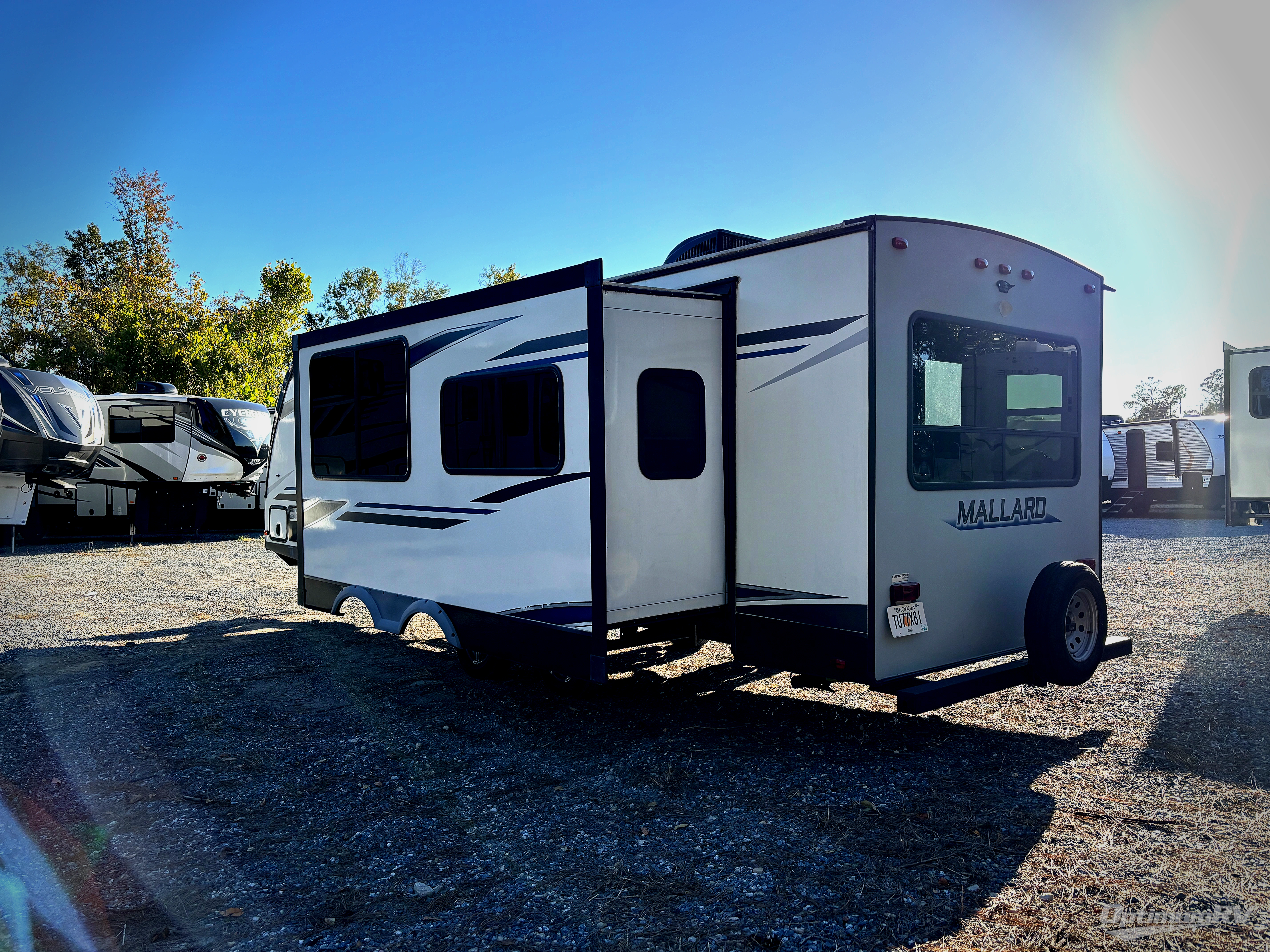 With any Mallard Ultra Lite travel trailer by Heartland, there is a automotive grade painted front cap with LED accent lights, six-sided aluminum construction, leaf spring suspension, a Wide Trax axle system, a power tongue and stabilizer jacks, plus more features giving you years of enjoyment during any season. The spacious interior is inviting with arched ceilings, the overstuffed residential grade furniture is comfortable, and the King Kong sized pass-through storage allows you to leave nothing behind. Spread your wings, choose a Mallard today!
