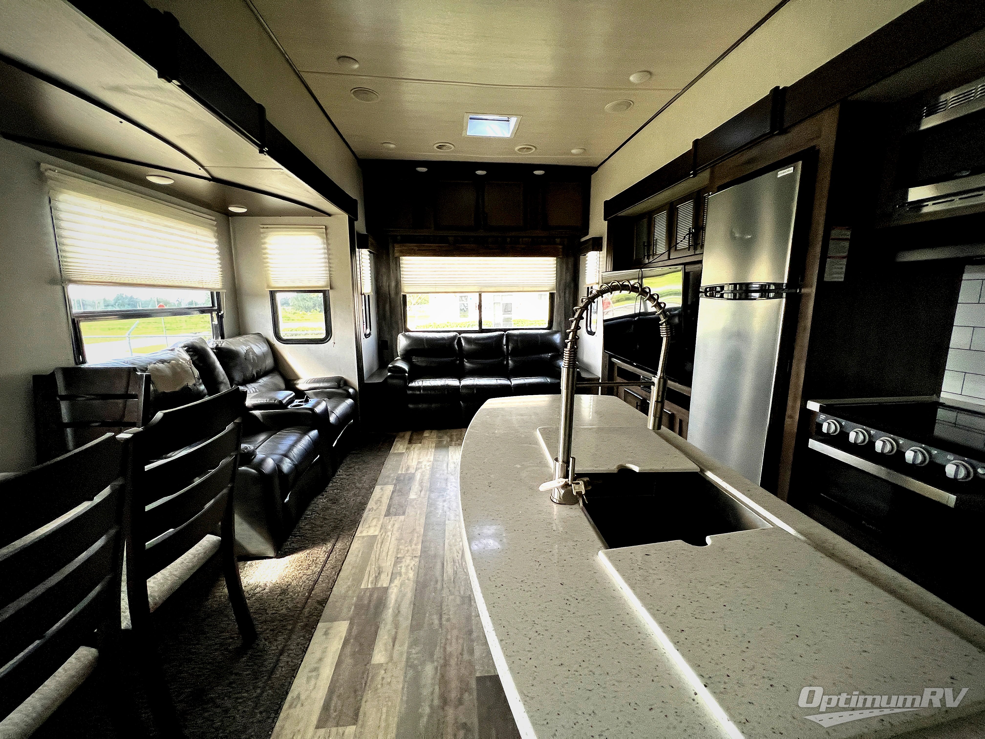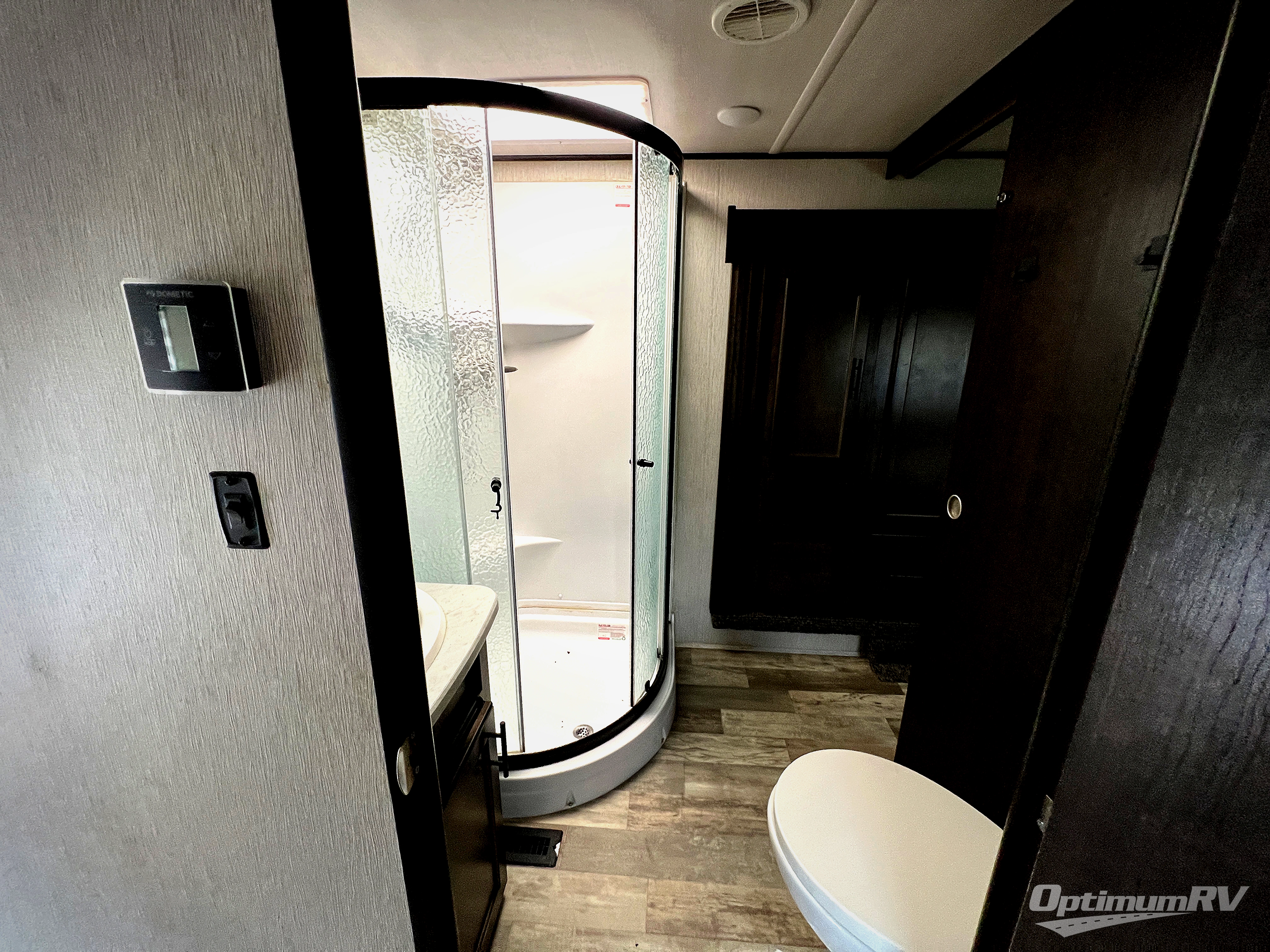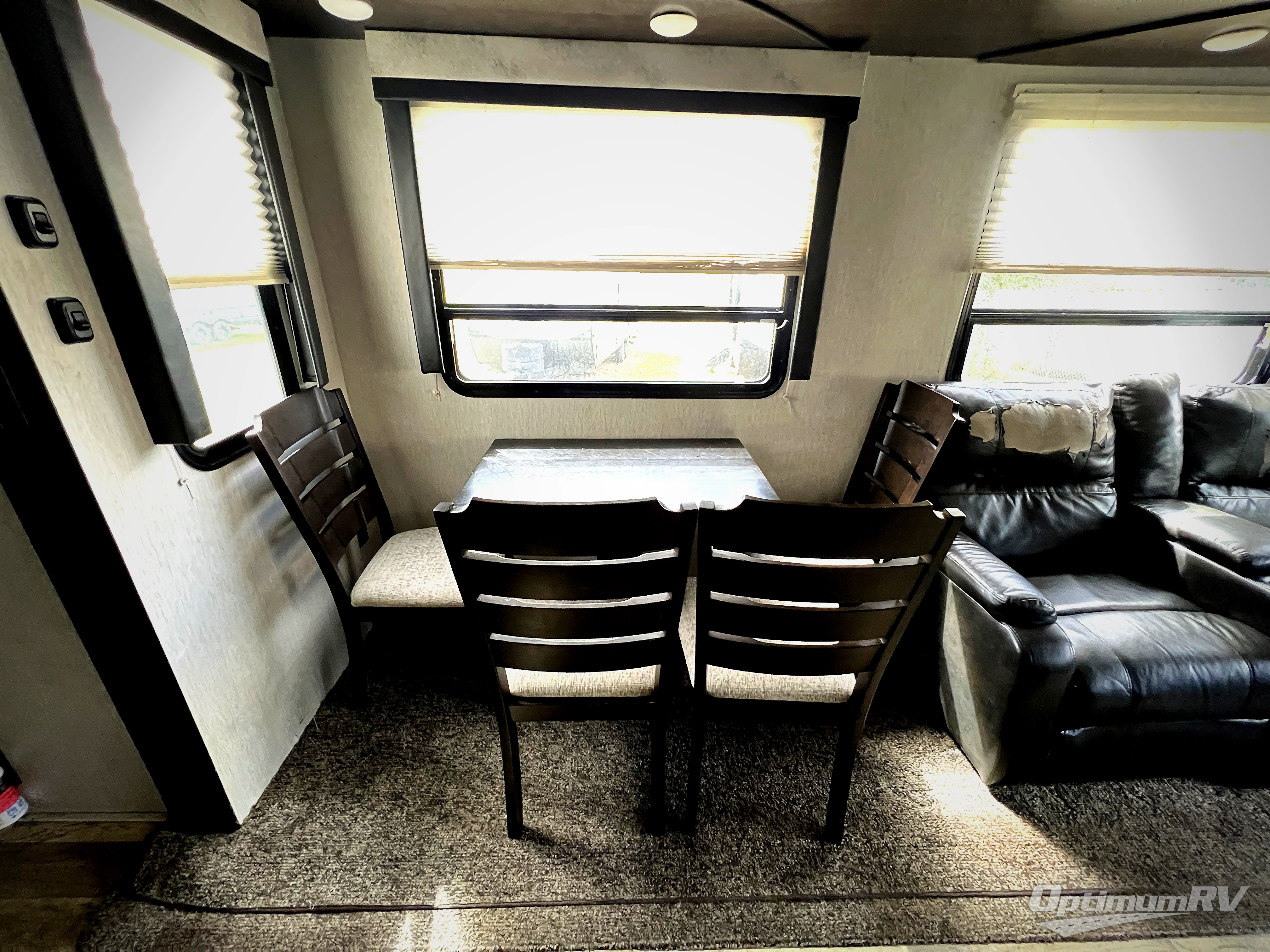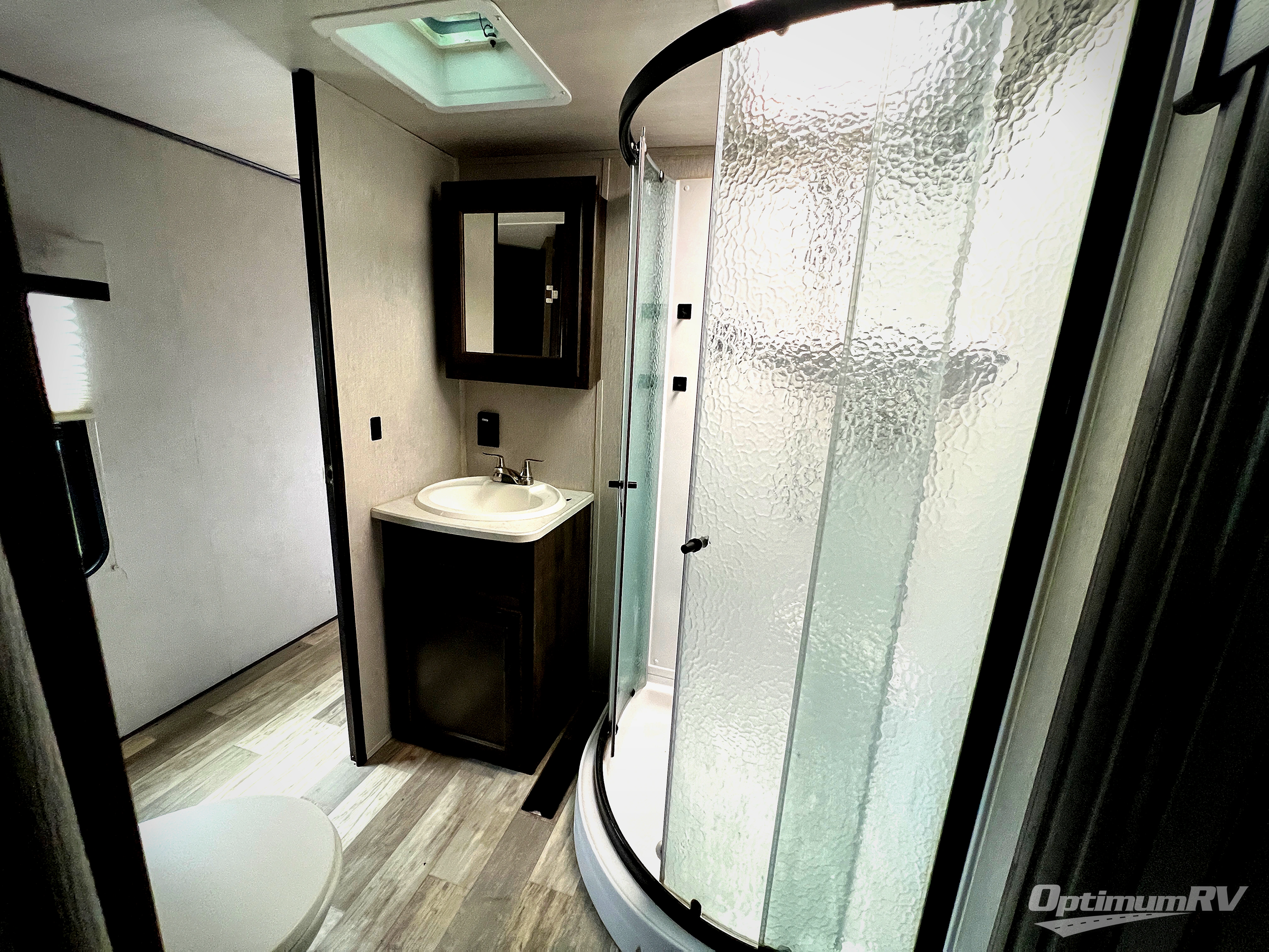 Imagine the kids laughing and visiting about their day as they sleep in the middle bunkhouse which also includes a half bath and storage for their things in this Milestone fifth wheel. If they invited their friends, the loft offers more sleeping space. You will have your own master suite with a walk-around bed and a wardrobe slide out that extends into the dual-entry bathroom. The rear living area provides a sofa and theater seating to relax on, and you will find all the kitchen appliances you will need including a residential refrigerator to store lots of cold food for everyone. The kitchen peninsula countertop is a great place to prepare and serve meals, and the large pantry will hold lots of ingredients and snacks.