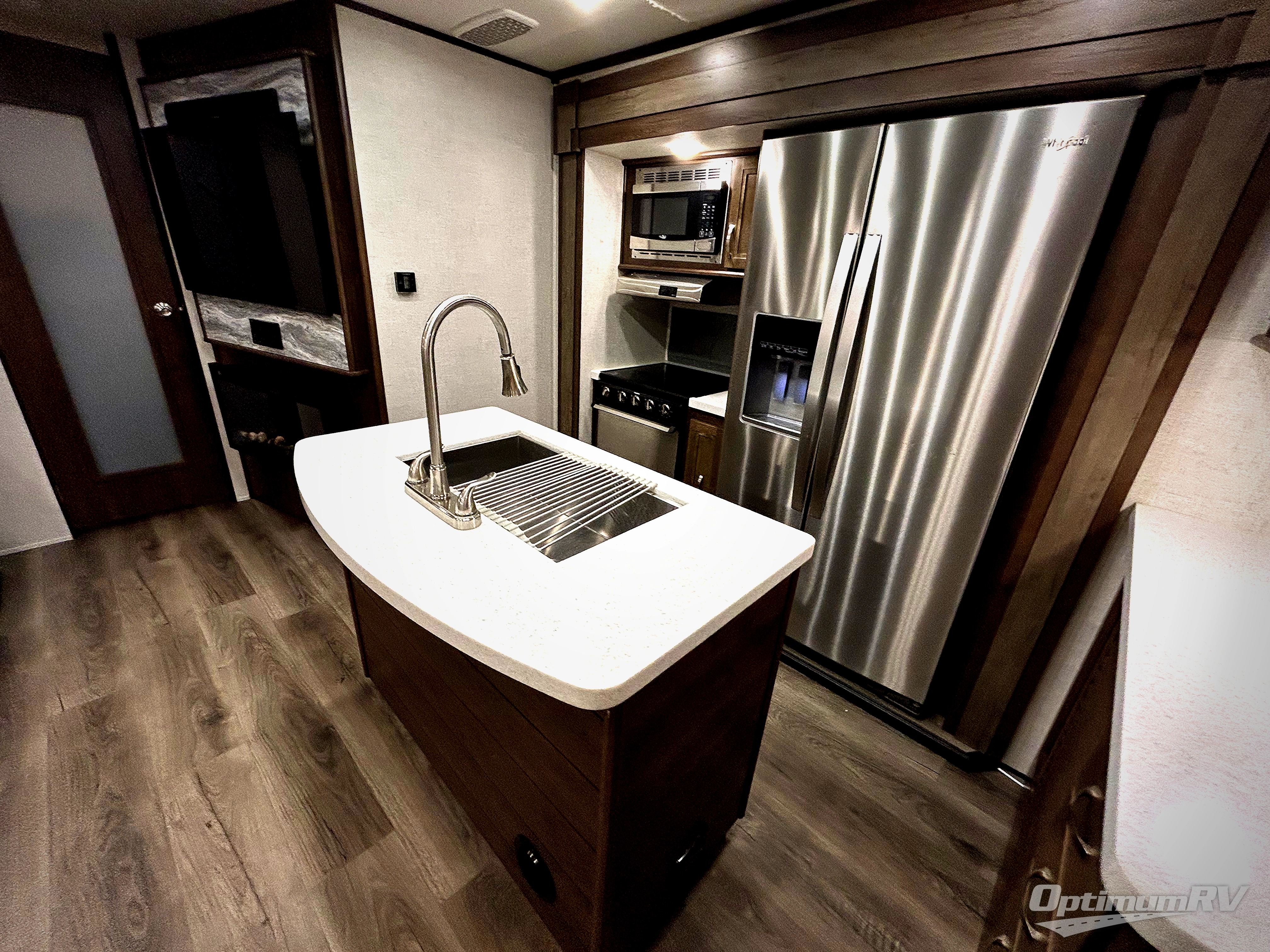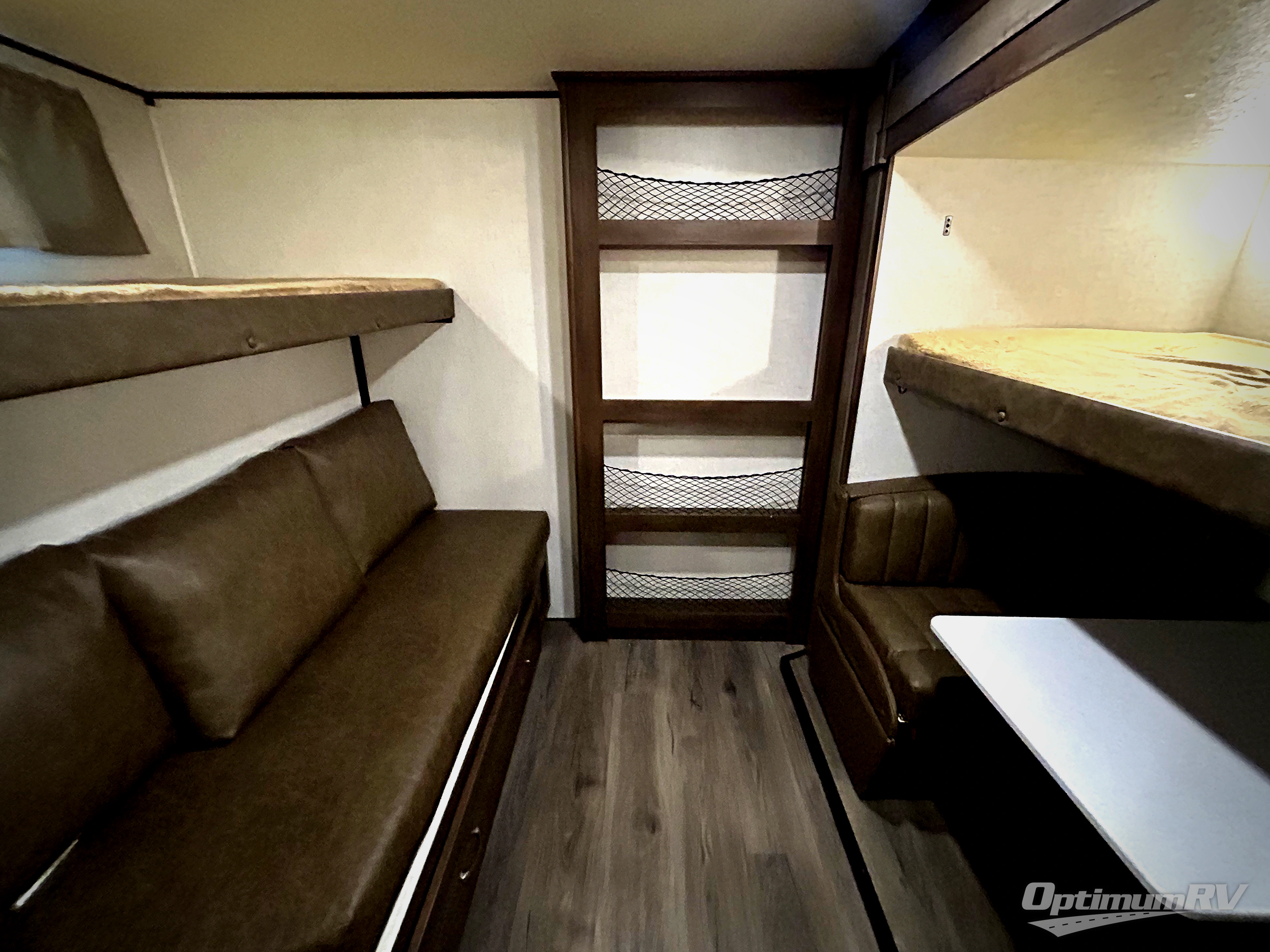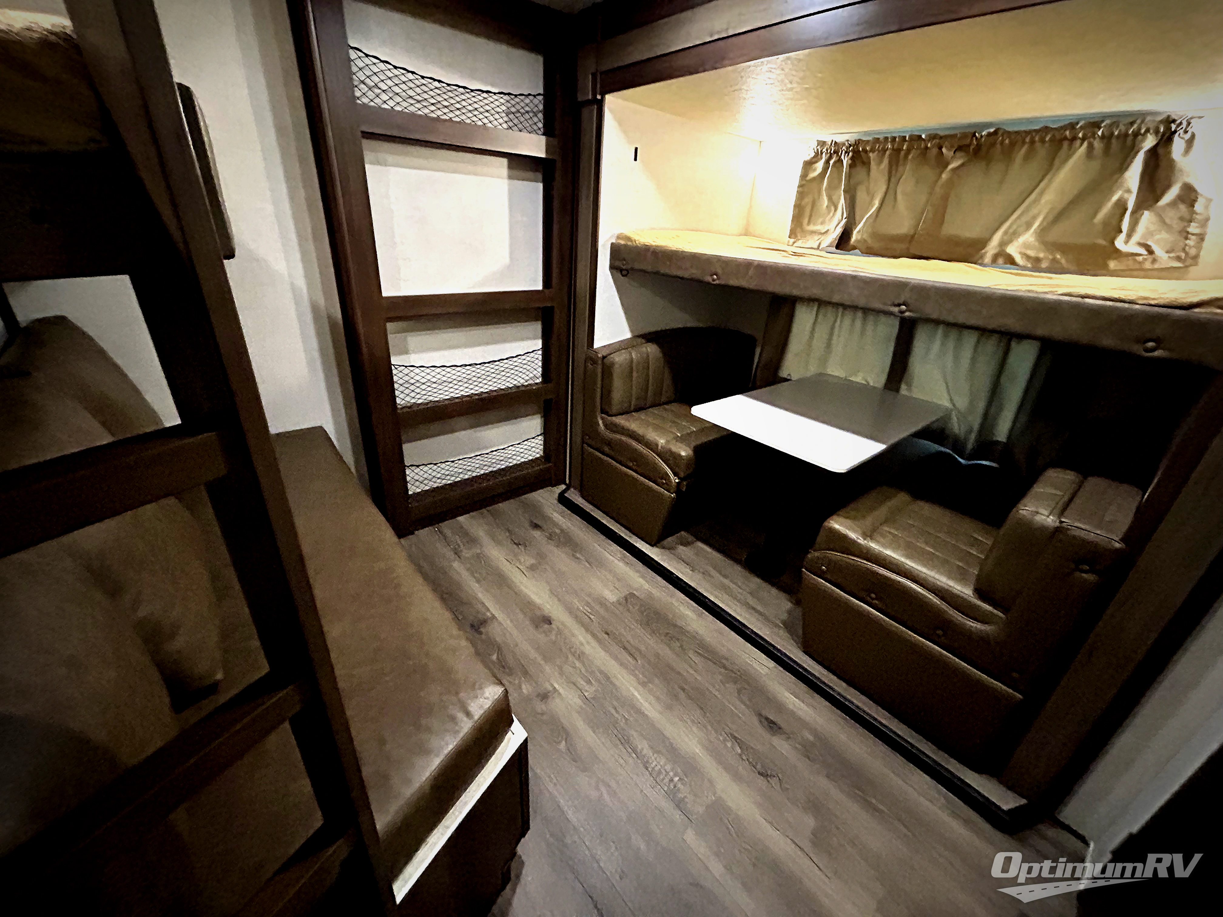 Are you looking for lots of space for the whole gang? Are you wanting to have your own full bathroom away from the kids? This Mesa Ridge travel trailer checks all the boxes and offers a full and half bath to use and lots of floor space thanks to the four slides all throughout. Just imagine standing at the kitchen island and looking around at the stainless steel appliances as you make meals for everyone. The kids will surely be waiting anxiously for dinner at the free-standing table or maybe outside at the outdoor kitchen. The rear private bunkhouse suite is also amazing because it provides you with a set of double size bunks, a hinged bunk, a dinette, a hutch, and its very own half bath. You might even like to add a few options such as a king bed, a 21 cu. ft. refrigerator, and/or a U-lounge.