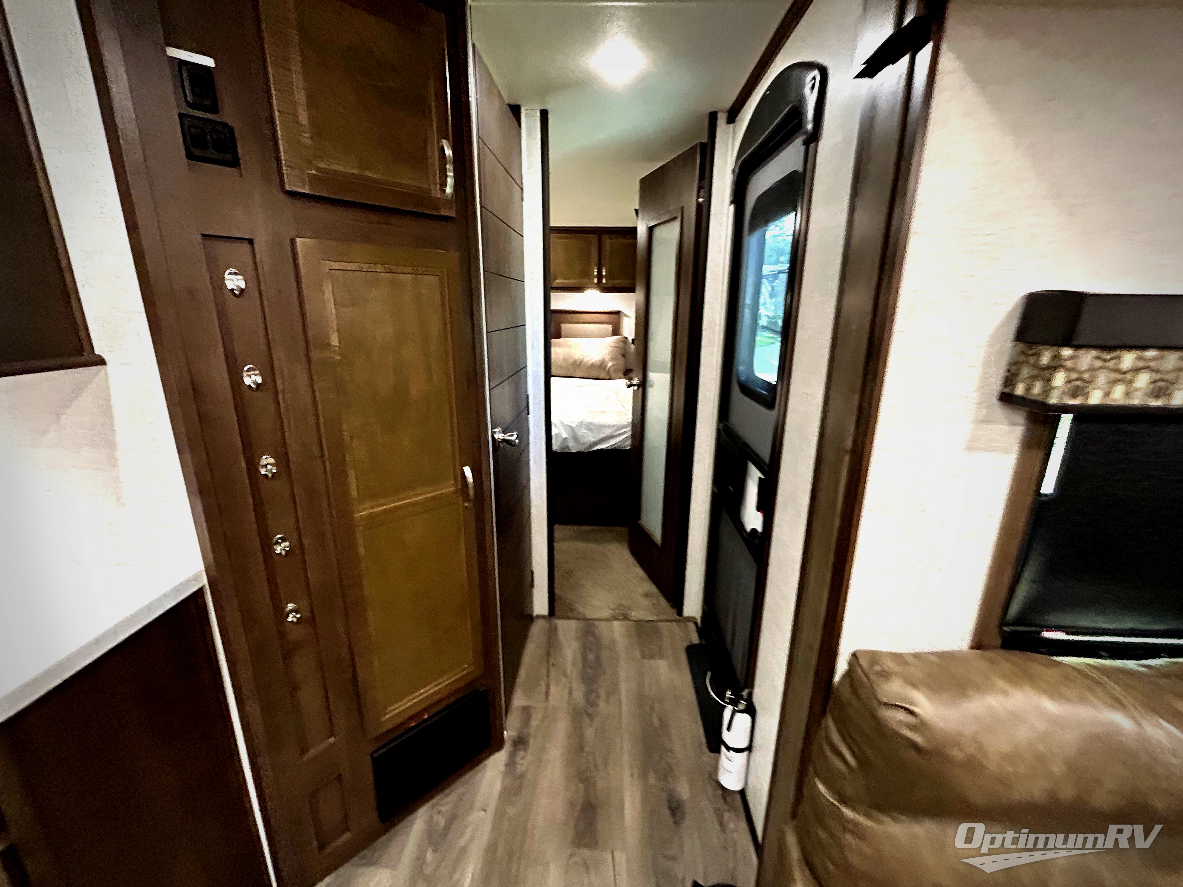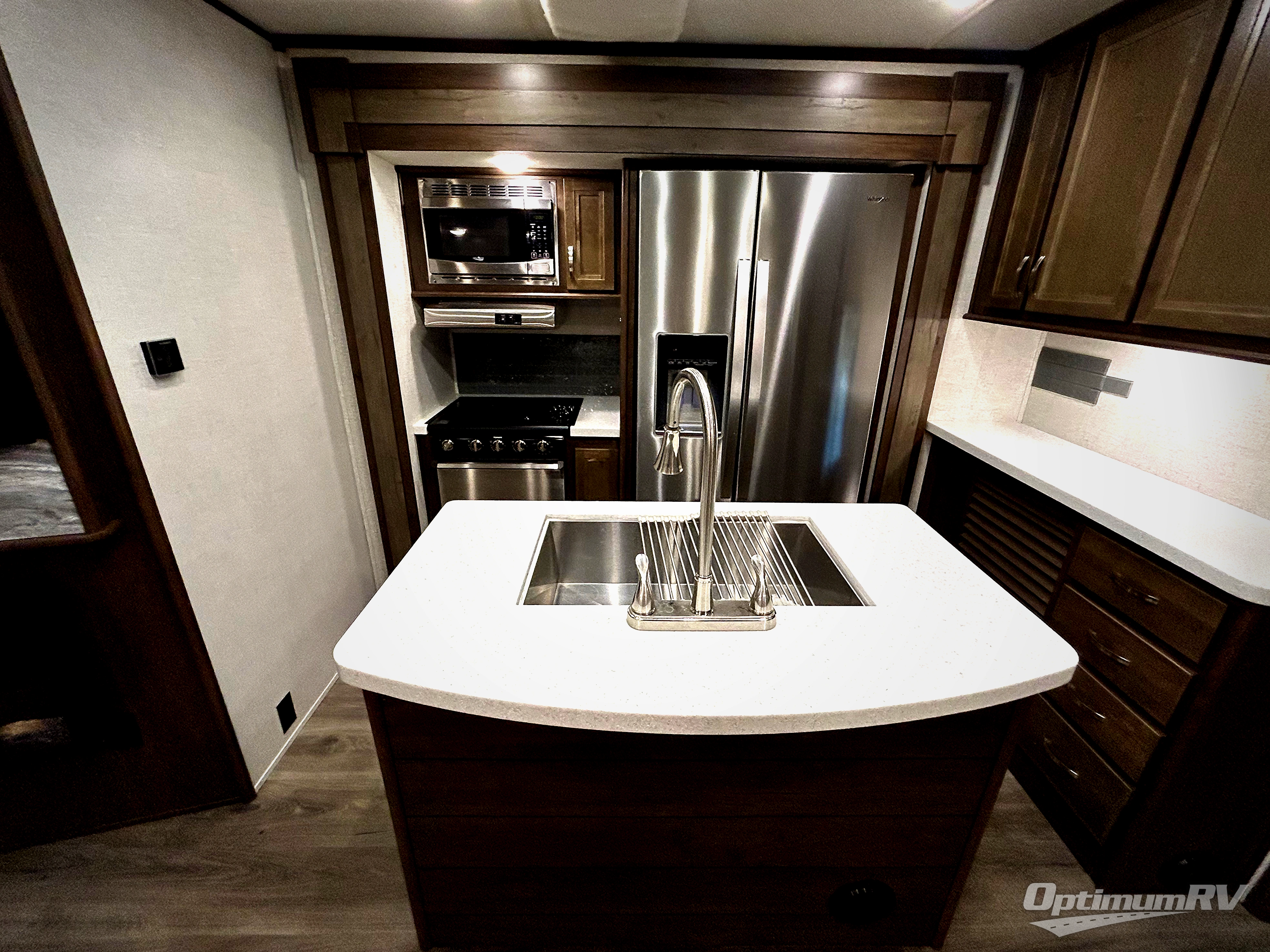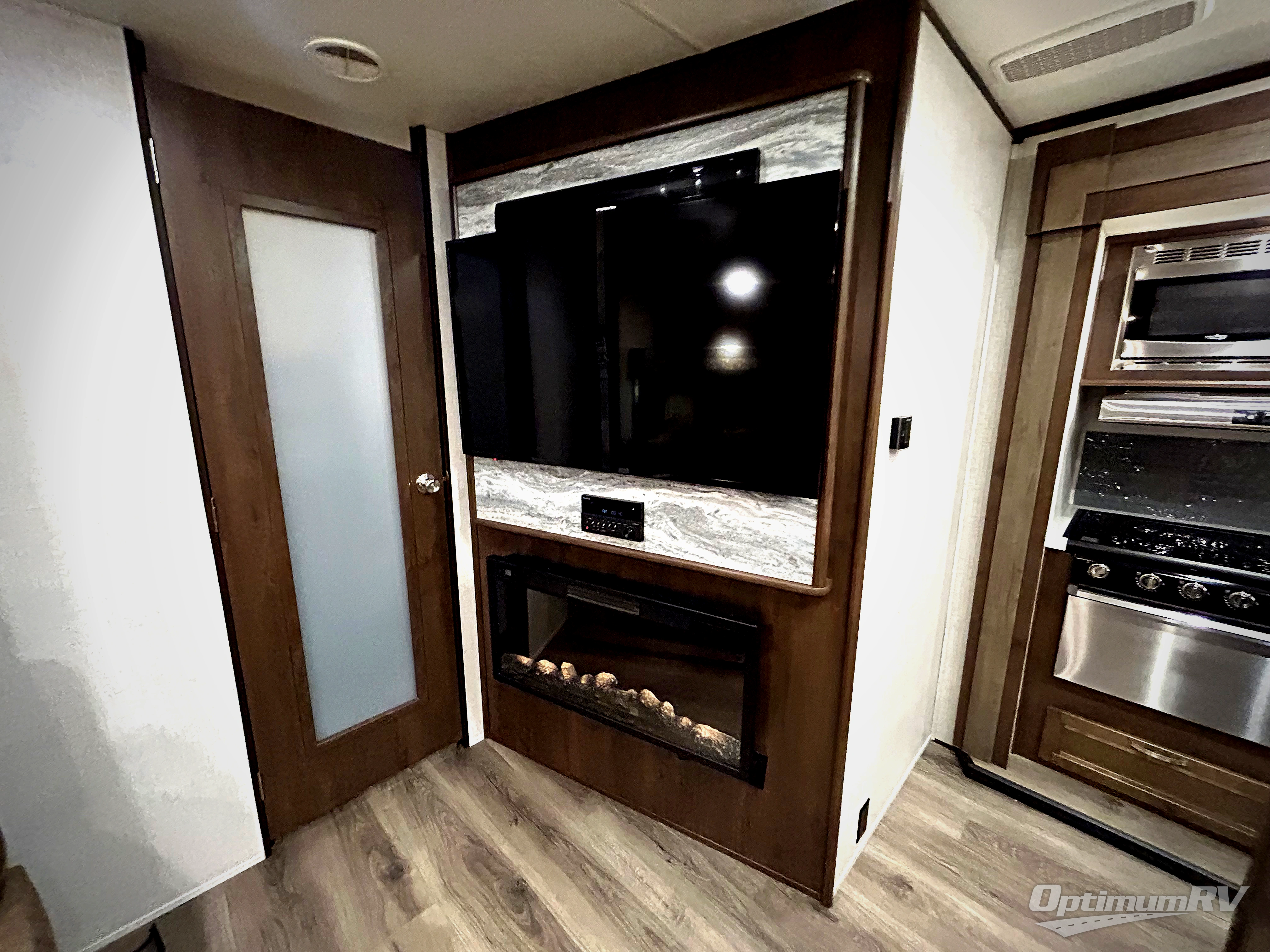 Are you looking for lots of space for the whole gang? Are you wanting to have your own full bathroom away from the kids? This Mesa Ridge travel trailer checks all the boxes and offers a full and half bath to use and lots of floor space thanks to the four slides all throughout. Just imagine standing at the kitchen island and looking around at the stainless steel appliances as you make meals for everyone. The kids will surely be waiting anxiously for dinner at the free-standing table or maybe outside at the outdoor kitchen. The rear private bunkhouse suite is also amazing because it provides you with a set of double size bunks, a hinged bunk, a dinette, a hutch, and its very own half bath. You might even like to add a few options such as a king bed, a 21 cu. ft. refrigerator, and/or a U-lounge.