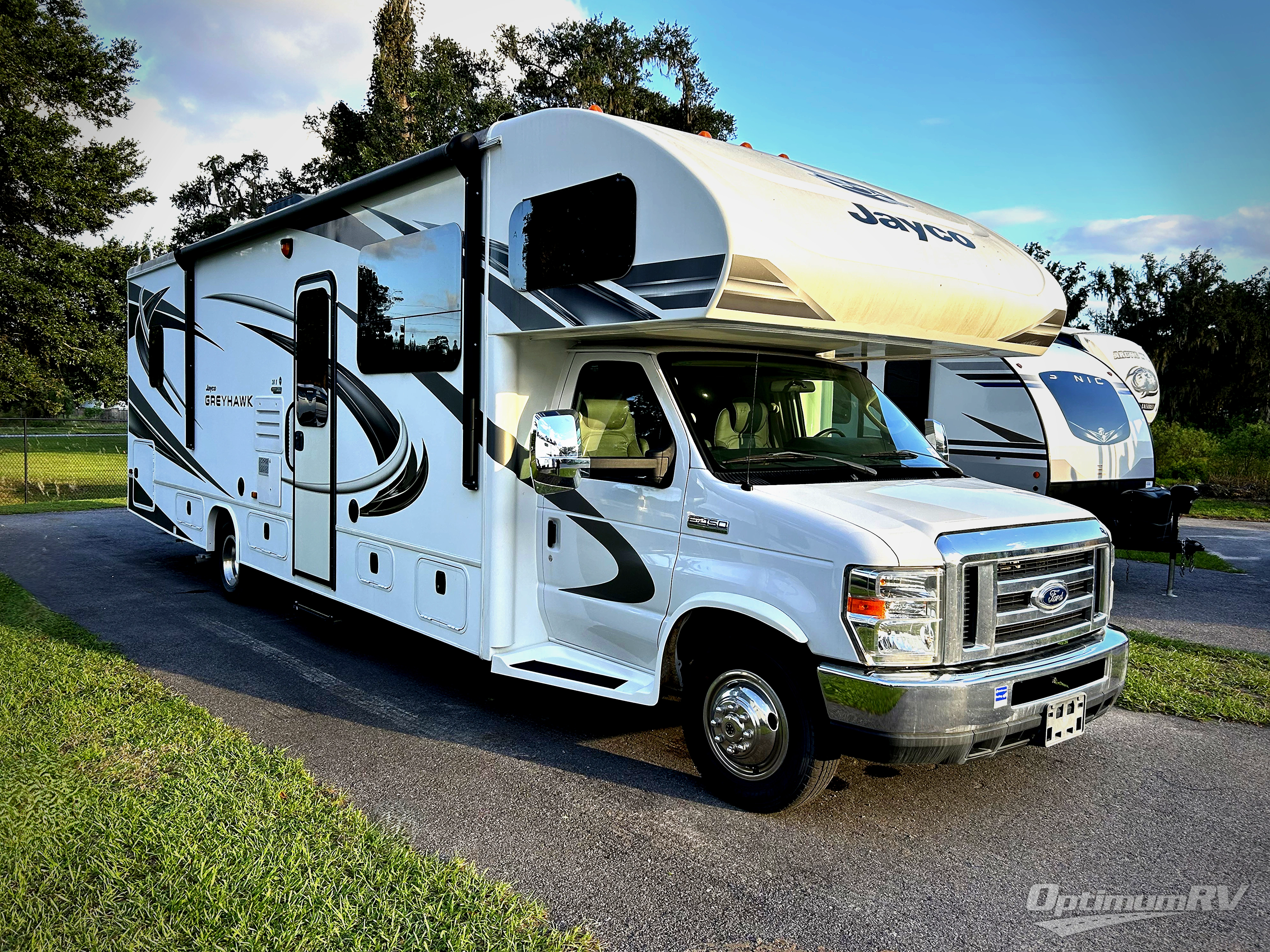 Start your next road trip with this Jayco Greyhawk Prestige Class C gas motorhome. Let this model take you camping near the water or at the base of a mountain! Inside you will find plenty of room to move around with the full-wall slide, plus there is ample storage with all of the overhead cabinets. In the bedroom there is a walk-around RV queen bed where you are sure to get a good night's rest. If you are impressed with all of the storage inside this model, then you should check out the exterior. There are locking exterior storage compartments for all of your extra camping gear, and the 16' electric awning provides plenty of shade and maximizes your outdoor living space!
