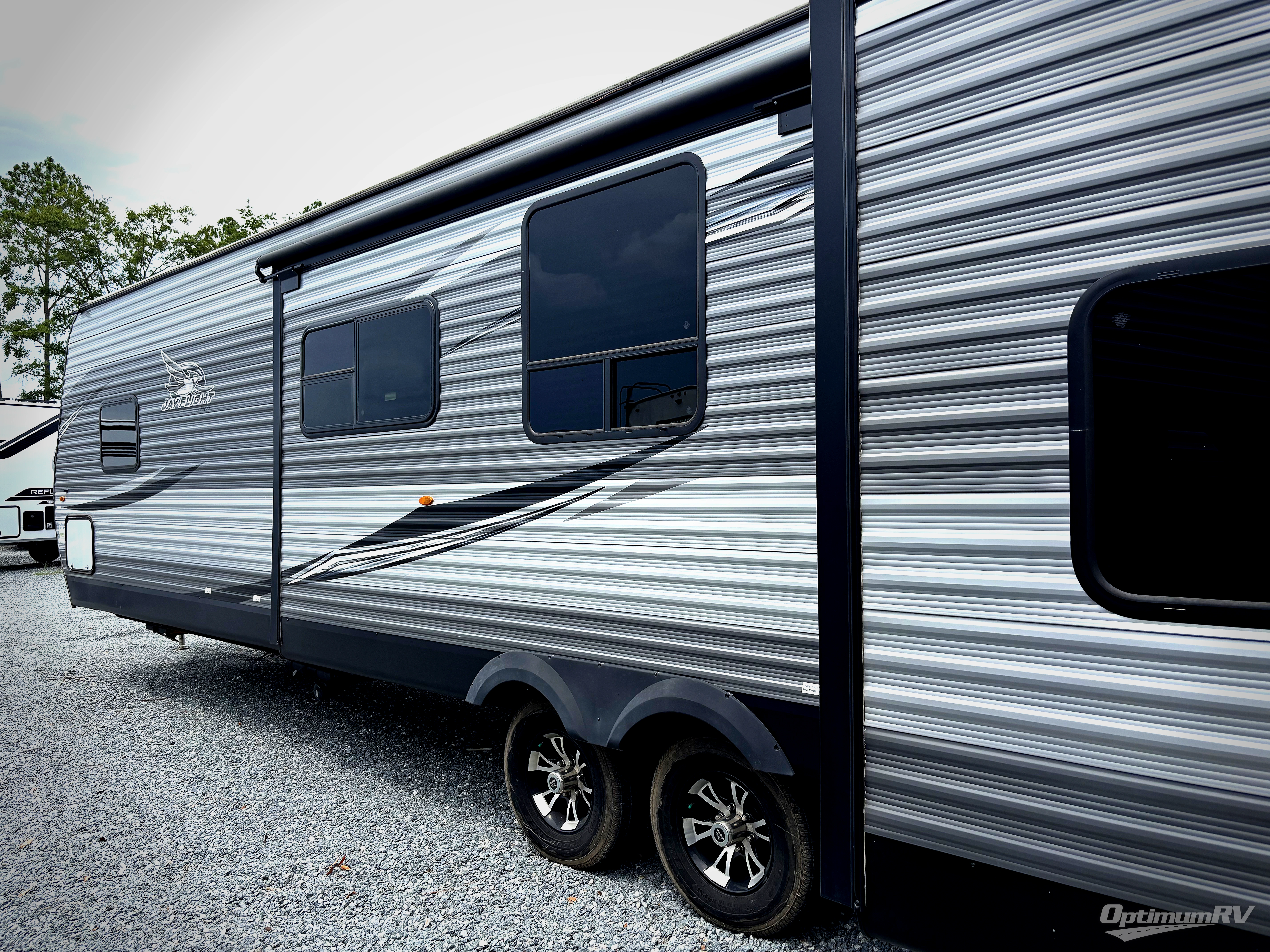 It will be so easy to convince your family to get away when you have this Jay Flight travel trailer! A private bunkhouse in the back and a private bedroom up front give everyone a separate place to rest for the night, and it will be fun to gather everyone together in the main living area on the jackknife sofa or booth dinette for a time of games. Keep any large camping gear hidden away in the exterior pass-through storage and use the interior wardrobes to hold all of your essential garments and belongings.