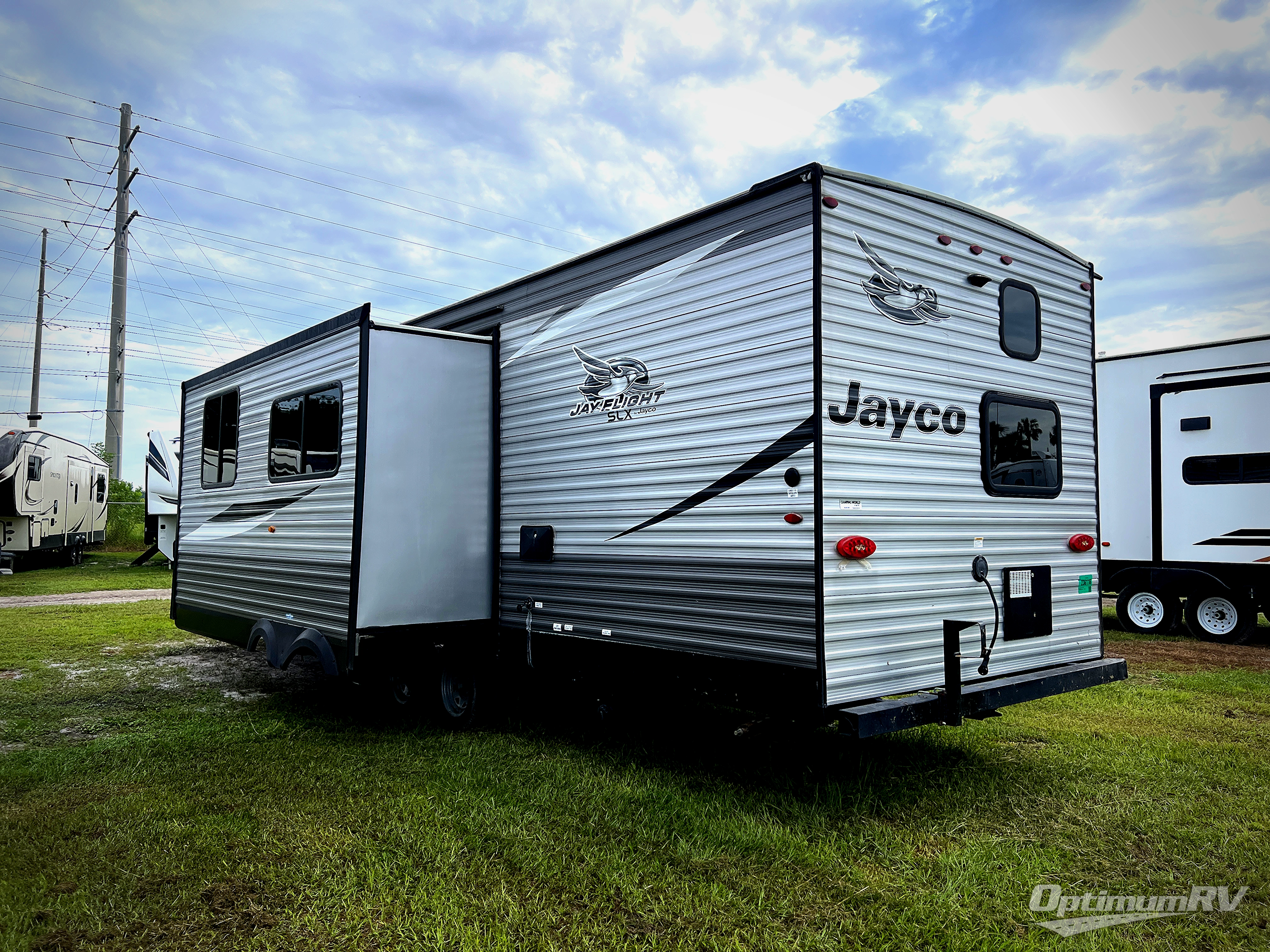 Each Jay Flight SLX 8 travel trailer by Jayco includes the Magnum Truss Roof system which provides seamless DiFlex II material on the roof and plywood decking, and a fully integrated A-frame and I-class cambered structural steel I-beams which is built to last! The roof-mounted air conditioner will come in handy during the hotter months, and the two propane bottles will help keep your showers hot and your meals warm! And when you need to rinse off yourself, your bikes, or the gear, the outdoor shower will do the trick. Choose the floorplan that fits your adventurous side, and load up the family for fun!