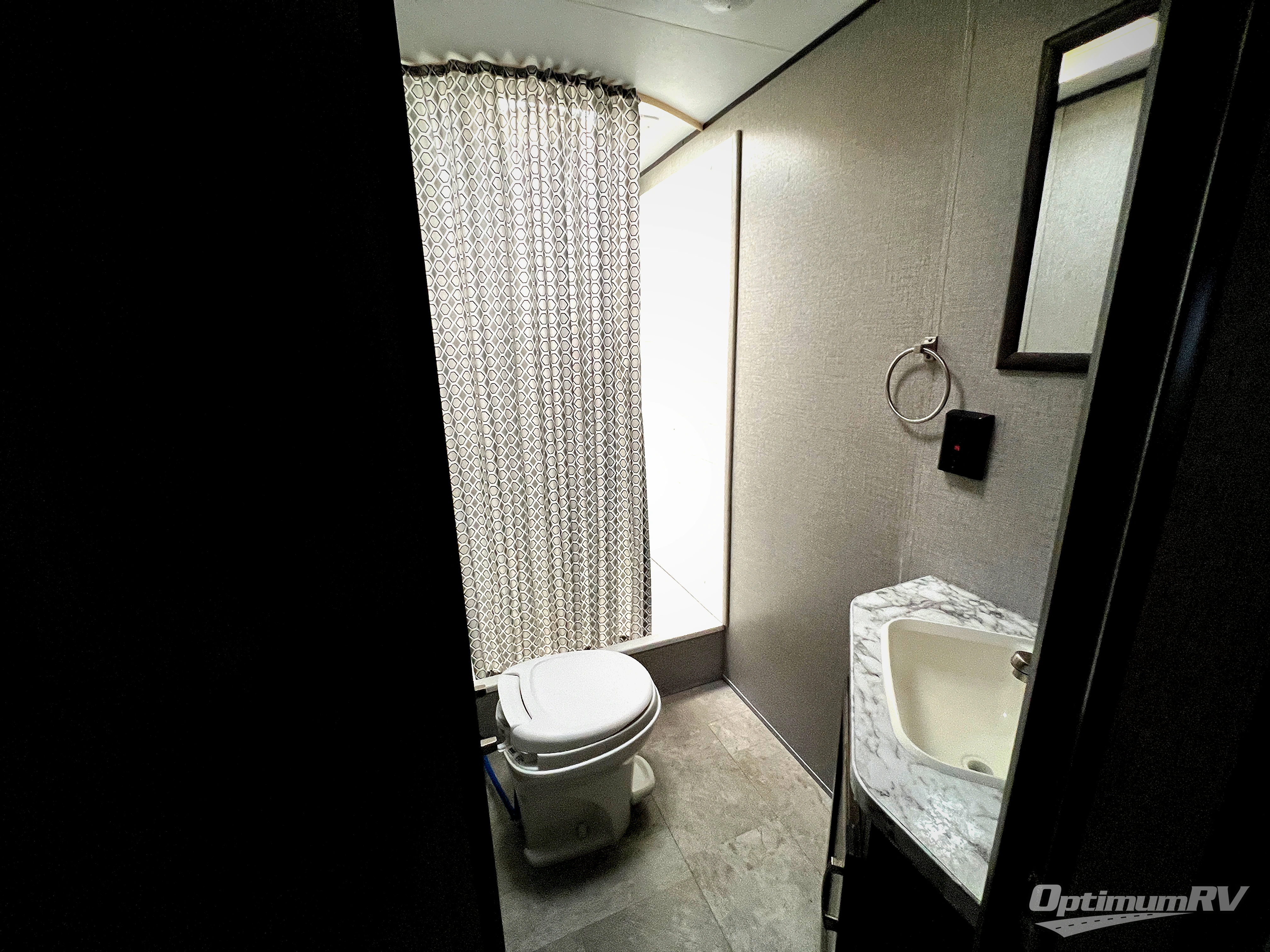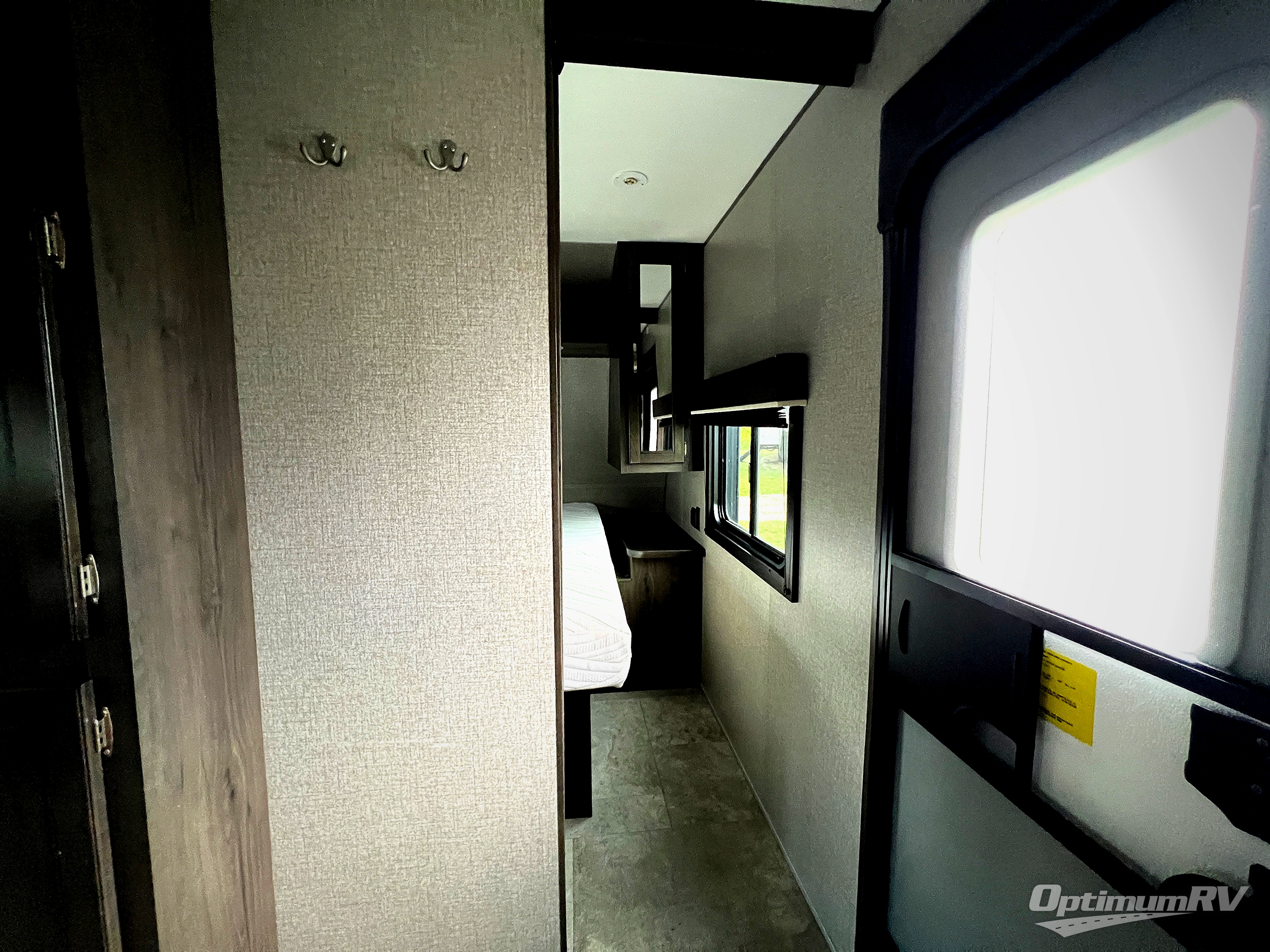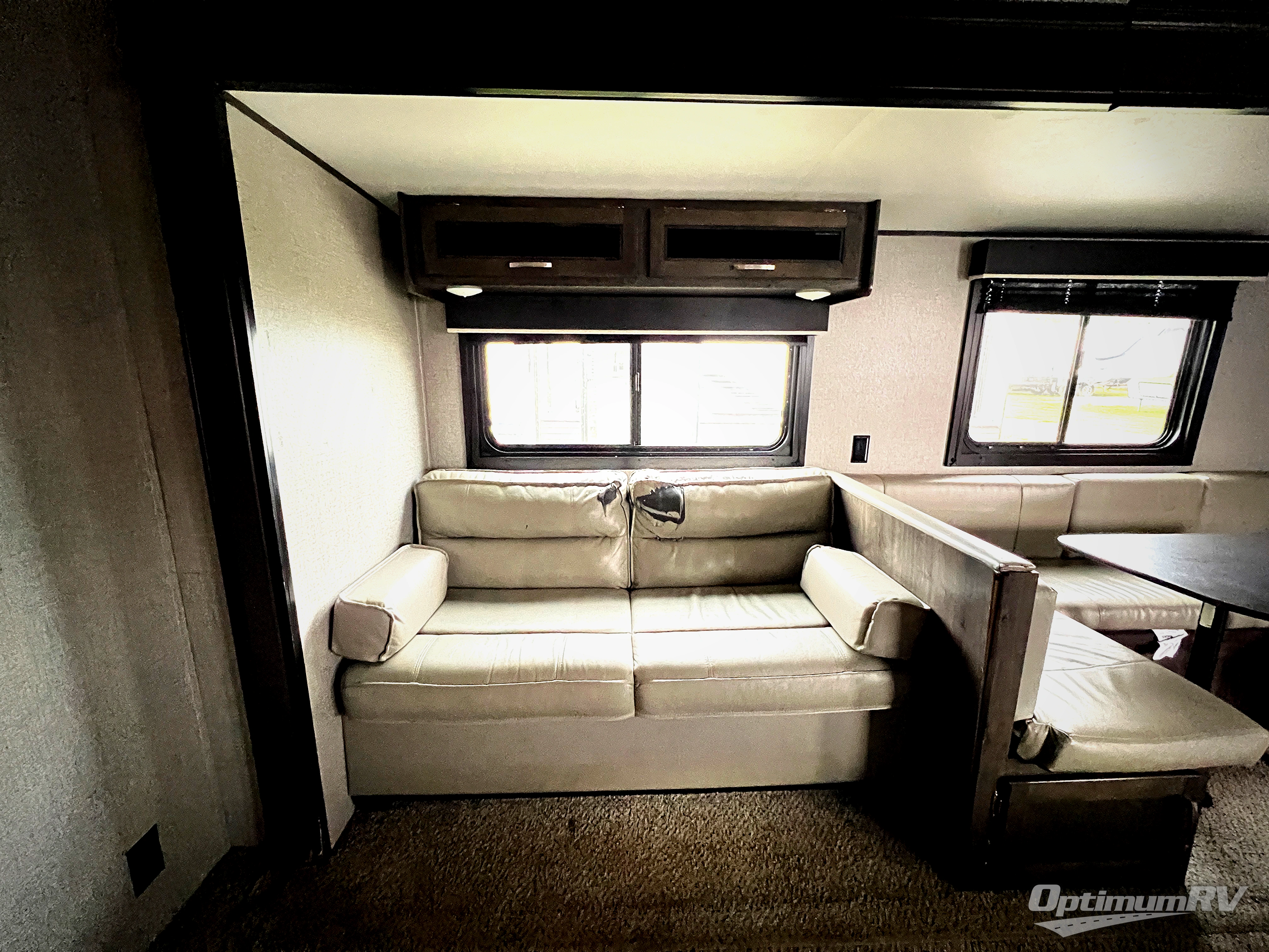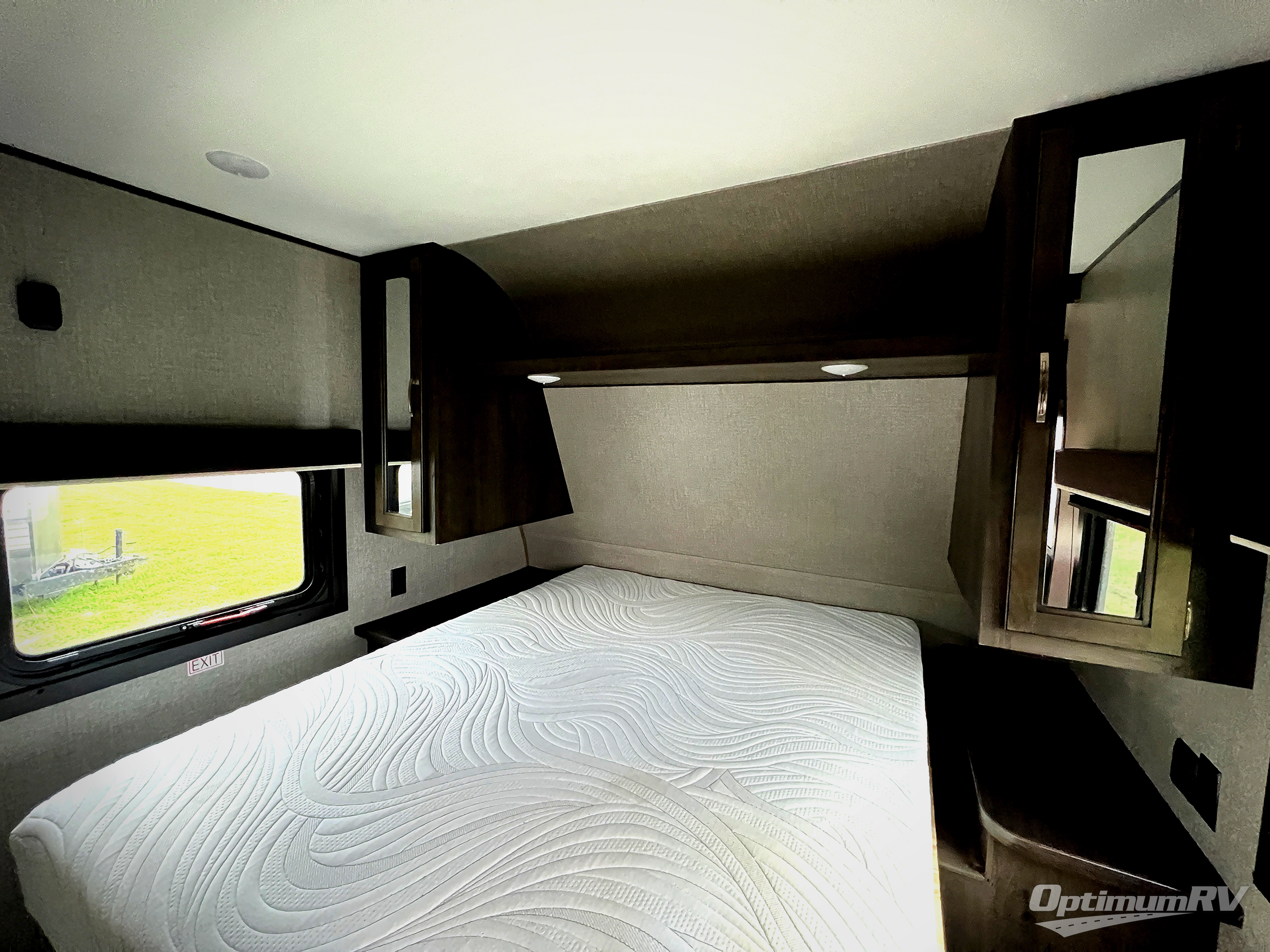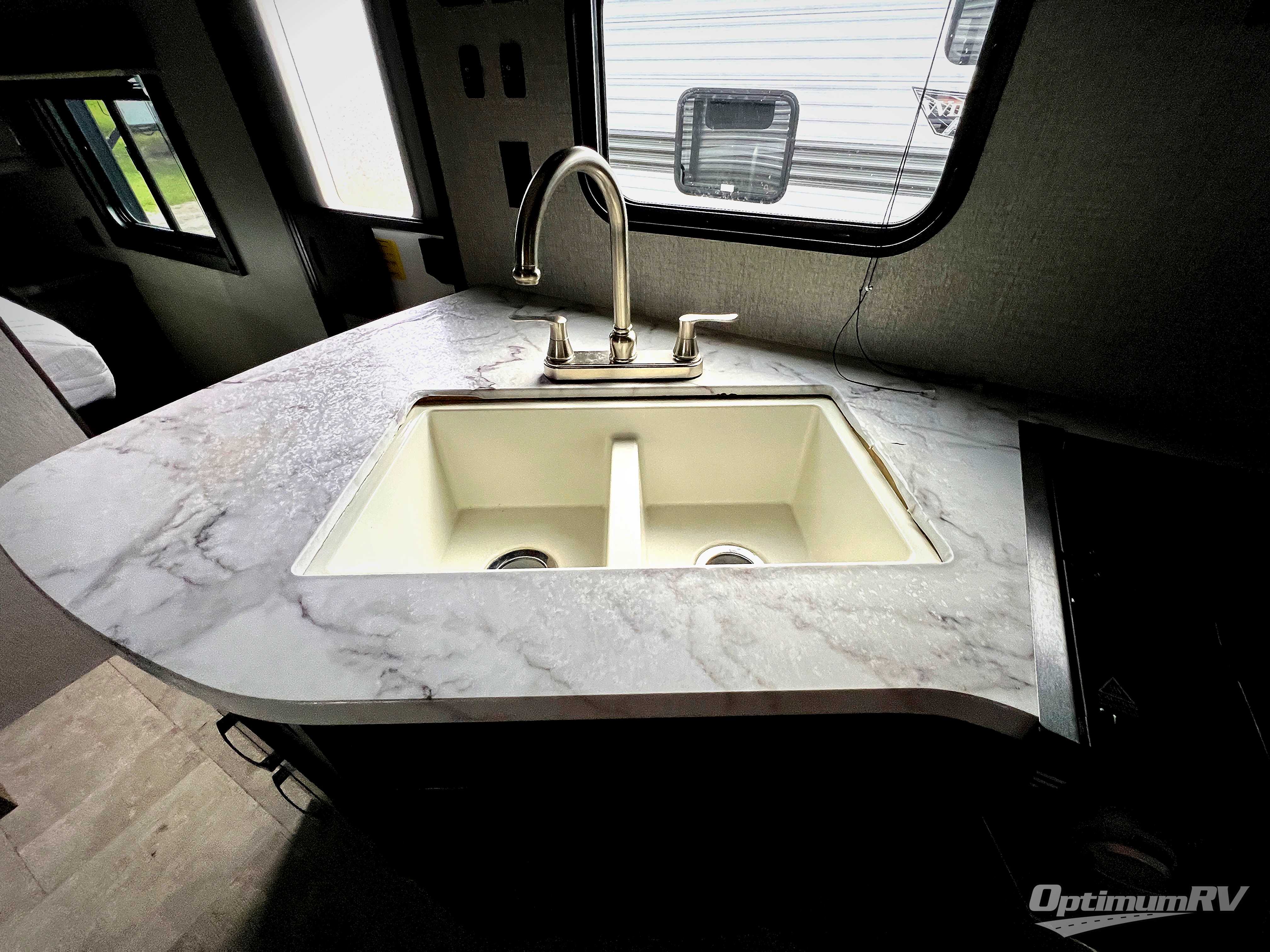 How does cooking breakfast, lunch and even dinner outdoors sound? Well you have that choice each day thanks to the outside kitchen, plus the full kitchen inside offers even more appliances and seamless solid surface countertops. The spacious living area offers a slide out jackknife sofa and U-shaped dinette, and an entertainment center with a 48" TV, plus bench/storage which is quiet handy as you enter the trailer. The kids will enjoy having their own double size bunk with privacy curtain and you can slide the master bedroom door closed and fall asleep on your own queen bed to wake up to grab your clothing from the solid wood cabinet wardrobes.