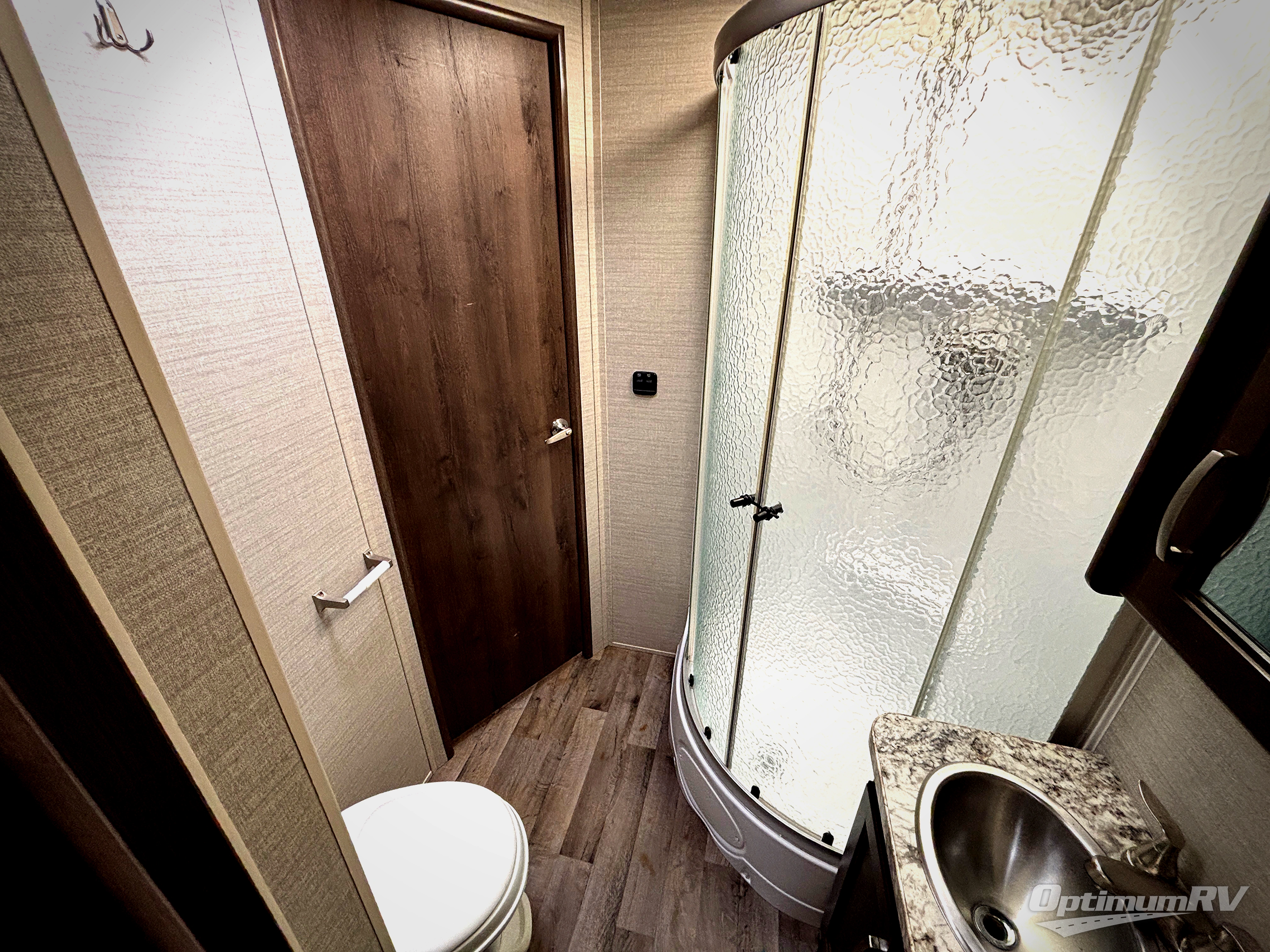 Your kiddos will be ready to draw straws for their own bunk bed or cab-over bunk for the week-long trip. You are sure to love having your own rear private bedroom with a queen-size bed each night, along with a wardrobe for you to hang your clothes. And there is a sliding door into the double entry bathroom as well as a 32" radius shower to give you added floor space and a place to freshen up. When you're ready to wind down for the night, head to the pantry, grab your favorite snack, and relax on the sofa or the dinette. You can also enjoy watching your favorite show on the 32" LED HDTV!