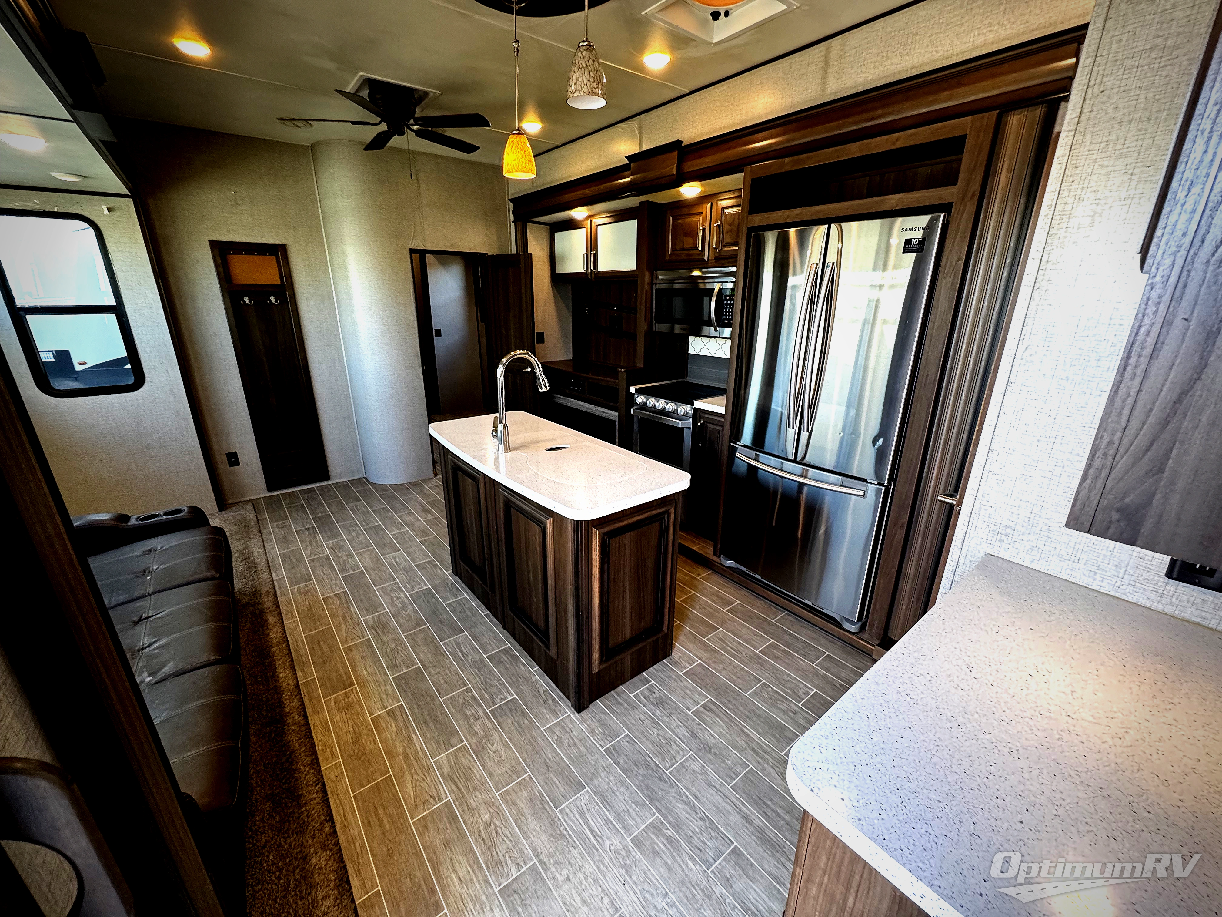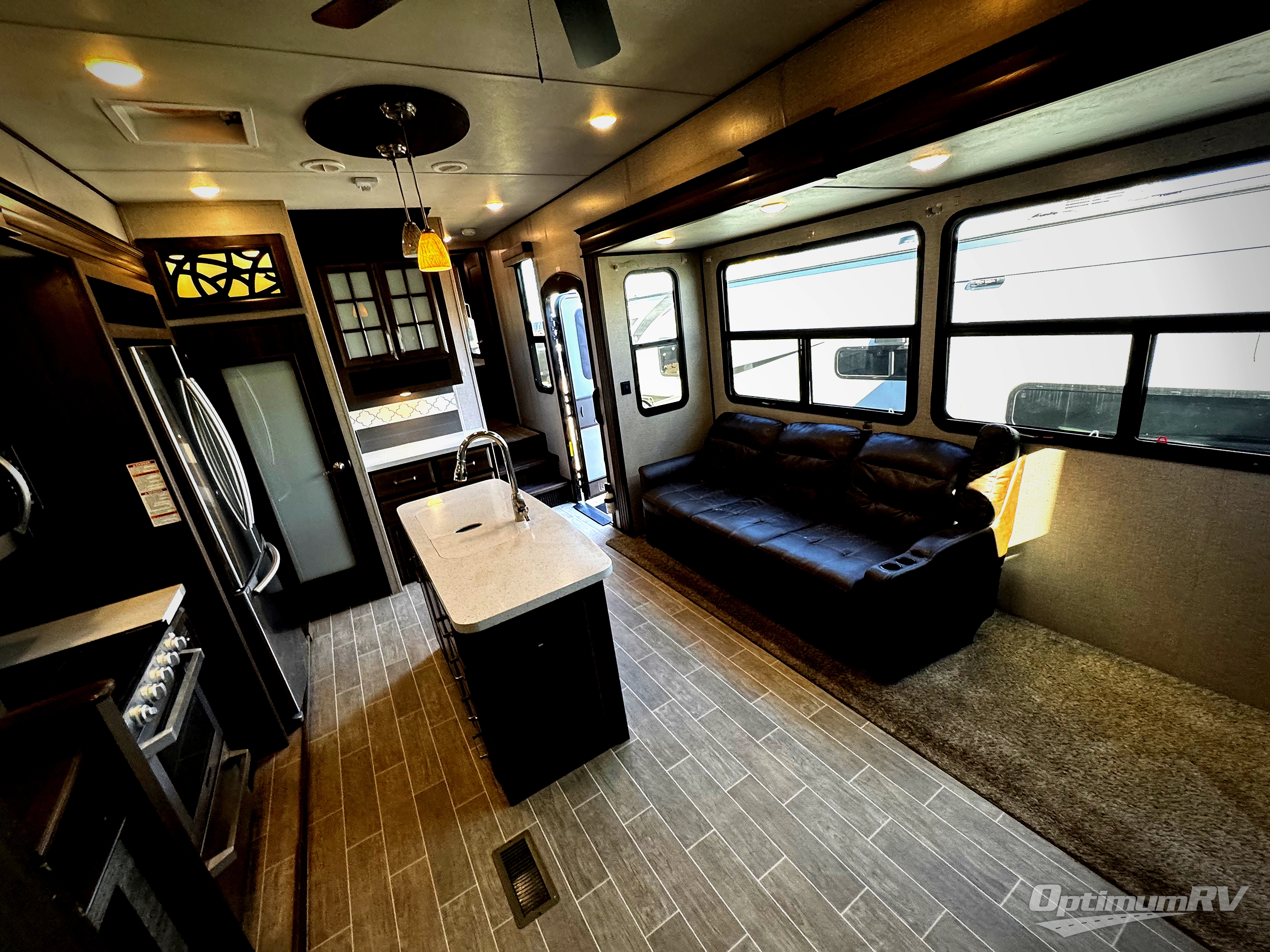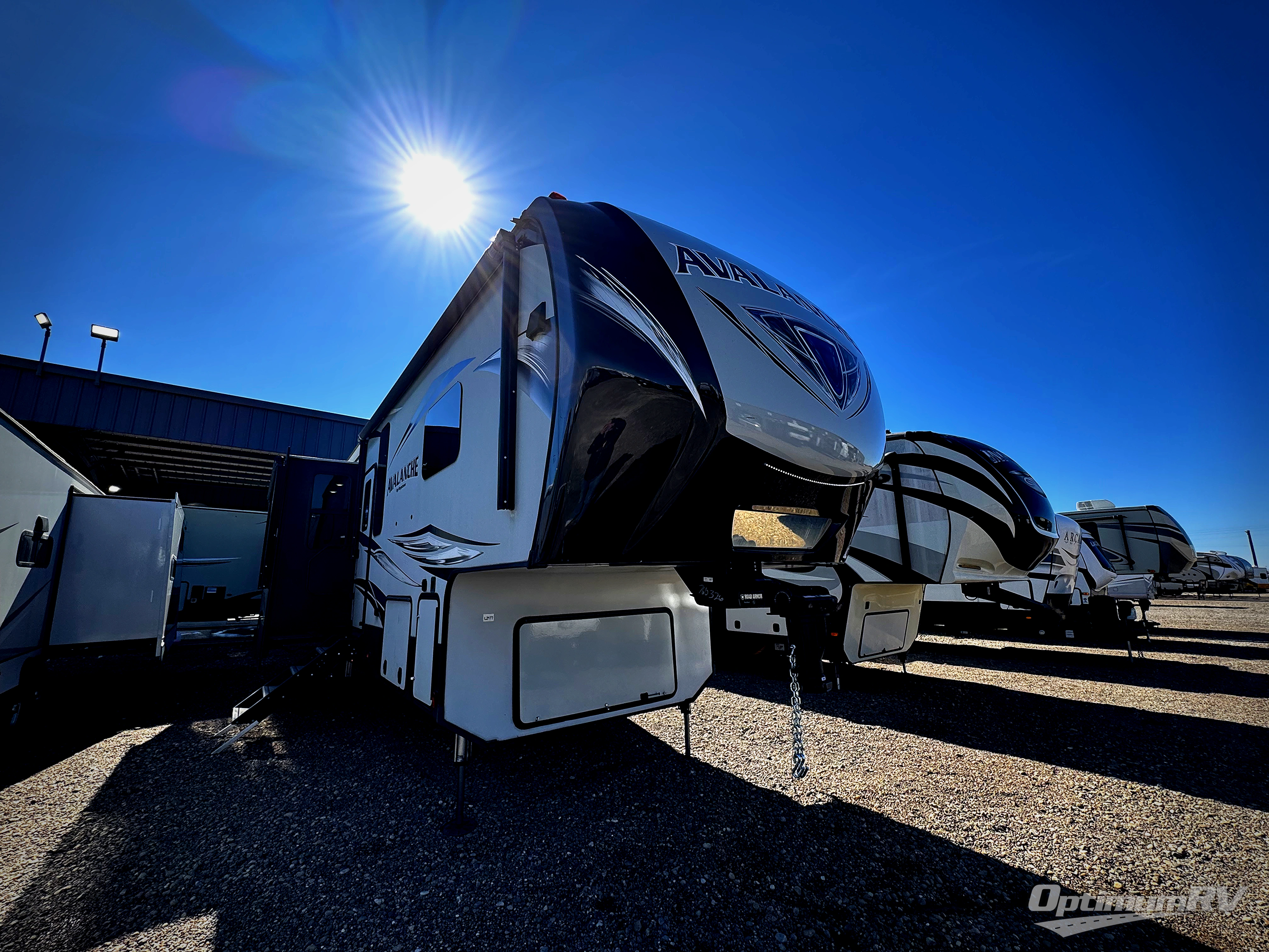 With any Keystone Avalanche fifth wheel, you will enjoy getting to your favorite destination with the exceptional turning radius from the MAX TURN high-gloss fiberglass front cap, as well as the Road Armor suspension. Once you have arrived at your destination, the One Place Command Center with its centrally located operational switches and gauges will allow you to set up your RV quickly, and the one-touch electric awning with adjustable arms will provide protection from the sun and weather while you load your clothing, dishes, and gear into all of the interior storage compartments.