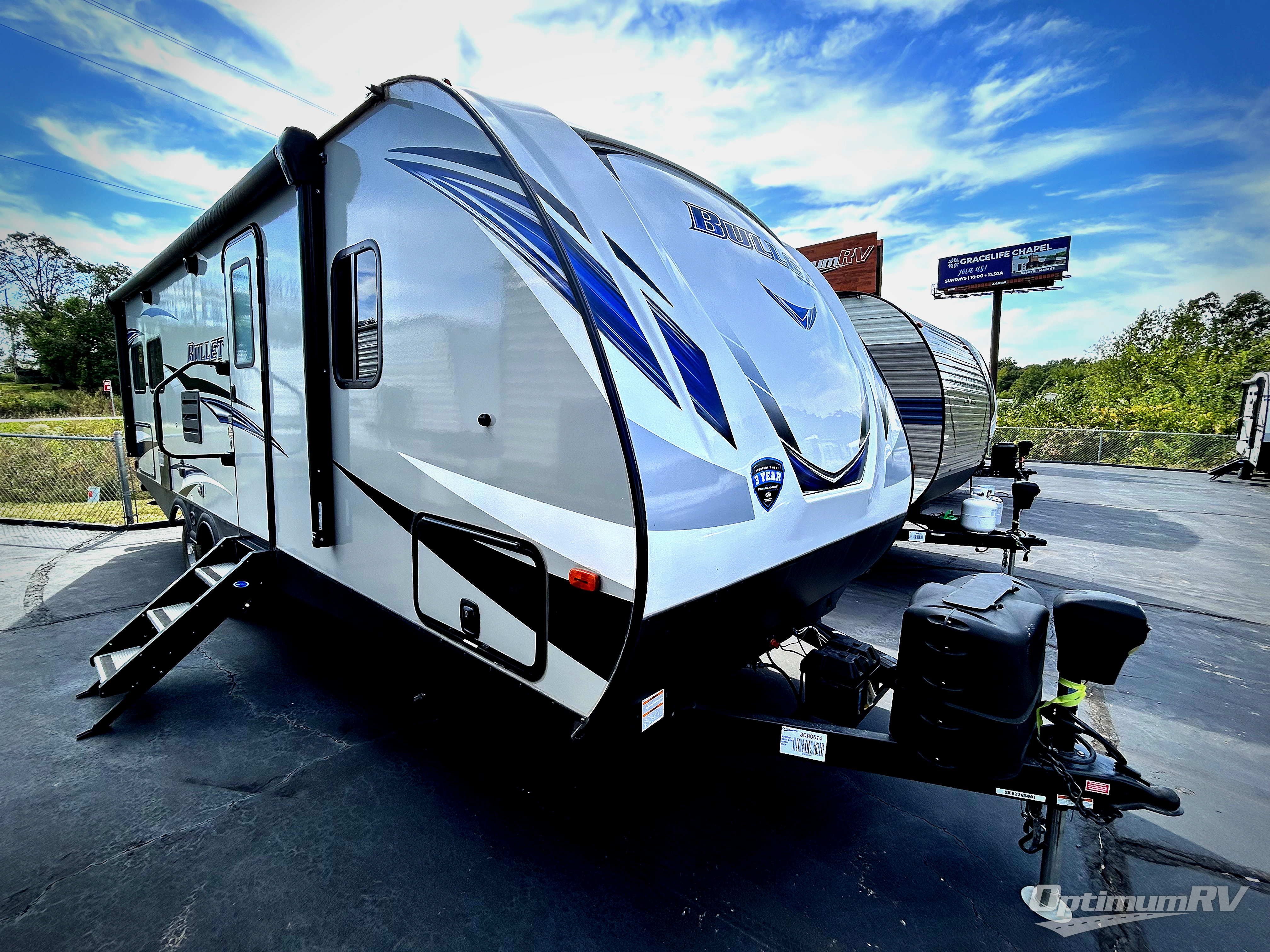 With any Bullet travel trailer by Keystone, you will appreciate the wide-stance Dexter E-Z Lube axles, the enclosed and heated underbelly, and the aggressive front profile for increased towability. Each model includes a 6 Cu. Ft. stainless steel double door refrigerator, ultra-durable Whitewater continuous-edge countertops, plus a stainless steel sink for easy clean-up. You'll enjoy hardwood entry doors into the bedroom, dual USB ports for tablet and phone, plus a laundry chute to make camping hassle-free. The Bullet features a variety of floorplans to fit your family's needs best. Choose your favorite layout today!