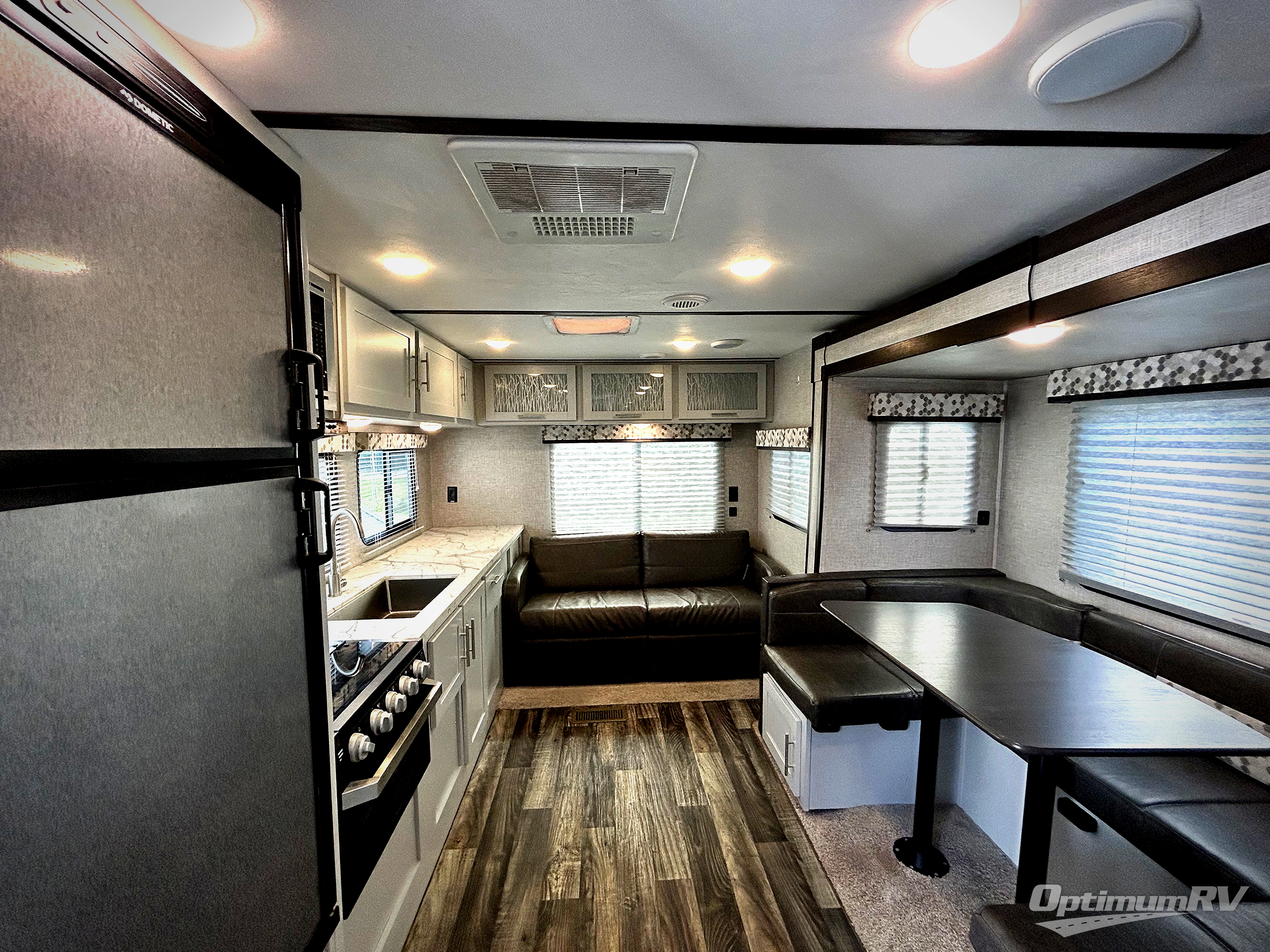 Are you ready to experience the camping trip of a lifetime? If so, load up your family and set out in this Bullet travel trailer. Meal prep has never been easier than with the two kitchens that have been included in this model. With both an indoor and outdoor kitchen, you can do it all. Inside of this unit you can visit with your family and friends on the U-shaped dinette or the 68" sofa which can both be transformed into extra sleeping space each night, and the private master suite will deliver the relaxation you deserve as you drift off to sleep each evening.