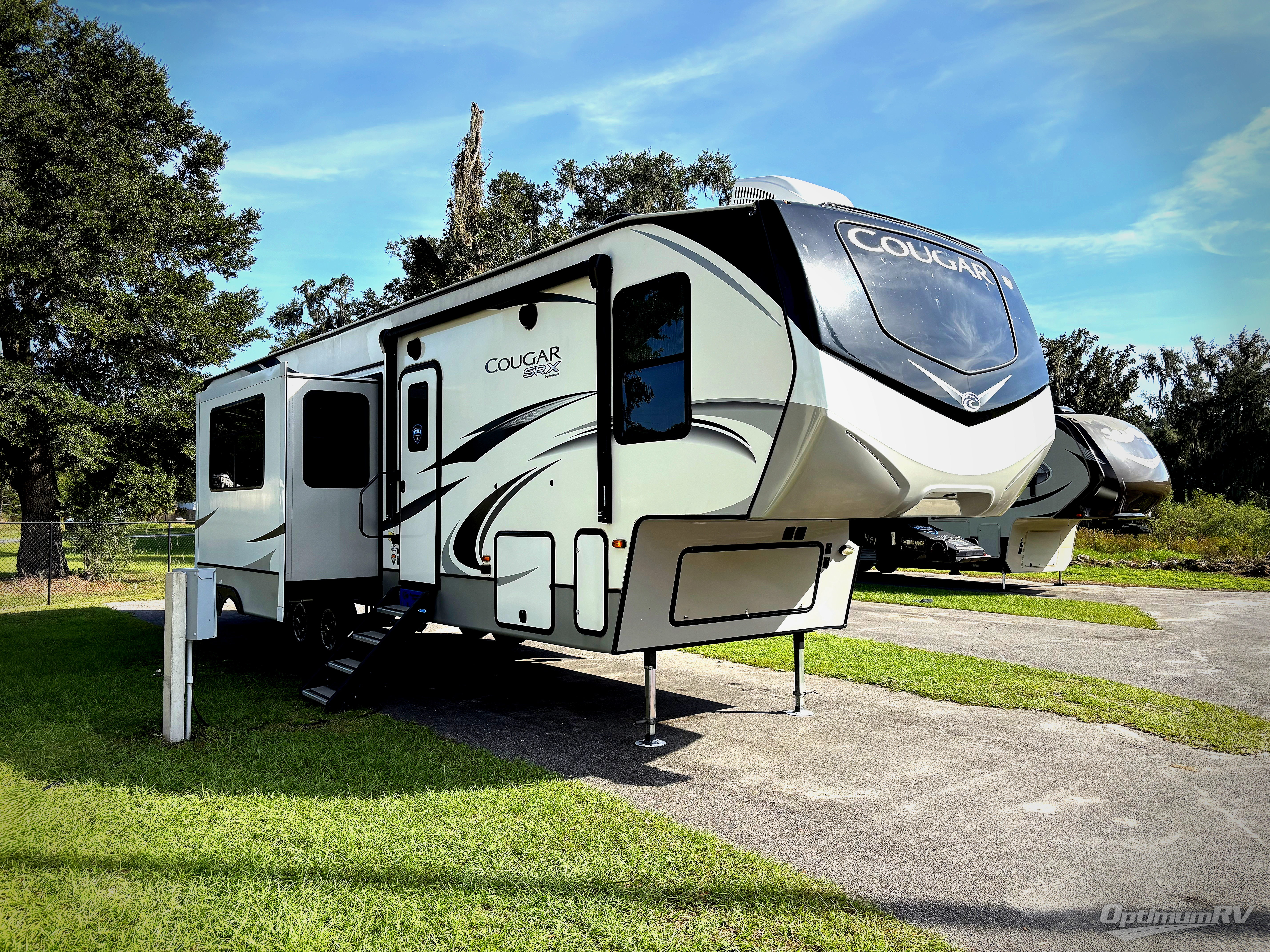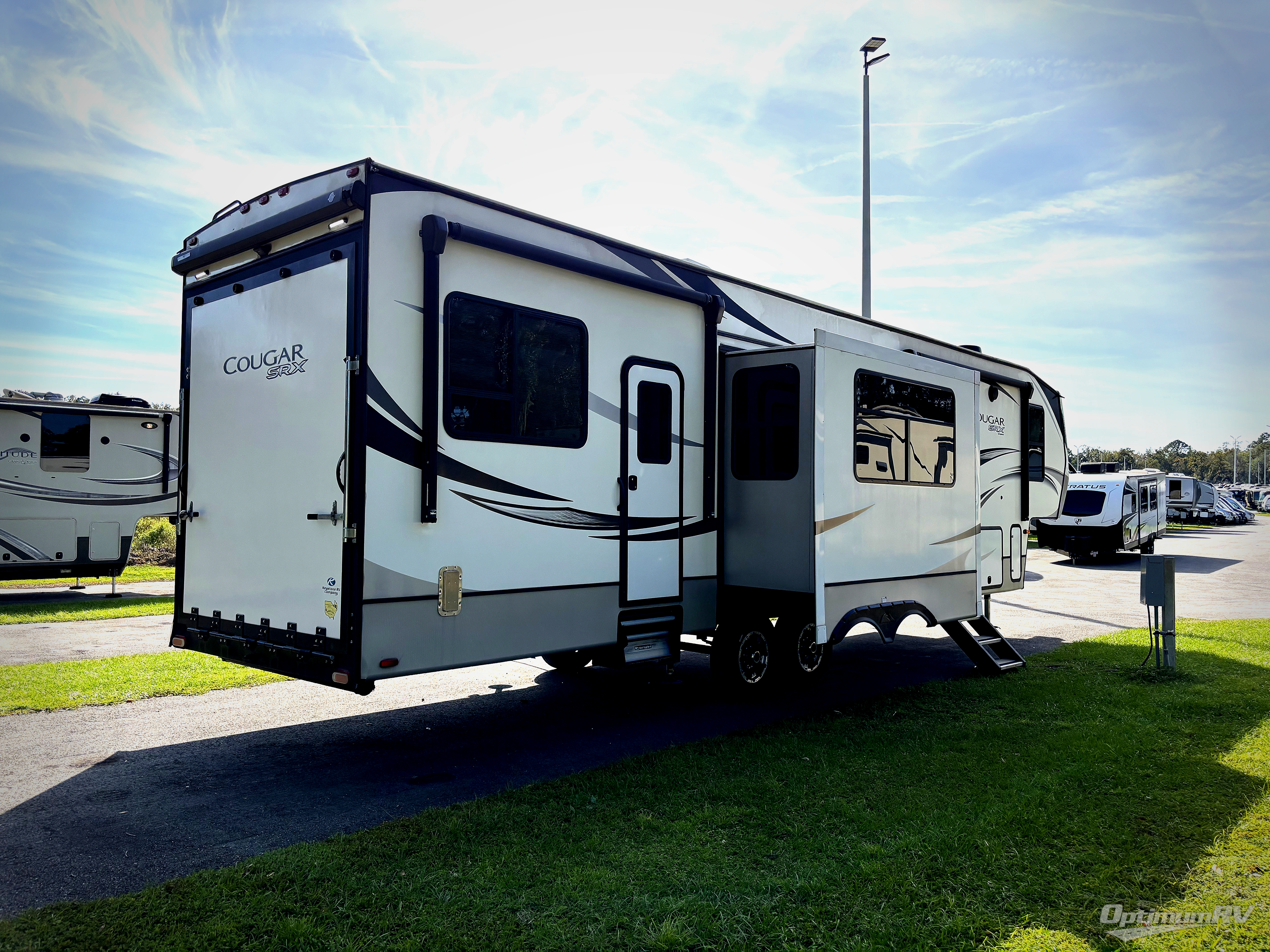Stay away for as long as you like with this Cougar toy hauler! Not only will you be able to bring along your large camping gear in the unobstructed pass-through storage compartment, but you will also be able to bring along your toys because of the 10' separate garage in the back. And the ramp door turns into a patio deck with magnetic screen and rear awning which makes it the perfect place to host a get-together for you and your friends. There is a handy side man door, dual sofas, a washer/dryer prepped space, and a half bathroom adjacent to the garage. The combined living and kitchen area offers everything you will need to be comfortable from the counter peninsula, all the appliances, and the sofa with recliners and a table, plus you will have your own full bathroom and master suite.