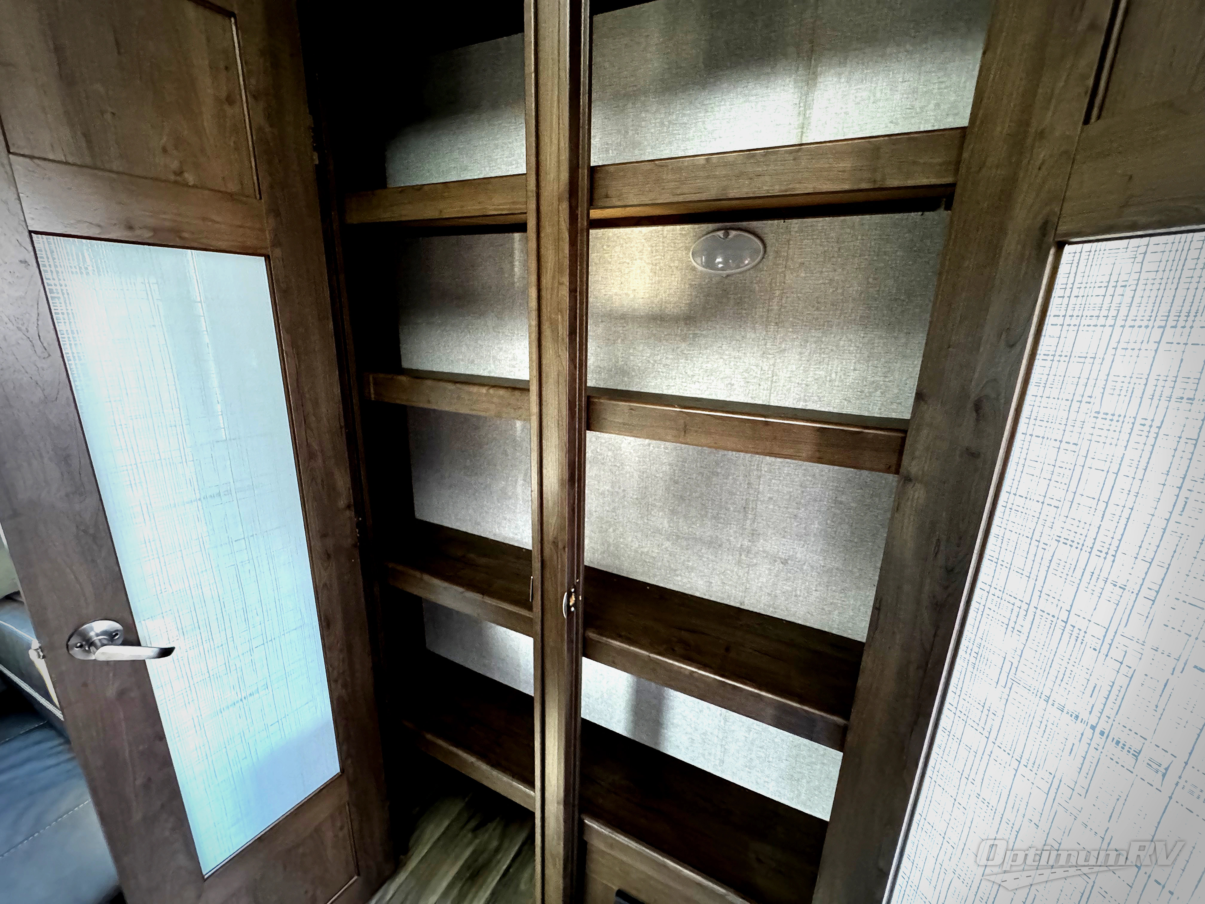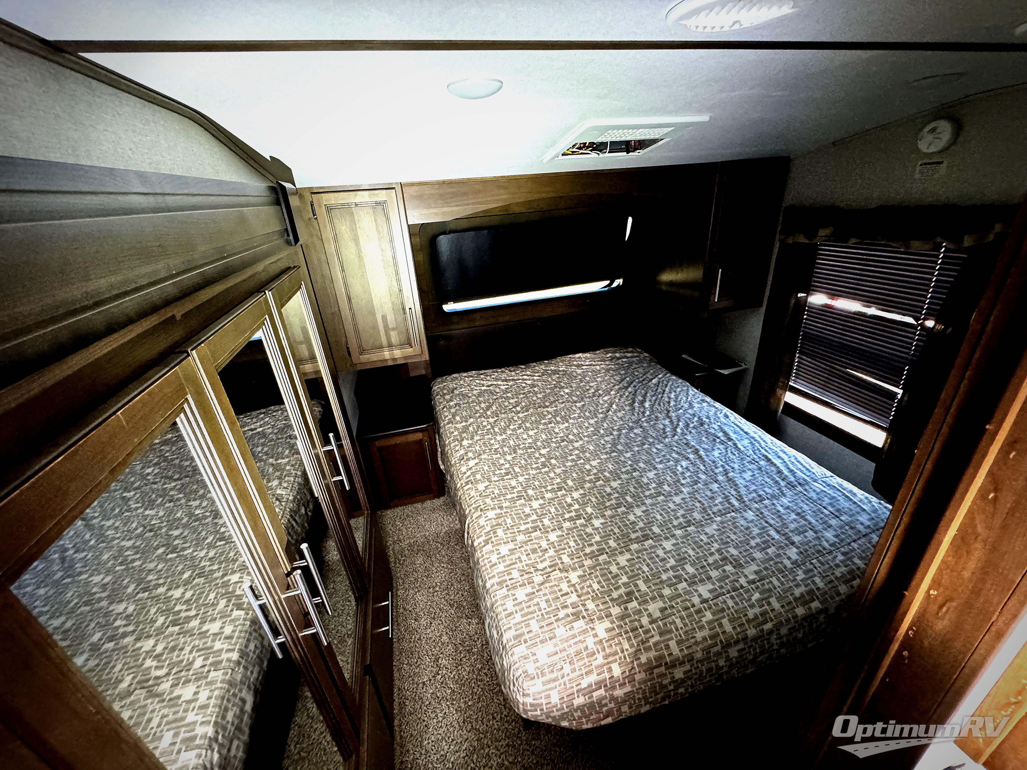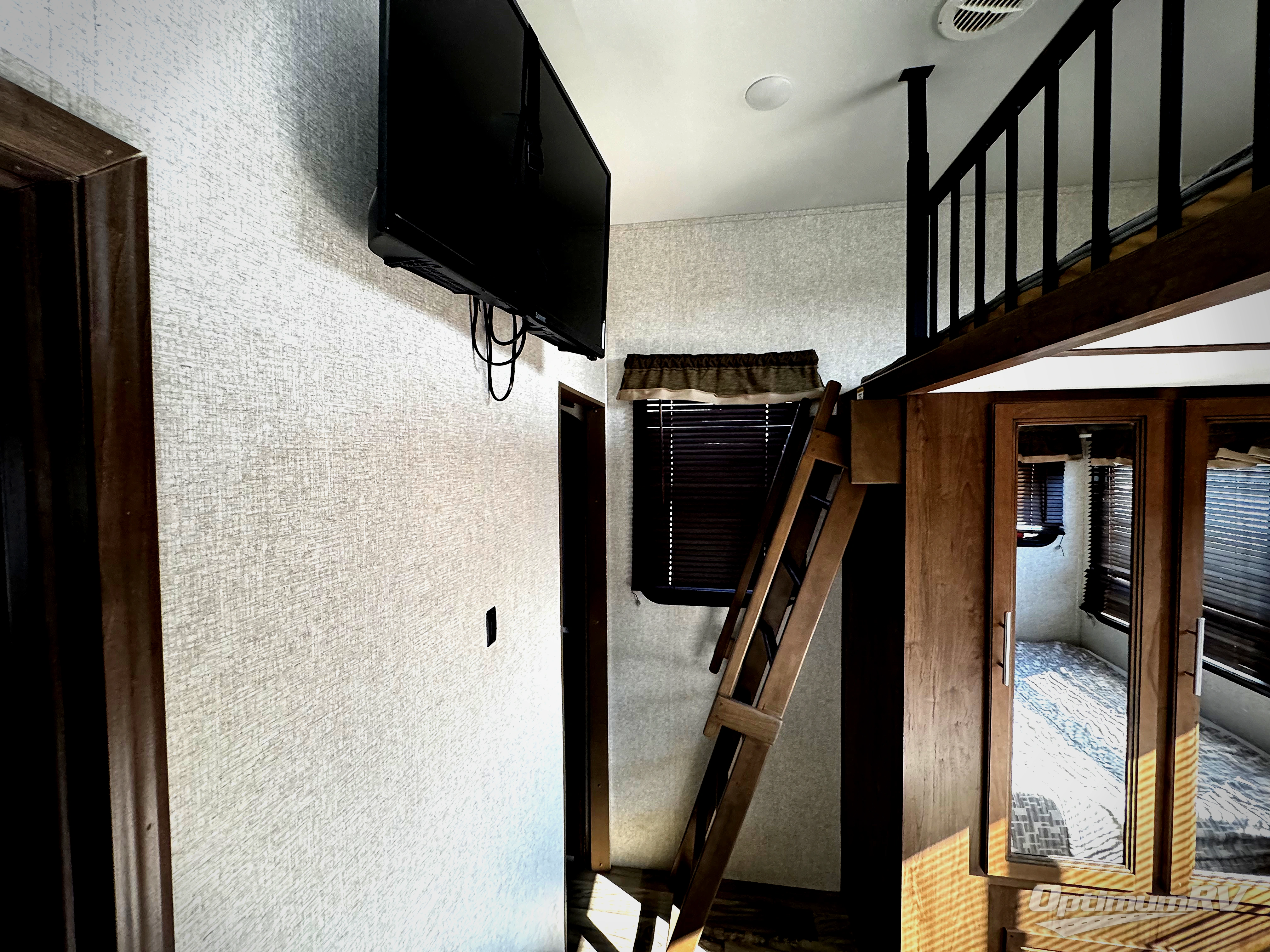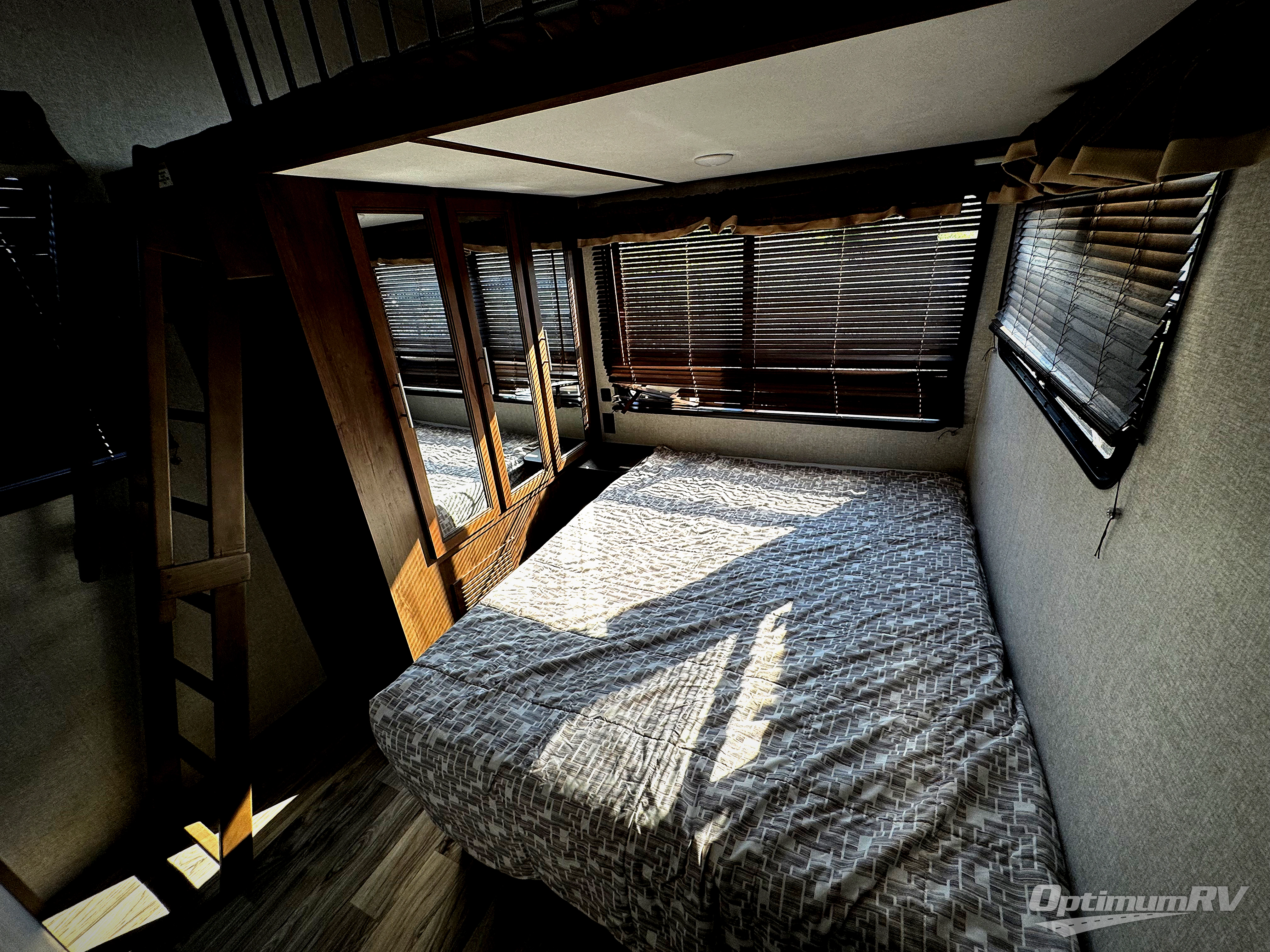 You won't believe how functional and fabulous this Cougar fifth wheel is! Not only will you and your spouse be able to sleep in luxury with your own master suite, but your guests or kids will also have a fantastic space to call their own with the rear bedroom. This space has a full-size bed on the bottom and a full-size loft with ladder above. It also has its own half bathroom with the second exterior entry door. The full-size pantry in the kitchen will give you a place to hold snacks for everyone, and the 68" tri-fold sleeper sofa will be great for relaxing or sleeping. And there is so much more to enjoy!