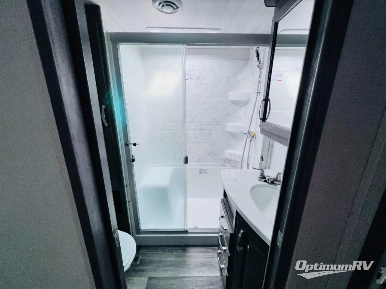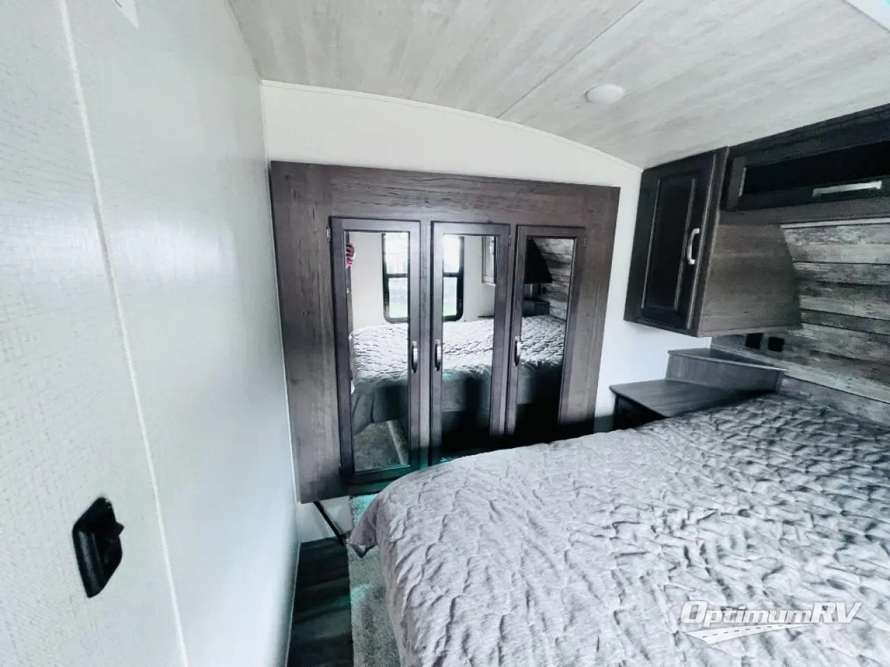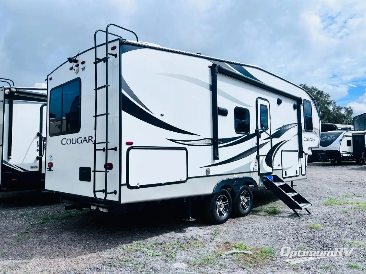 Grab your gear, your family, and your sense of adventure and head out with this Cougar Half-Ton fifth wheel! You'll have plenty of space to bring along your favorite gear with the rear storage compartment, the hidden storage space behind the entertainment center, the linen closet, the wardrobe slide, and the exterior pass-through storage. Plus, you will also find a private bedroom for a quick nap or a night of sleep, and the 68" tri-fold sleeper sofa will be great to have when you have any afternoon visitors turn into overnight guests.
