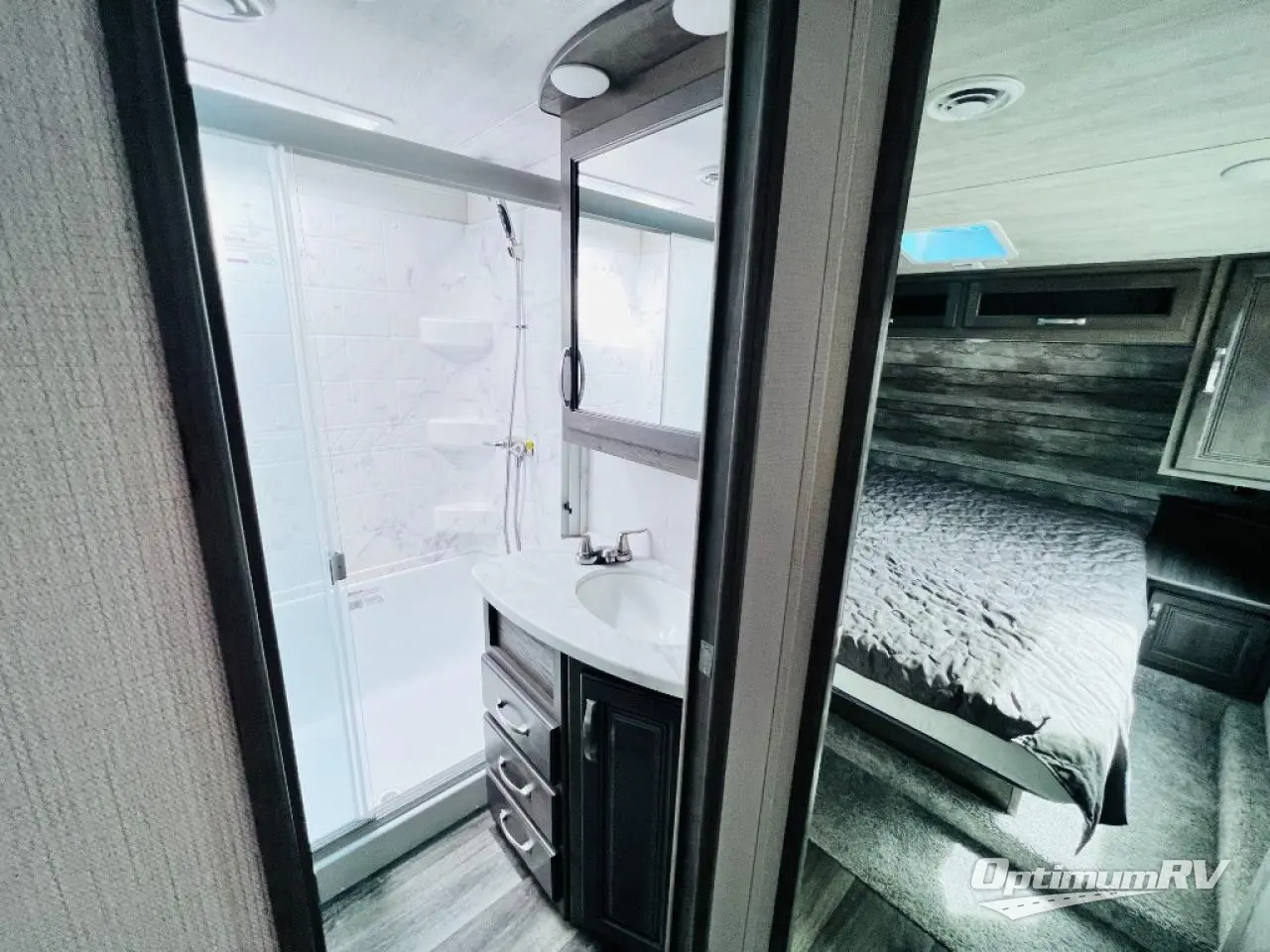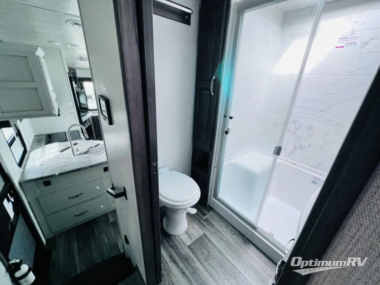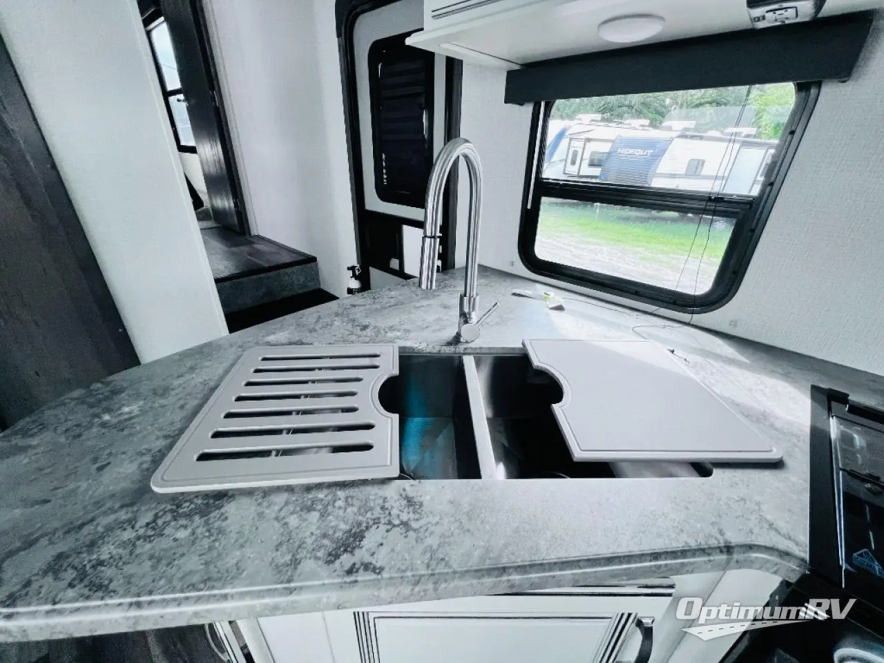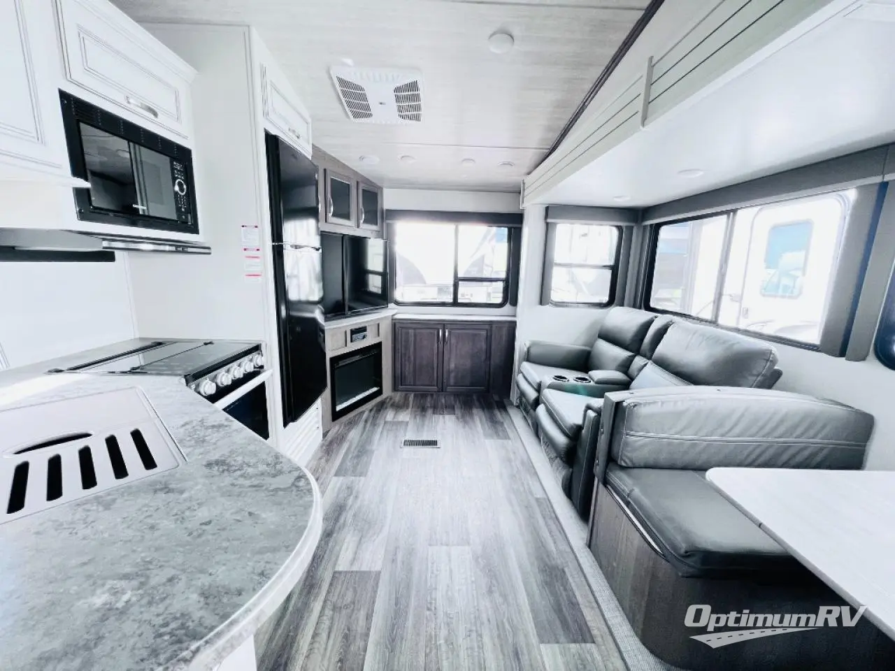 Grab your gear, your family, and your sense of adventure and head out with this Cougar Half-Ton fifth wheel! You'll have plenty of space to bring along your favorite gear with the rear storage compartment, the hidden storage space behind the entertainment center, the linen closet, the wardrobe slide, and the exterior pass-through storage. Plus, you will also find a private bedroom for a quick nap or a night of sleep, and the 68" tri-fold sleeper sofa will be great to have when you have any afternoon visitors turn into overnight guests.