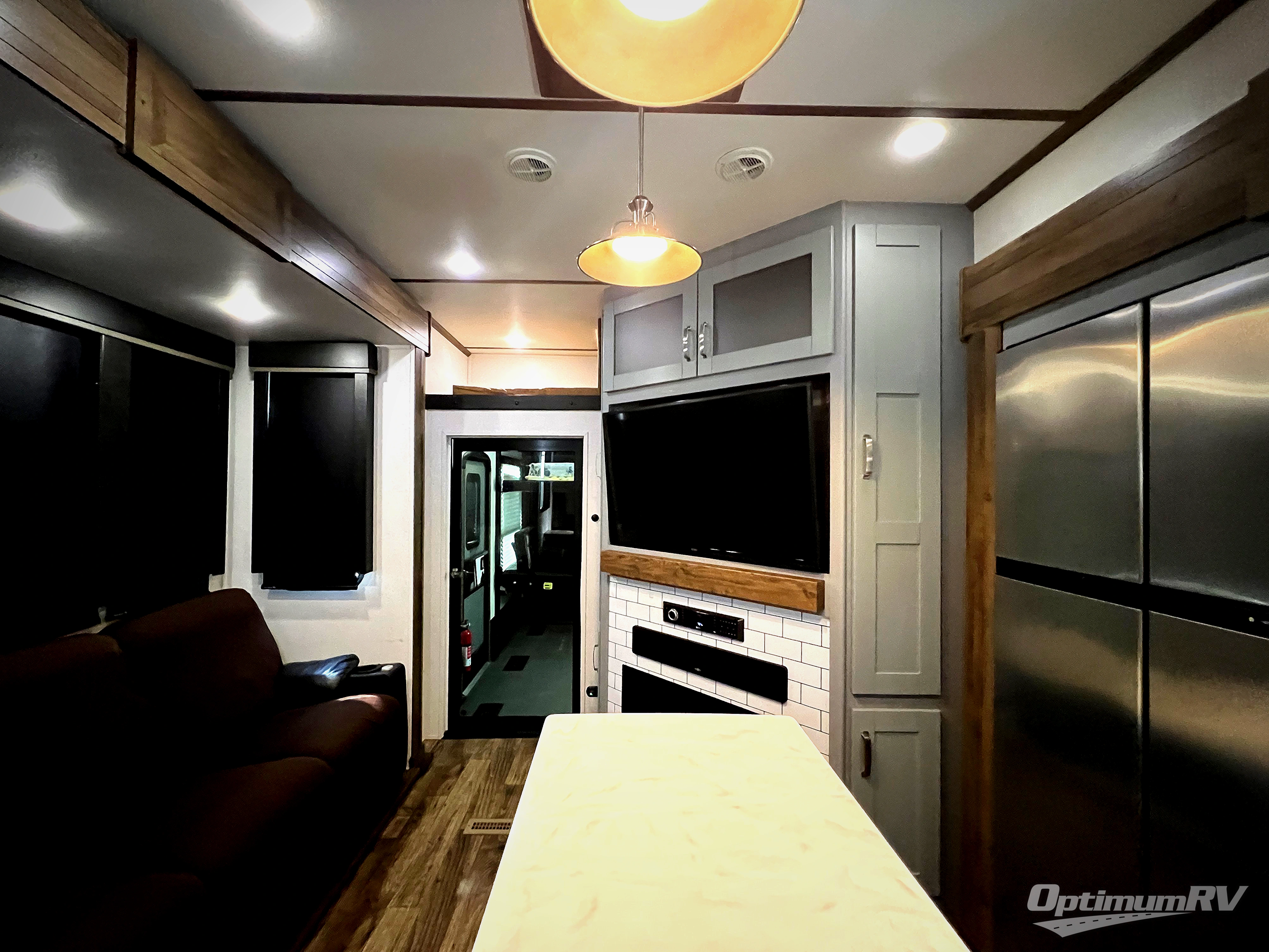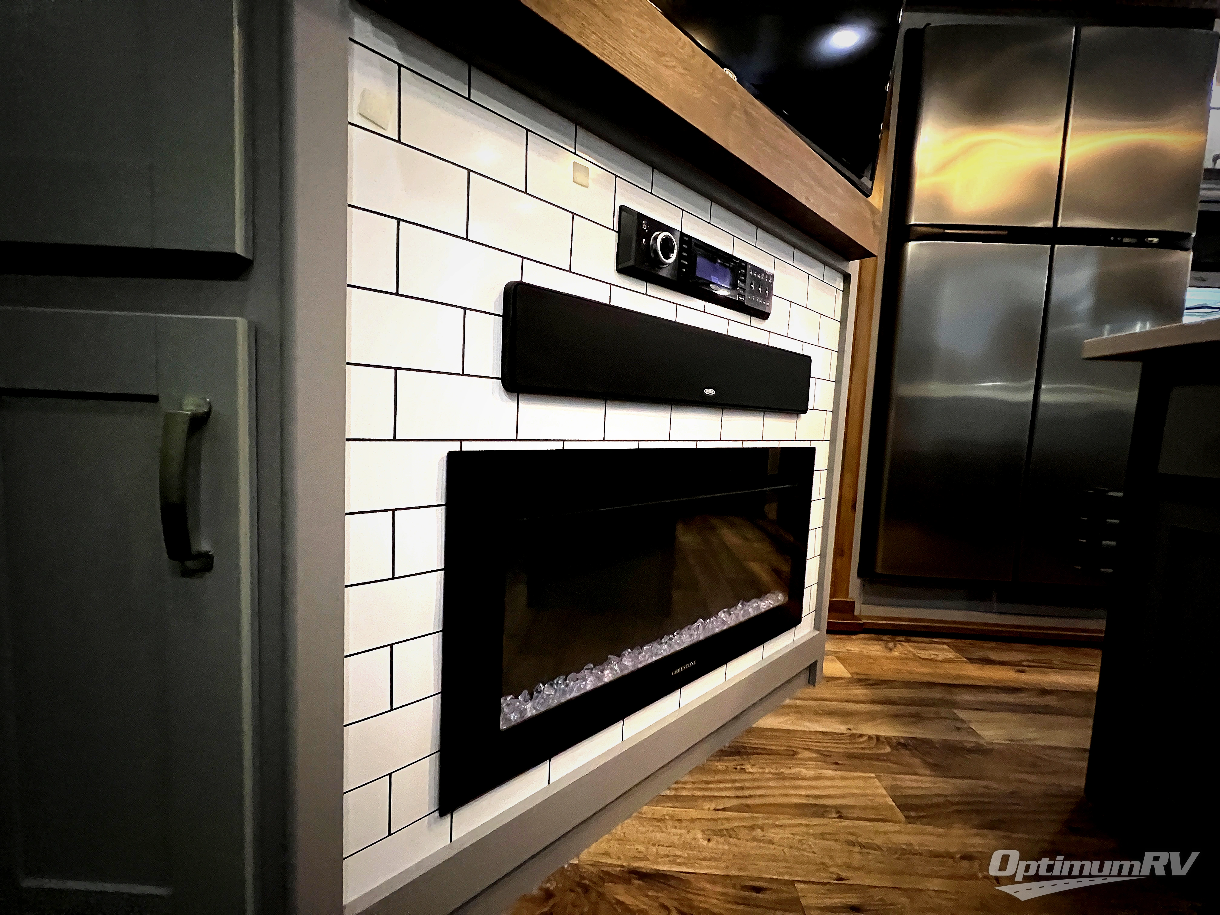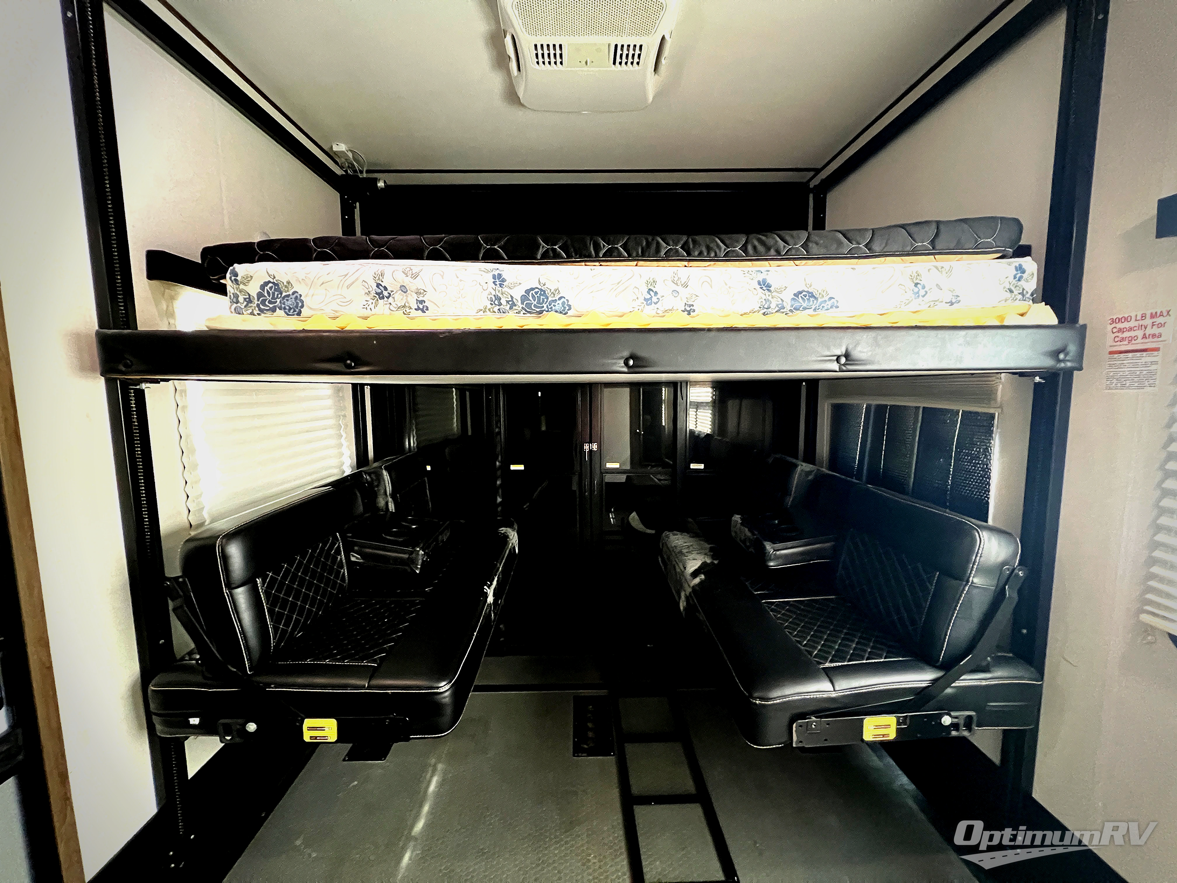 You can't go wrong camping in this toy hauler! There won't be any excuse not to stay clean with the bath and a half. Eating your meals will be comfortable and fun at the center table with four swing out stools to sit on and the slide out sofa is big enough to seat four people or for one to spread out and take a quick afternoon nap. You will also enjoy all of the entertainment inside with the two LED TV's and the fireplace. This model features a front master suite with a slide out queen bed, a master closet, and a space prepped to add a washer and dryer if you choose.