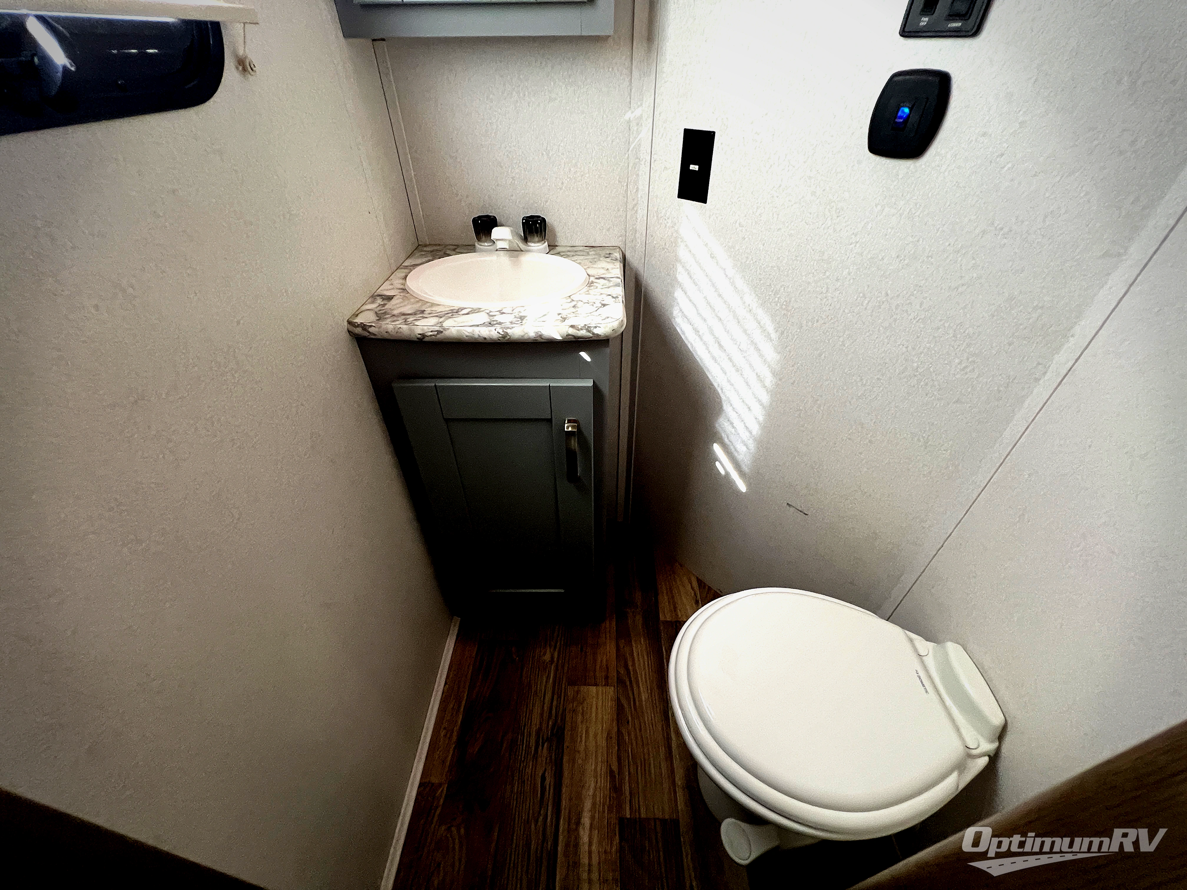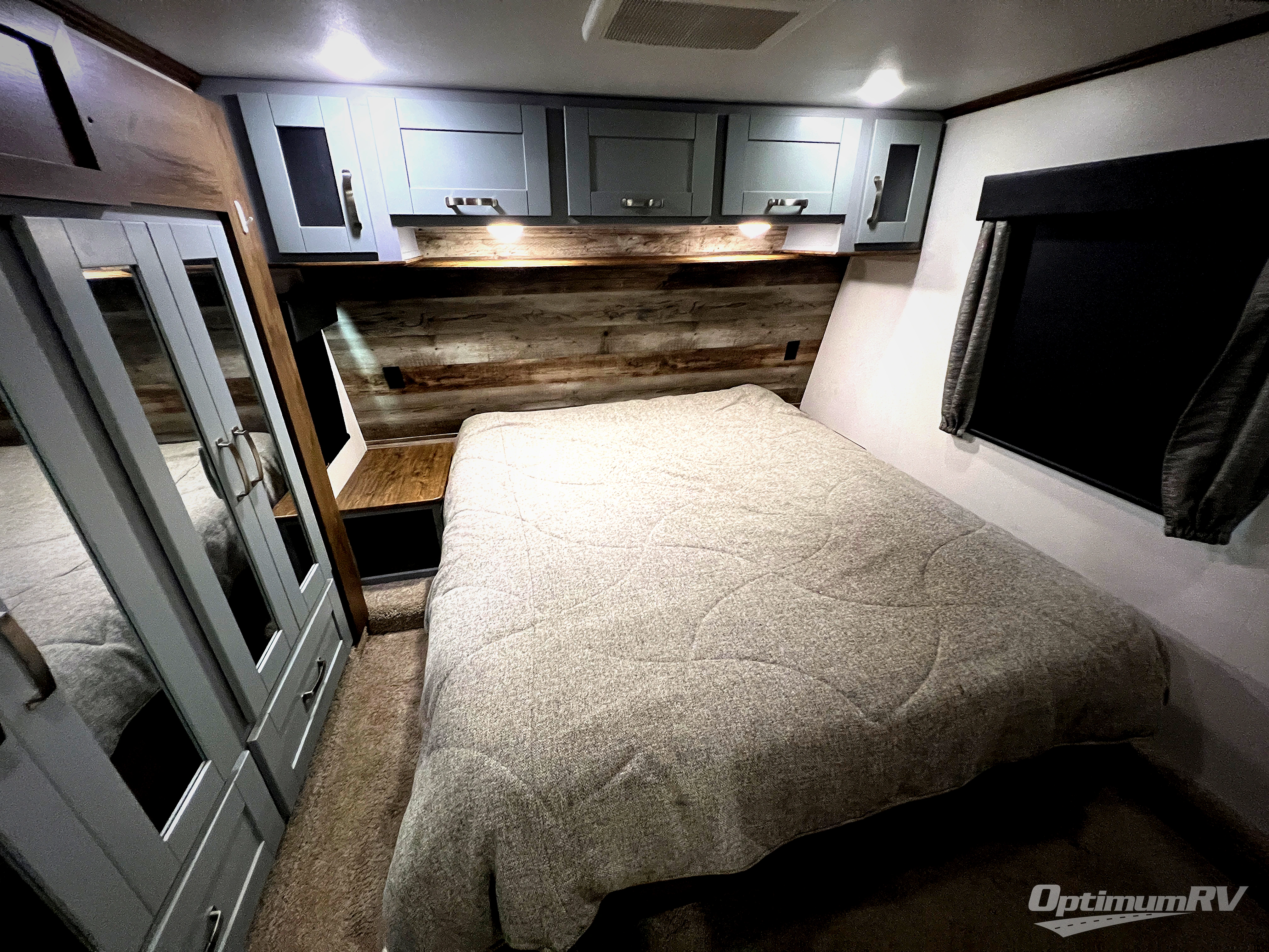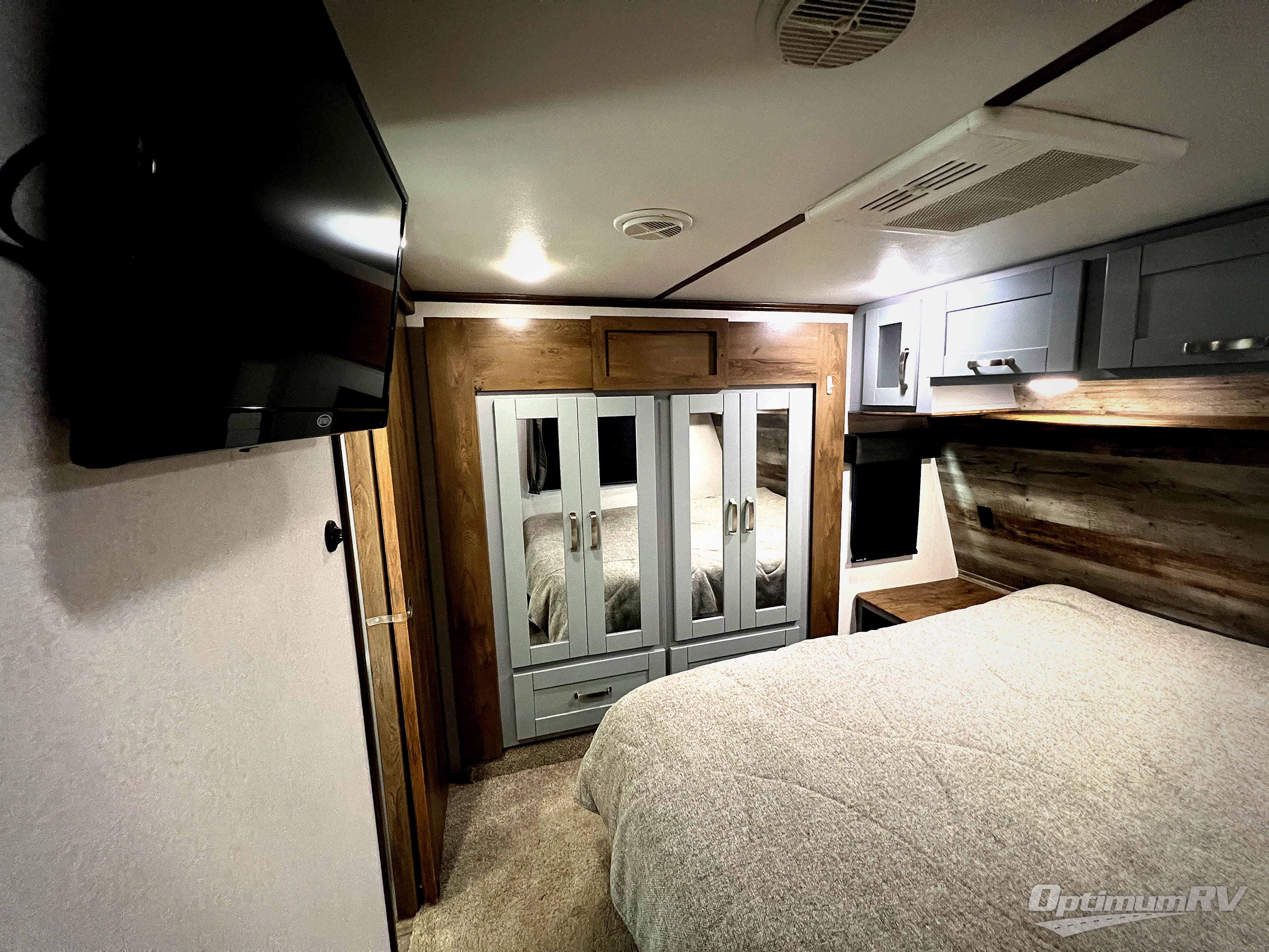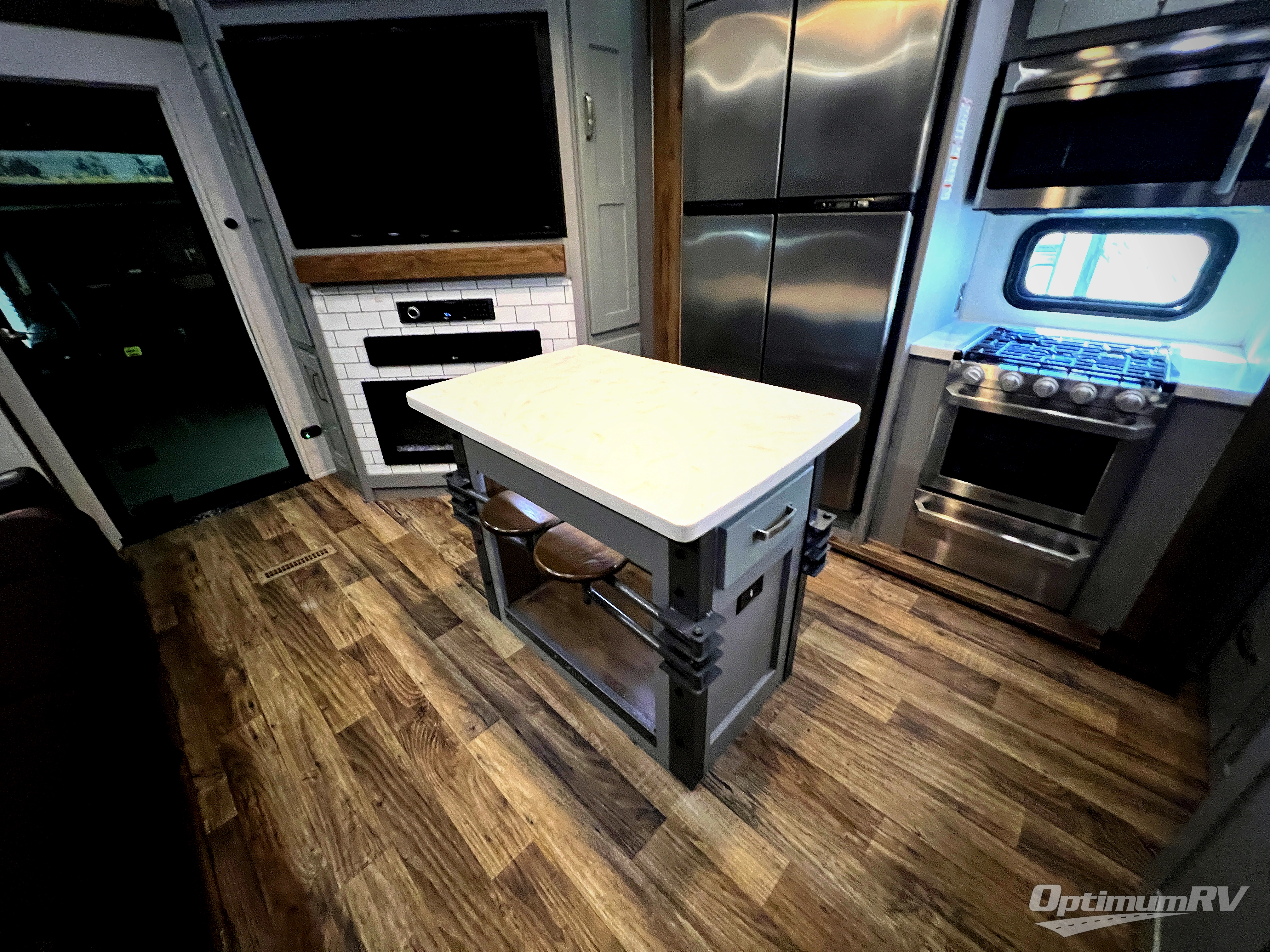 You can't go wrong camping in this toy hauler! There won't be any excuse not to stay clean with the bath and a half. Eating your meals will be comfortable and fun at the center table with four swing out stools to sit on and the slide out sofa is big enough to seat four people or for one to spread out and take a quick afternoon nap. You will also enjoy all of the entertainment inside with the two LED TV's and the fireplace. This model features a front master suite with a slide out queen bed, a master closet, and a space prepped to add a washer and dryer if you choose.