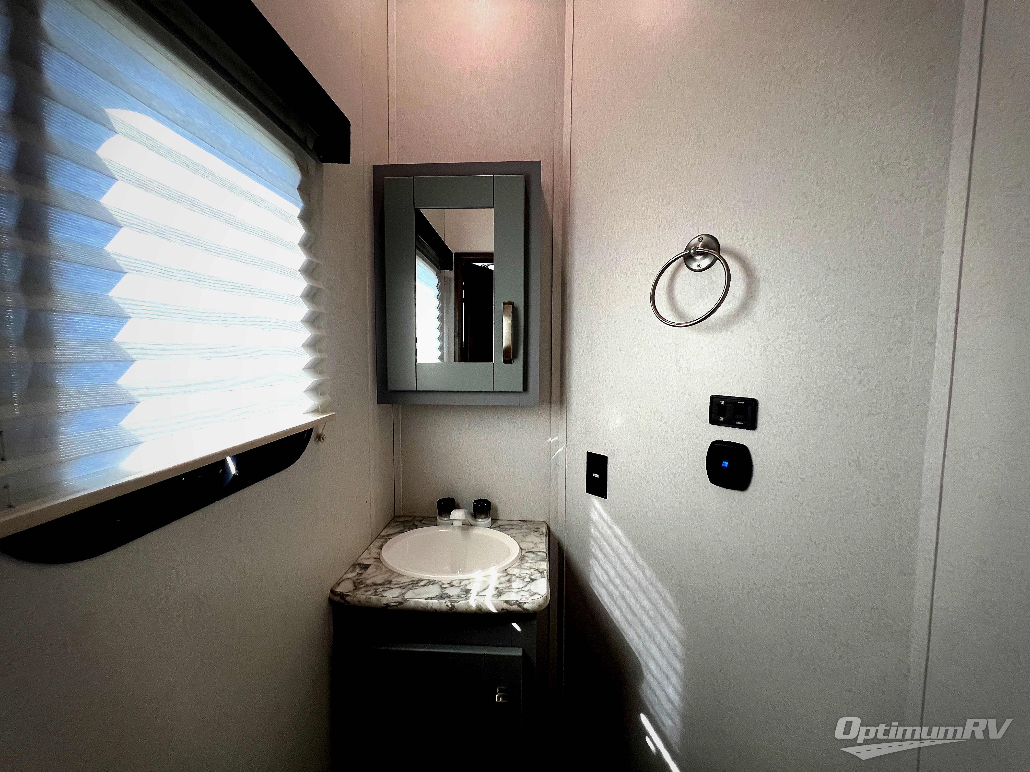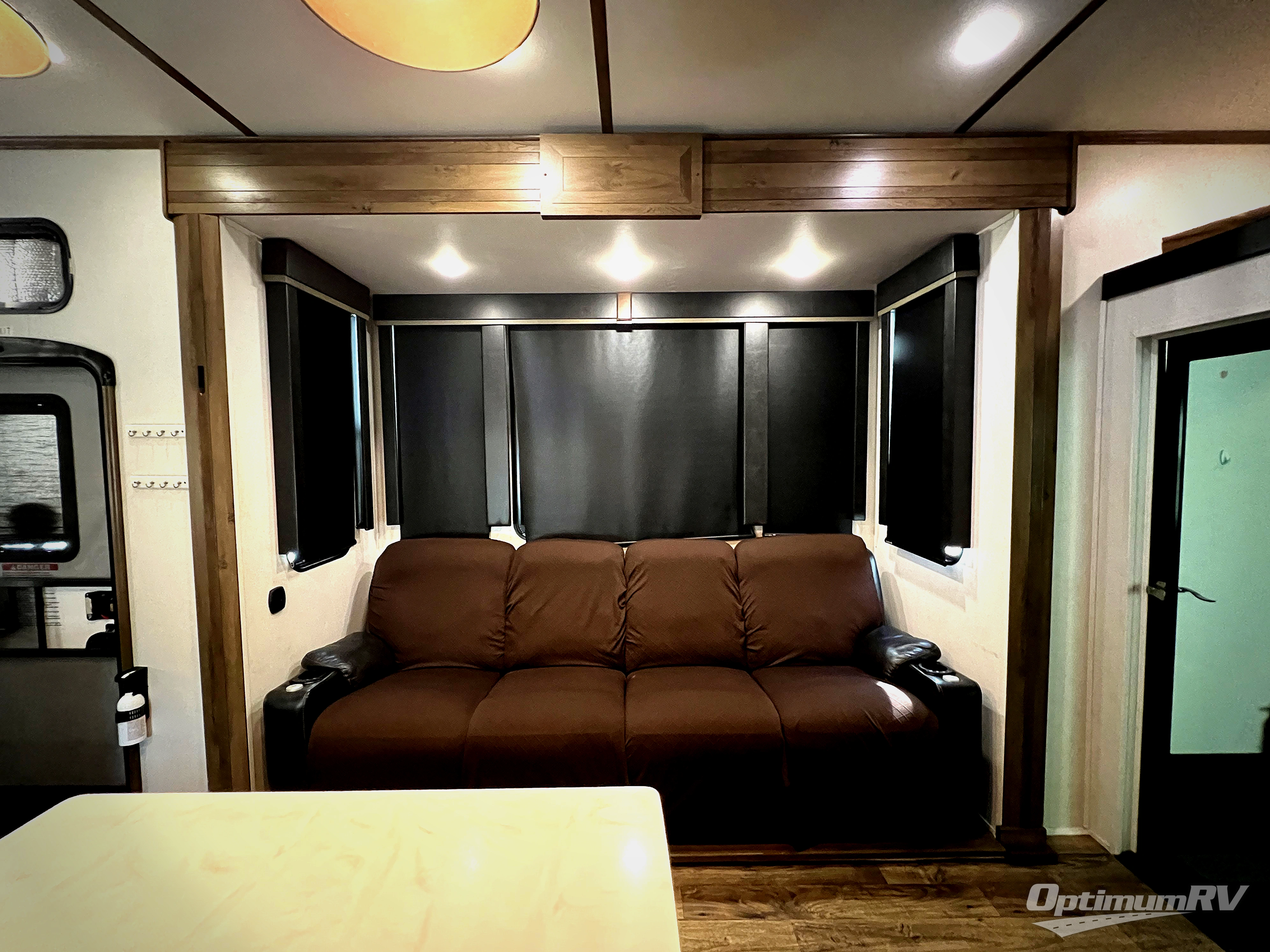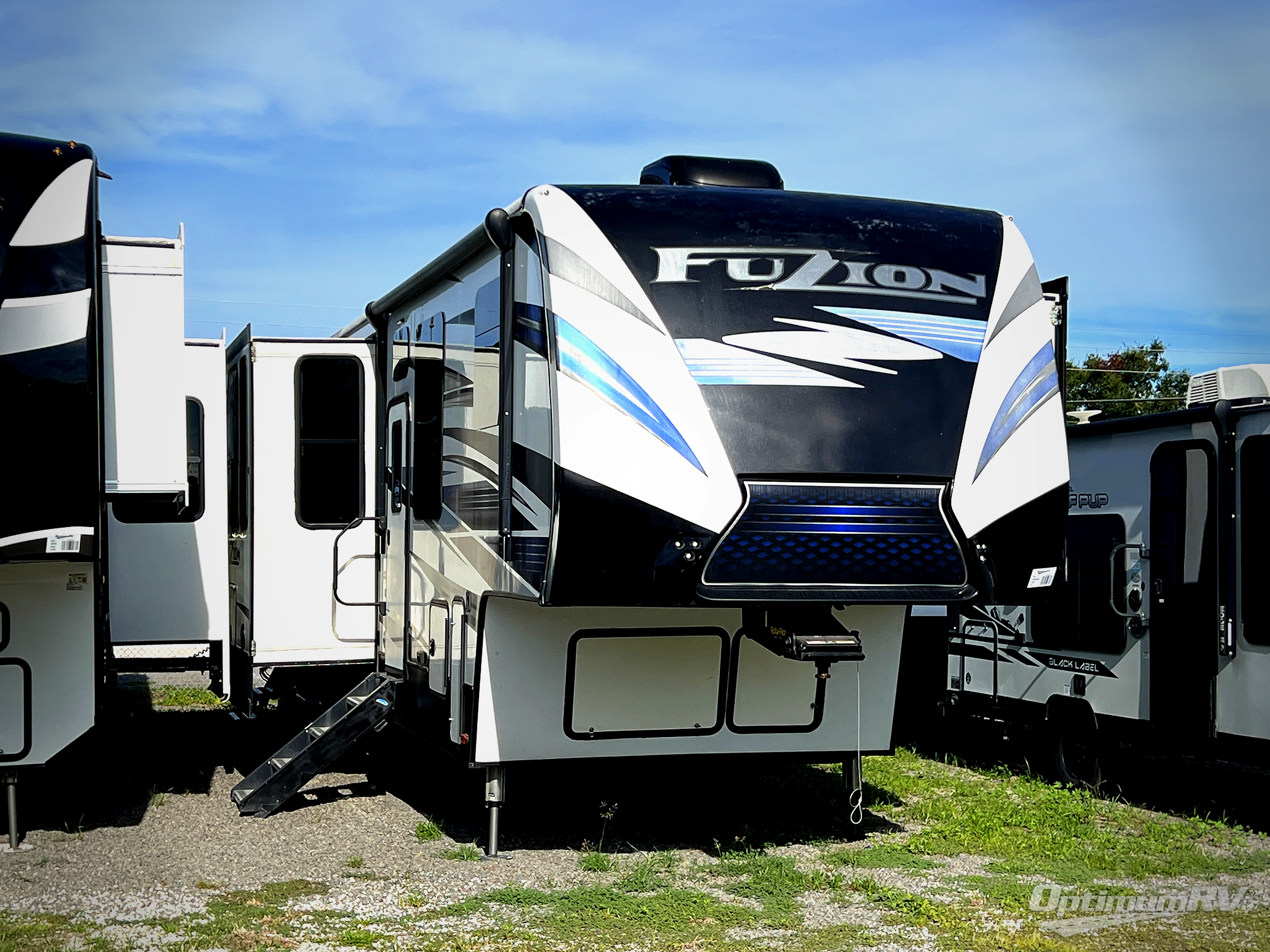 Take life by the horns with any one of these Fuzion fifth wheel toy haulers by Keystone! The Tuf-Lok A/C duct joiners feature a crush resistant design that securely joins the ductwork and the A/C units to help reduce any chilled-air leaks, boosting cooling efficiency and comfort. There are also in-floor heating ducts to evenly distribute the heat and color-coded wiring to simplify the electrical and entertainment troubleshooting systems. The Tru-Fit slide construction creates a more durable slide room to minimize any structural stress and resists leaking. With the Jensen entertainment package, each Jensen component is strenuously tested to endure vibration, UV exposure humidity, and temperature fluctuation so that you can have long lasting entertainment where ever the road takes you. Don't wait any longer, come choose your favorite model today!