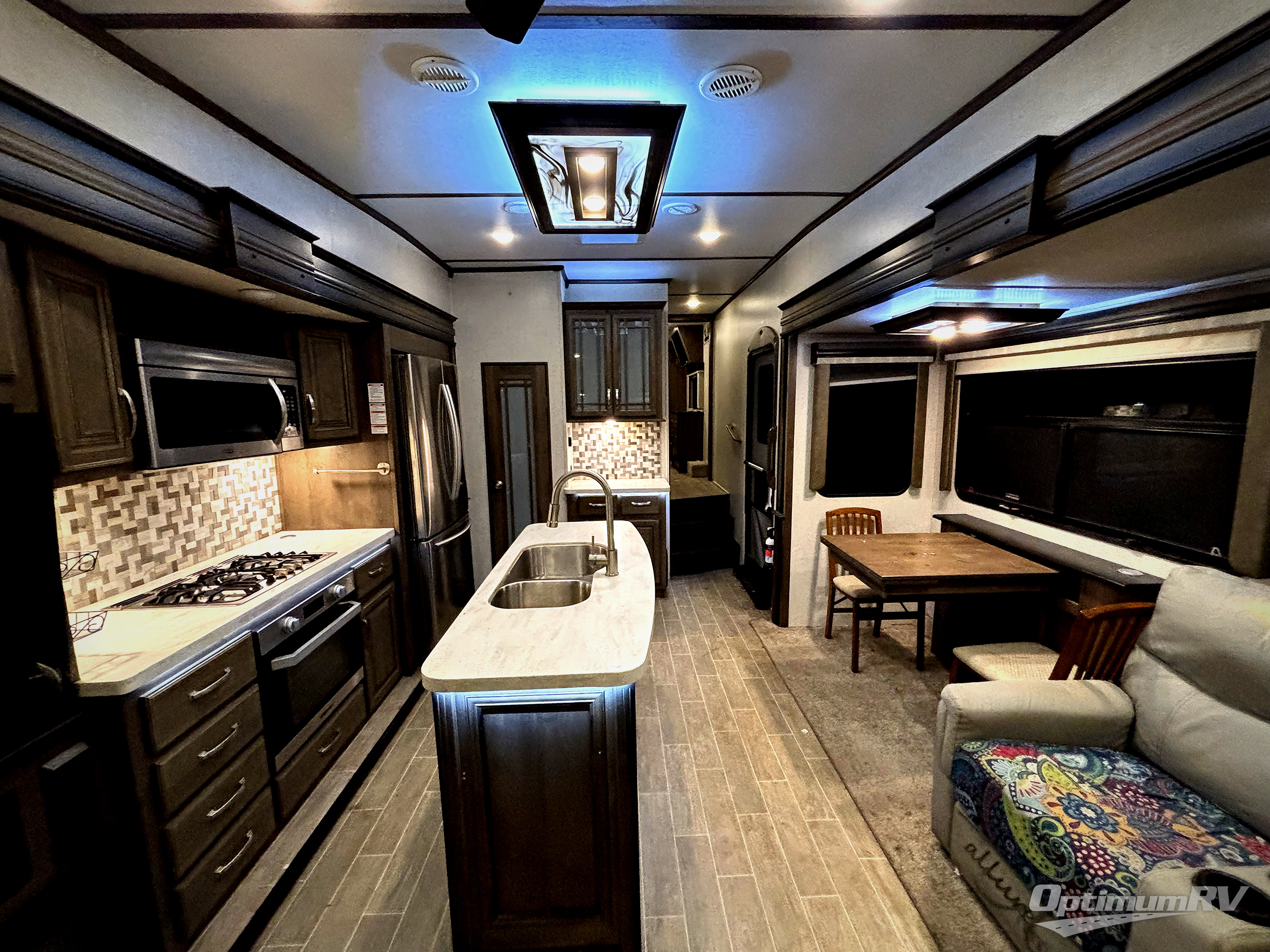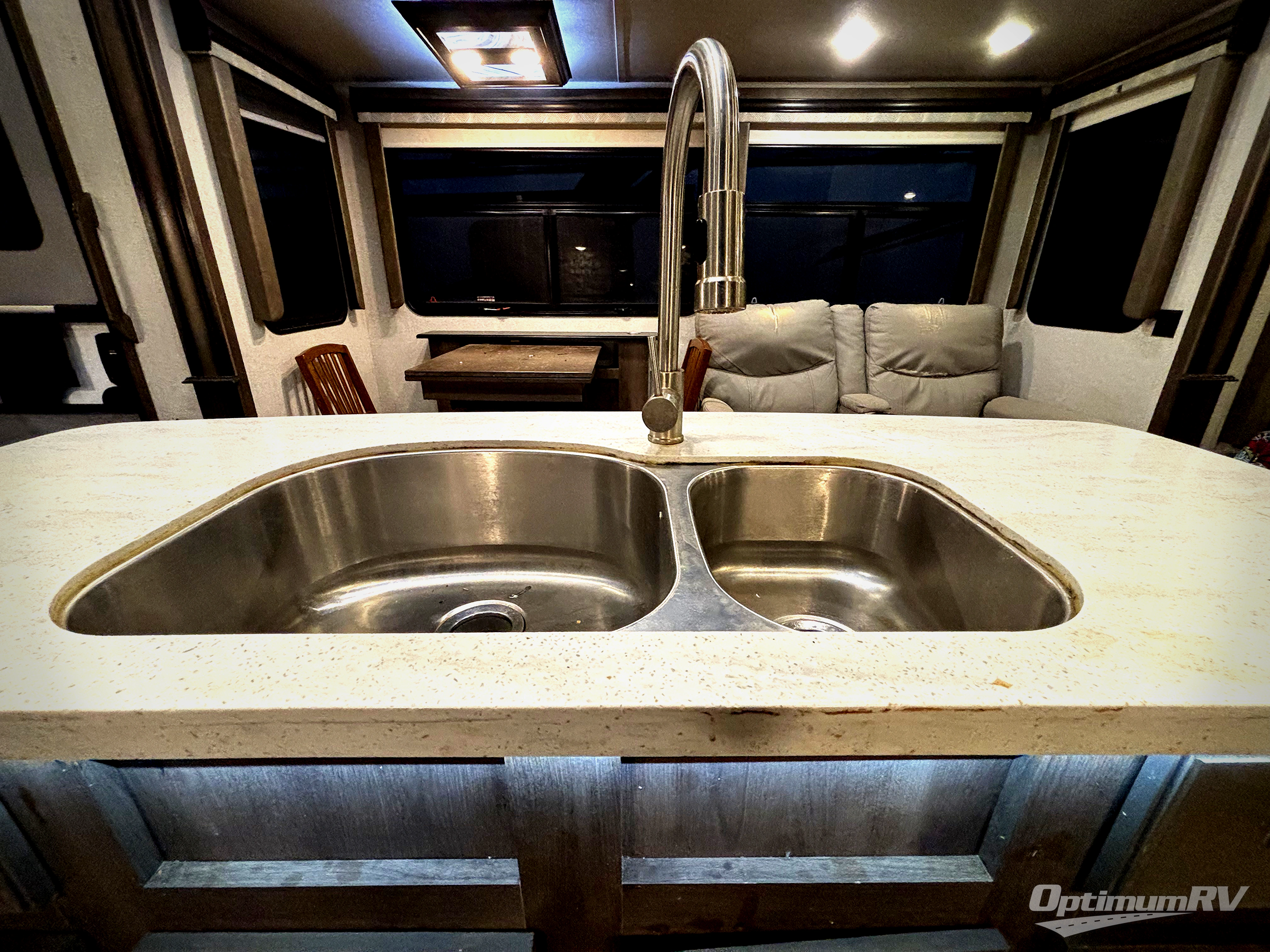 Watch your favorite show from the power theatre seating or the hide-a-bed sofa while the chef prepares a meal in the full kitchen including an island, a pantry, and a coffee station. The convection microwave will probably be a favorite appliance for many. You will also love your master bedroom with a slide out queen bed or choose an optional king, plus you will have plenty of storage for everything under the bed, within a dresser, and inside the closet up front. There is a space to add a washer/dryer option and the barn door into this room offers style and saves space. You may like to relax outside with protection from two awnings, and the 2" towing hitch might come in handy as well.