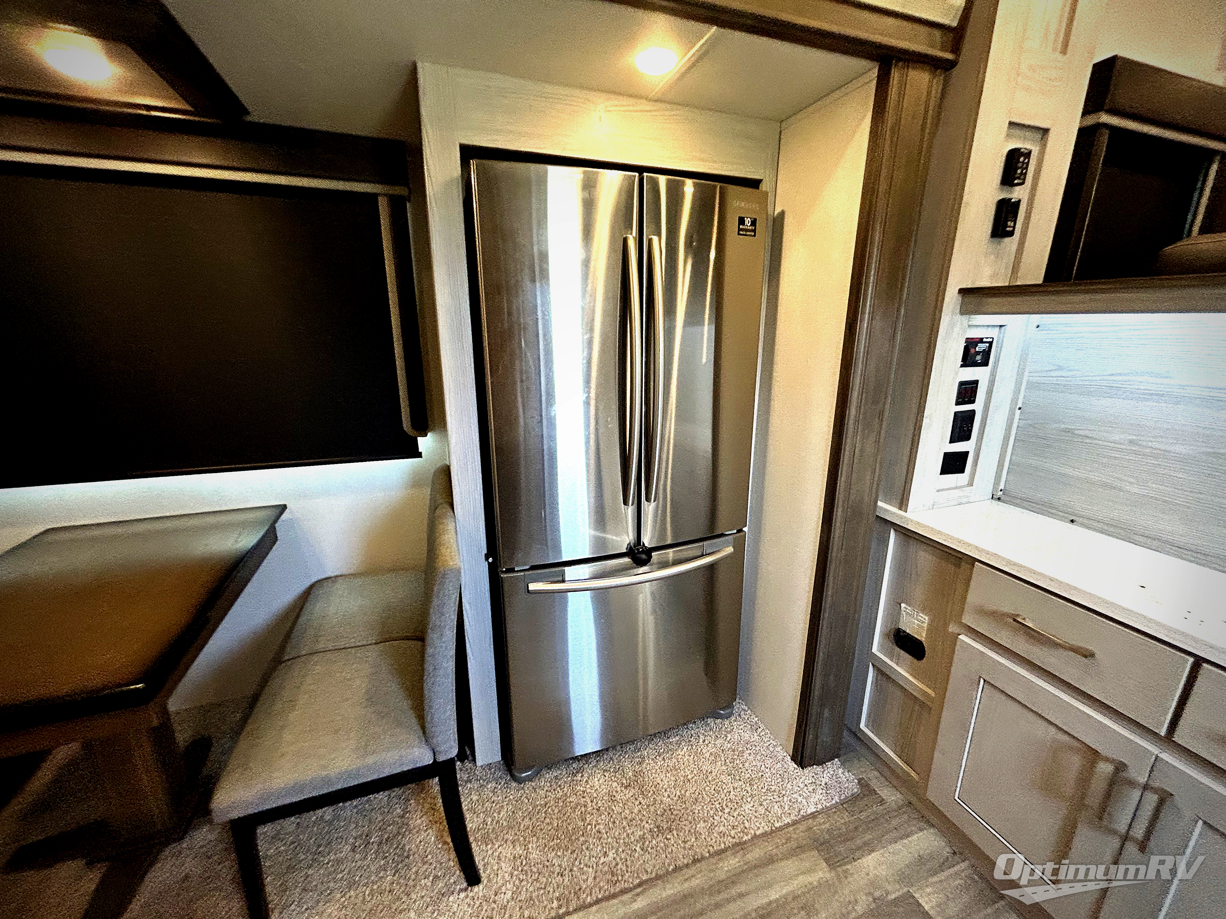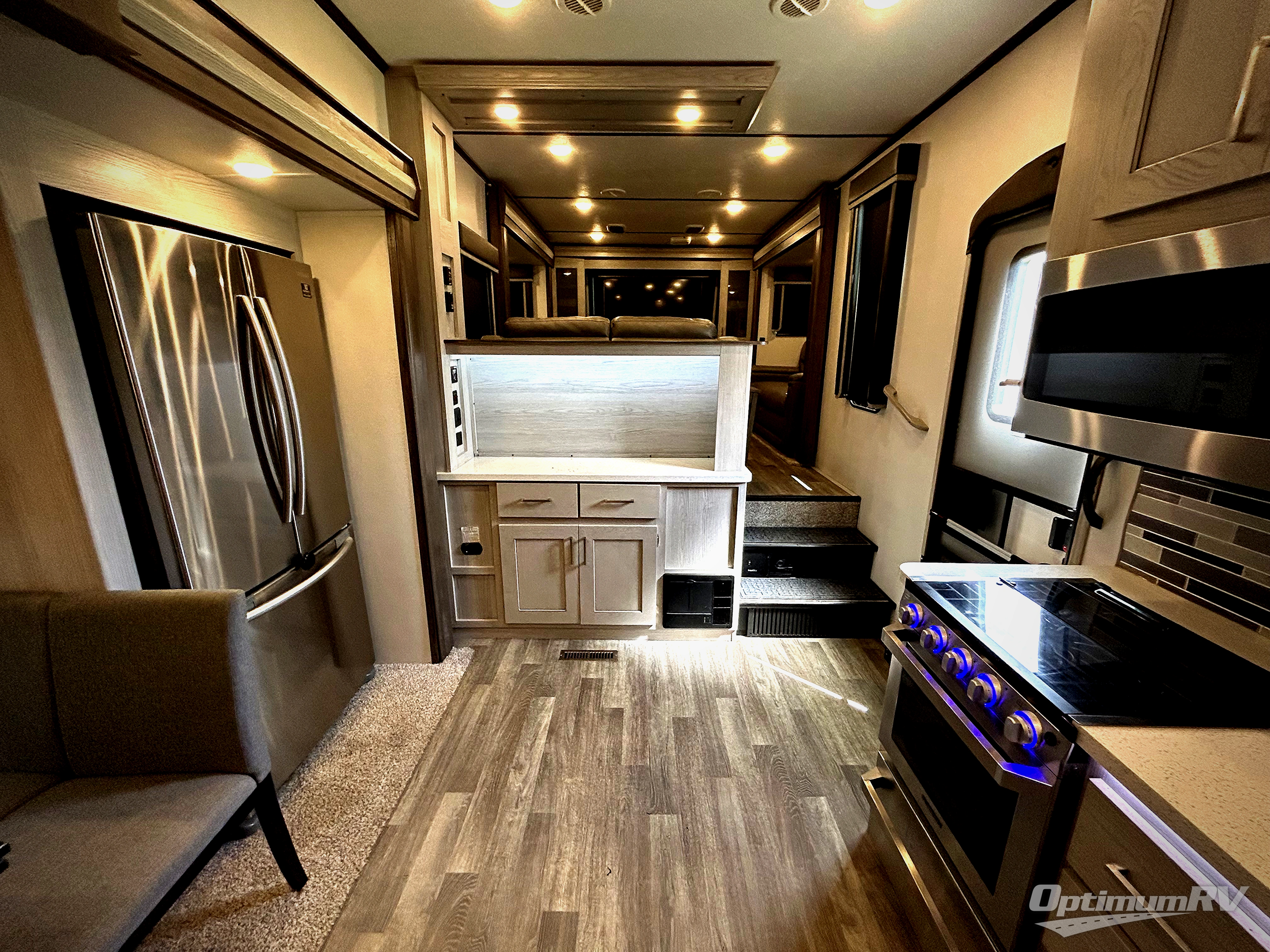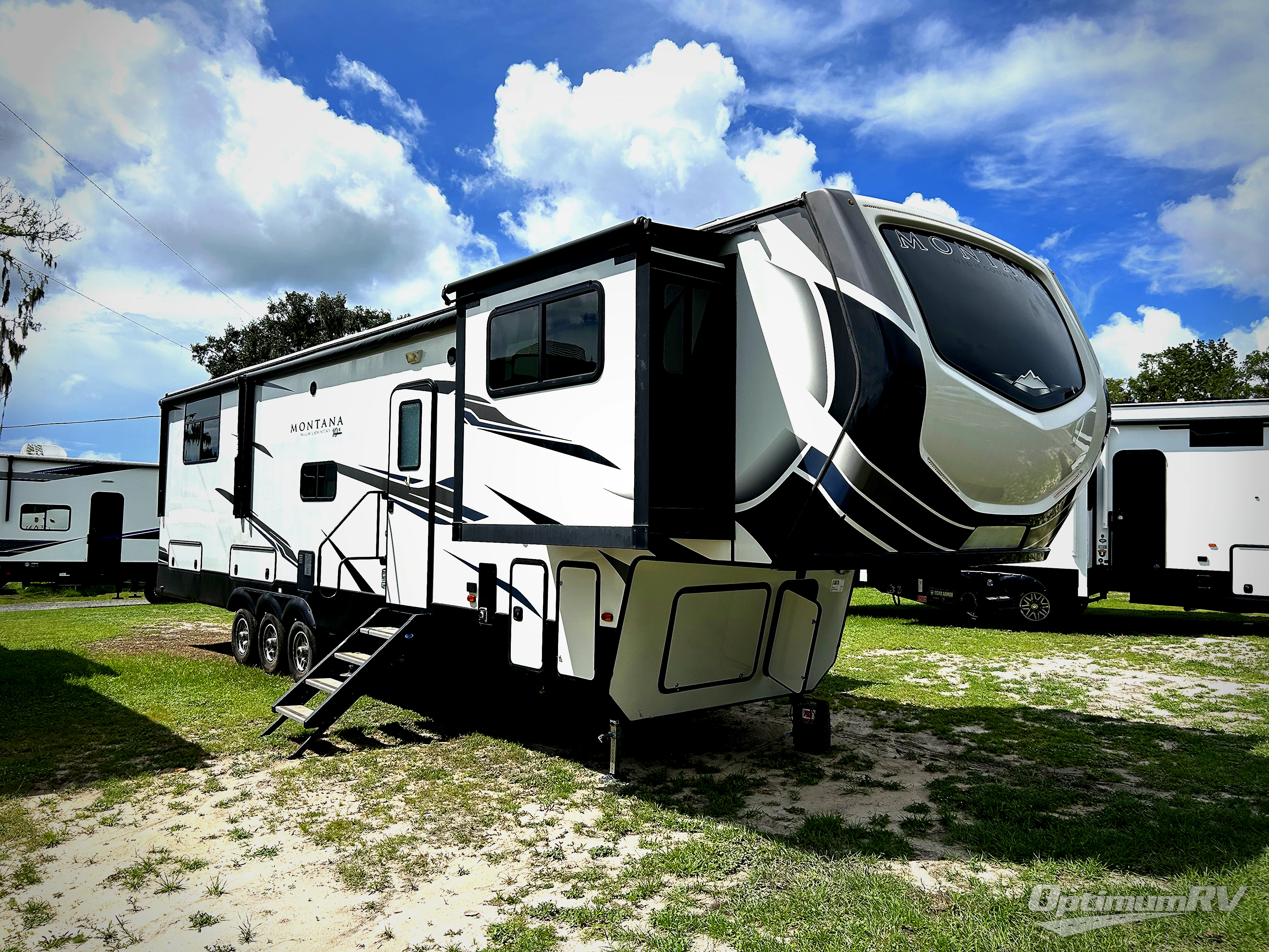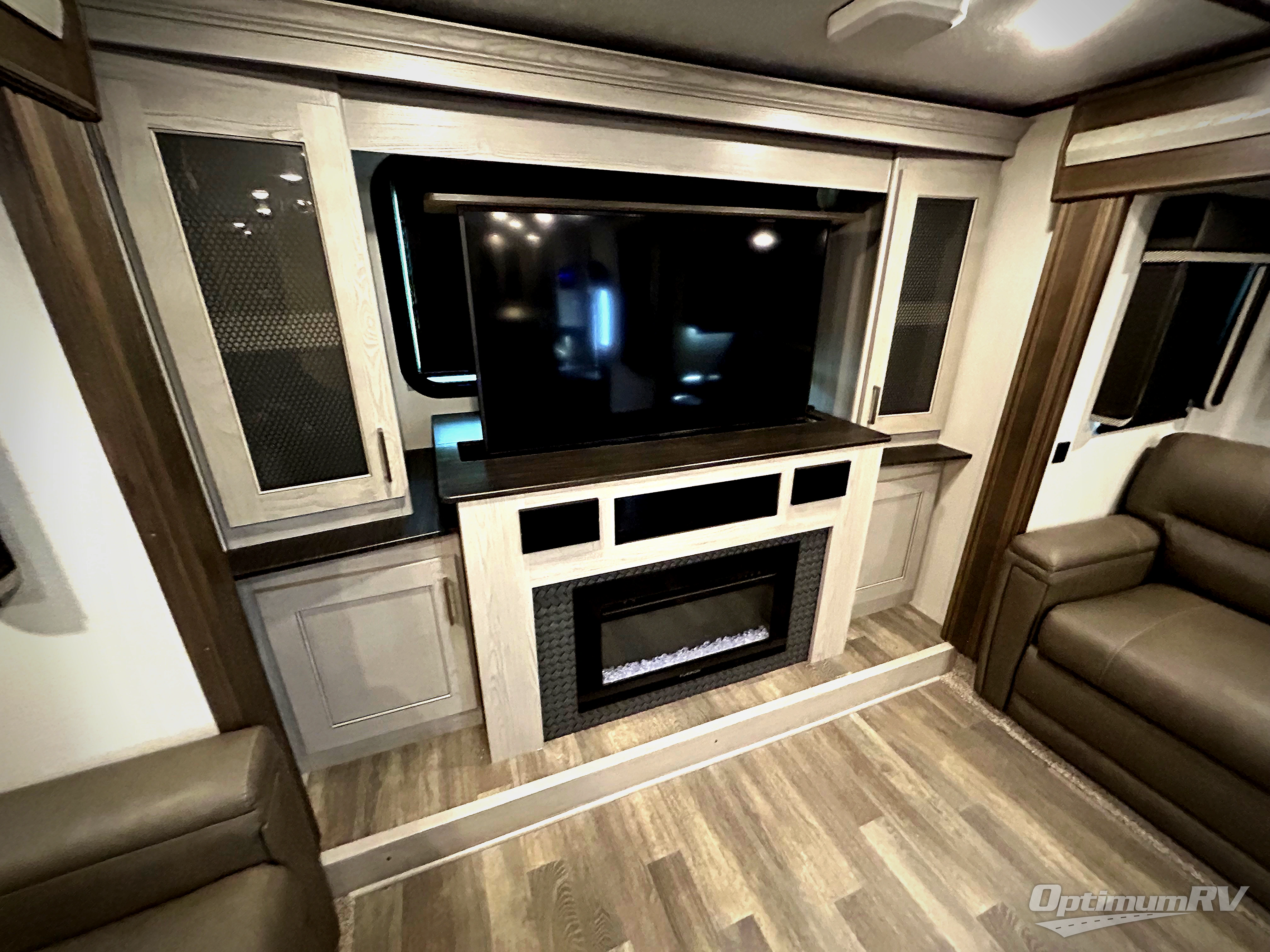 Have you been envisioning your golf cart going with you to your favorite destination? Have you been searching for the perfect fifth wheel? This Montana High Country toy hauler fifth wheel might just be the perfect answer! Model 380TH allows you to camp comfortably, and has space to take along your favorite ride on toy! Below the rear bedroom you will find a unique garage with a motion sensor LED light and a ramp door for easy loading and unloading. The front living area includes a telescoping HD LED TV above an LED fireplace, plenty of seating choices, and a front patent-pending windshield design providing amazing views. The cook will enjoy making meals in the kitchen which also includes a hutch and a 18 cu. ft. residential refrigerator. The bedroom features a queen bed, an HD LED TV, and a large slide out wardrobe. Choose this fun RV today!