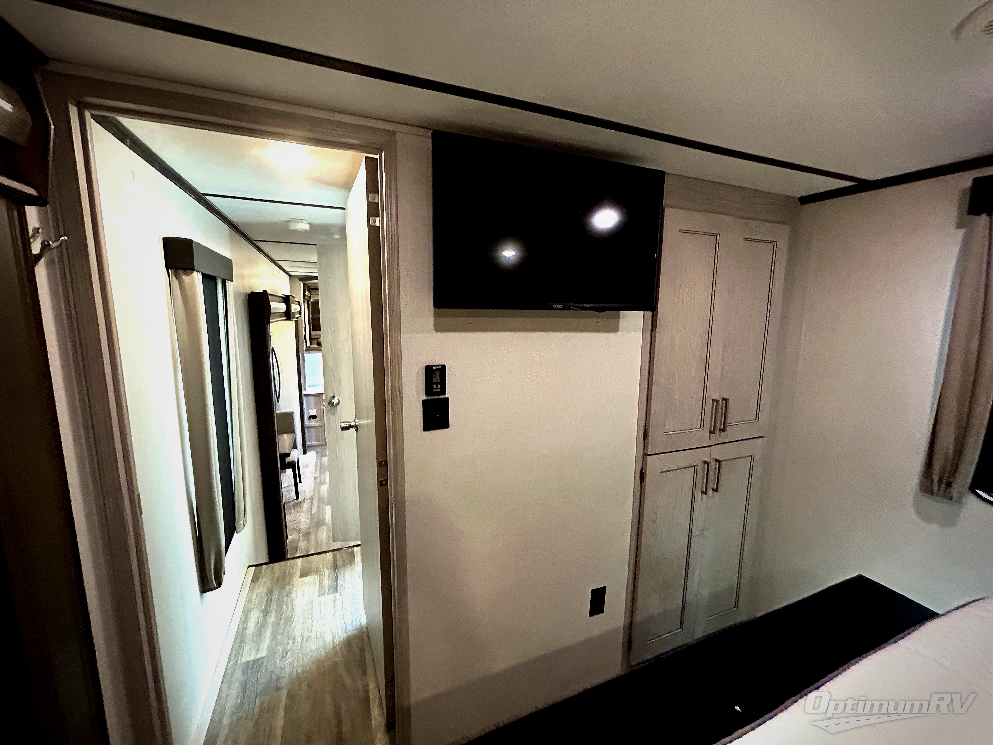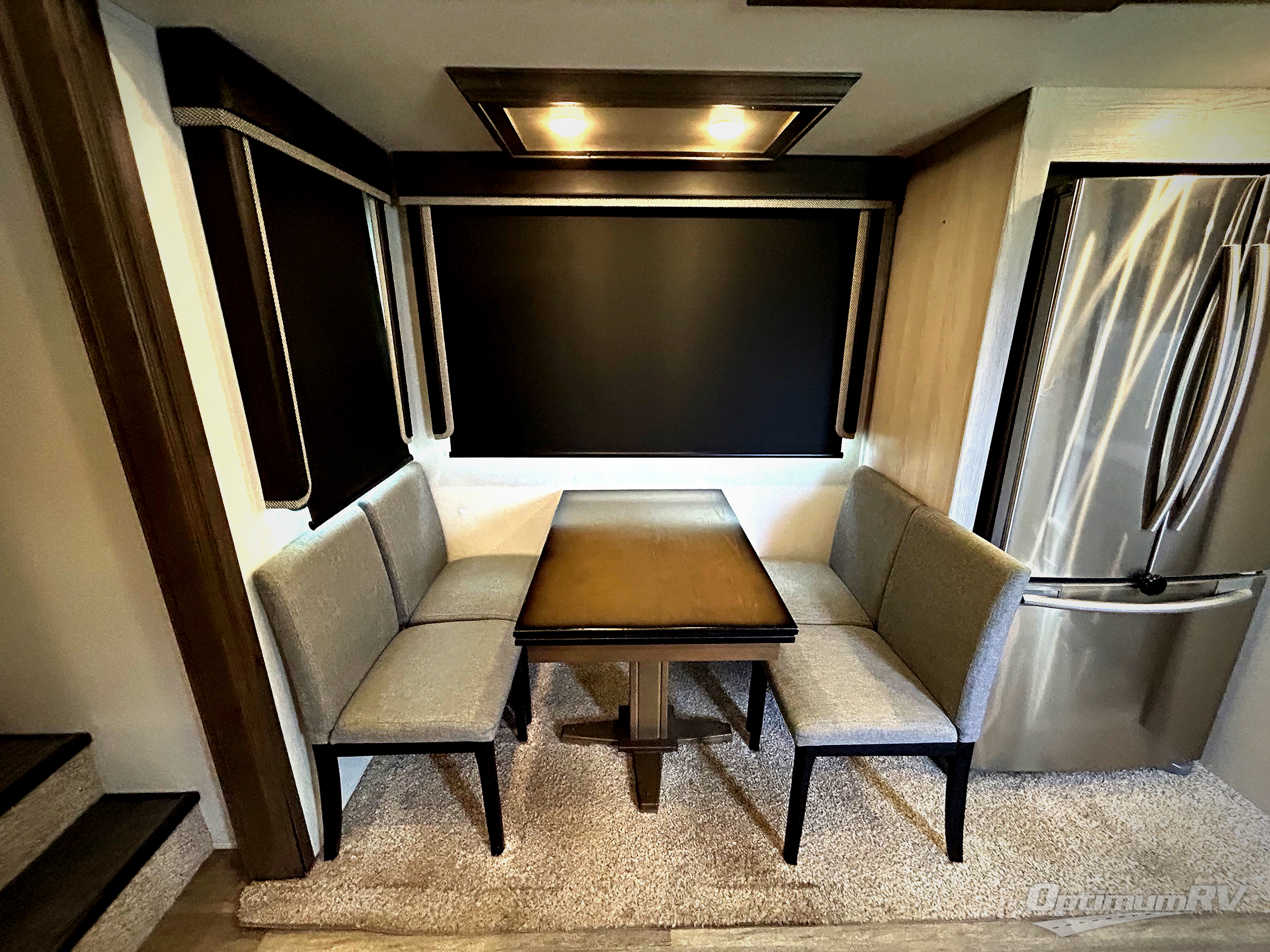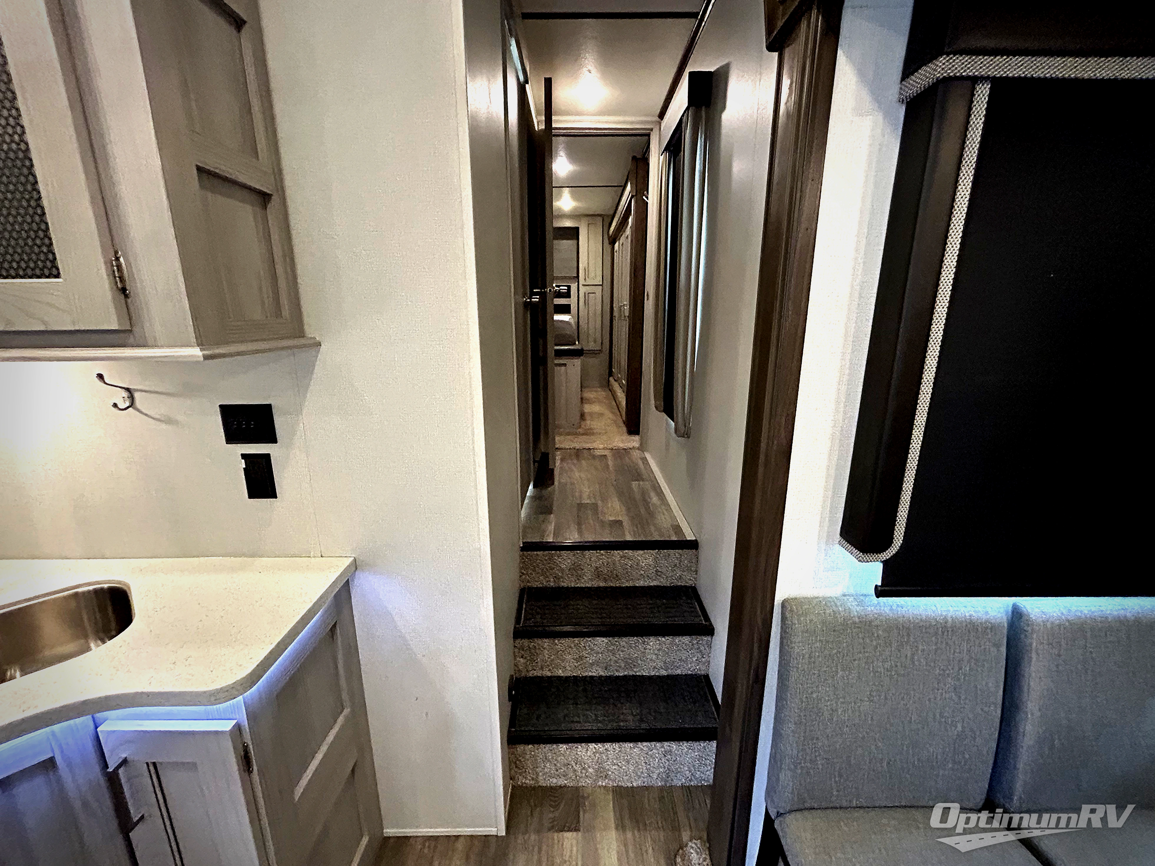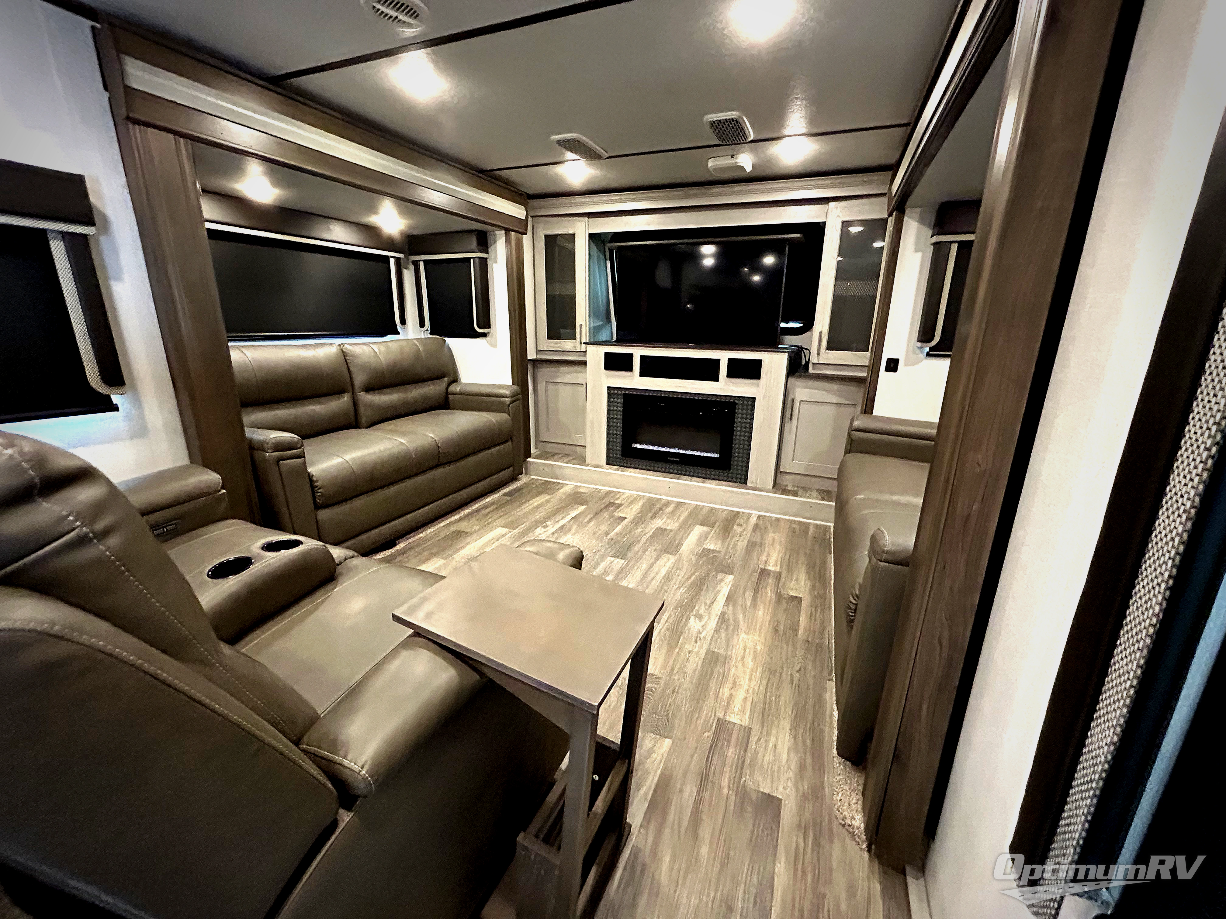 Have you been envisioning your golf cart going with you to your favorite destination? Have you been searching for the perfect fifth wheel? This Montana High Country toy hauler fifth wheel might just be the perfect answer! Model 380TH allows you to camp comfortably, and has space to take along your favorite ride on toy! Below the rear bedroom you will find a unique garage with a motion sensor LED light and a ramp door for easy loading and unloading. The front living area includes a telescoping HD LED TV above an LED fireplace, plenty of seating choices, and a front patent-pending windshield design providing amazing views. The cook will enjoy making meals in the kitchen which also includes a hutch and a 18 cu. ft. residential refrigerator. The bedroom features a queen bed, an HD LED TV, and a large slide out wardrobe. Choose this fun RV today!
