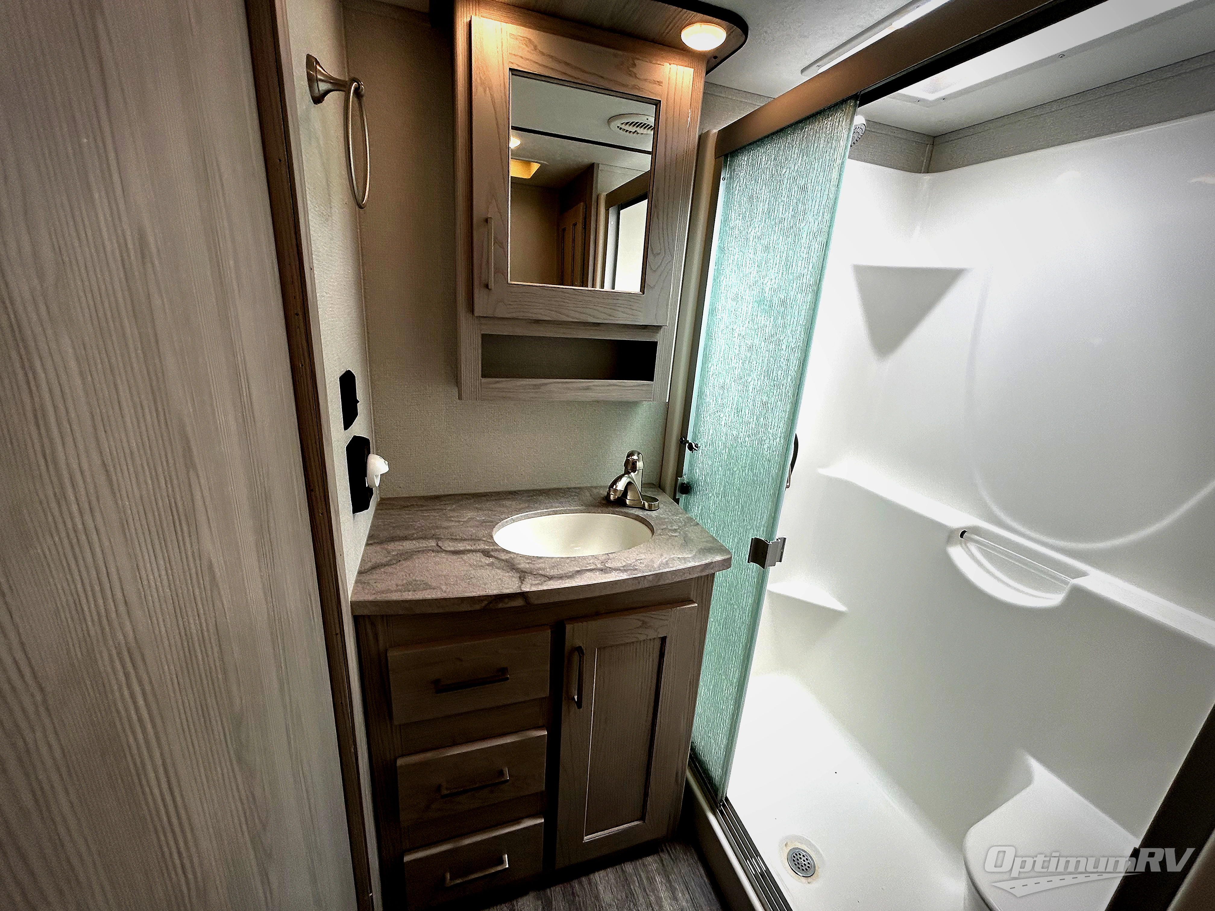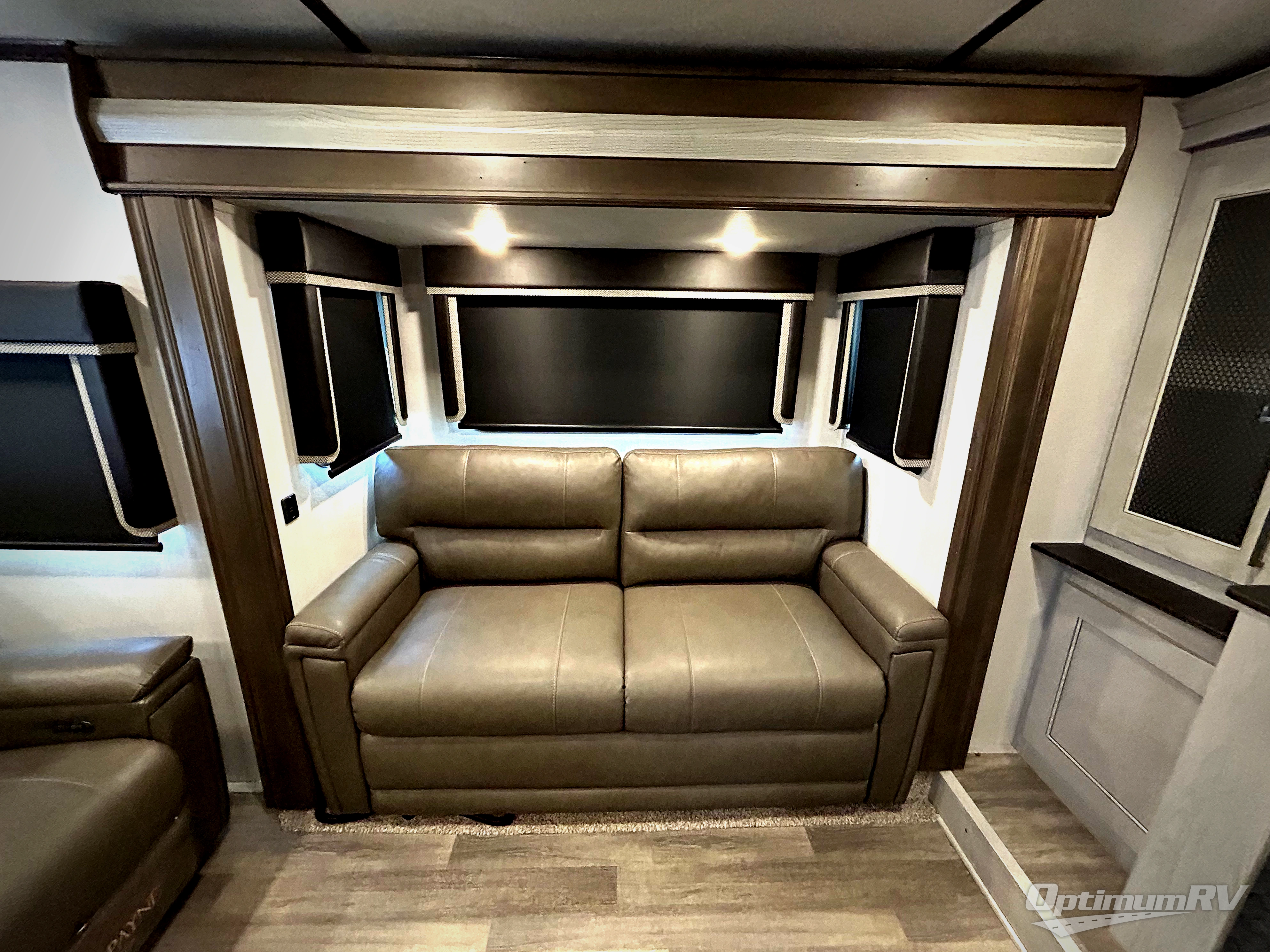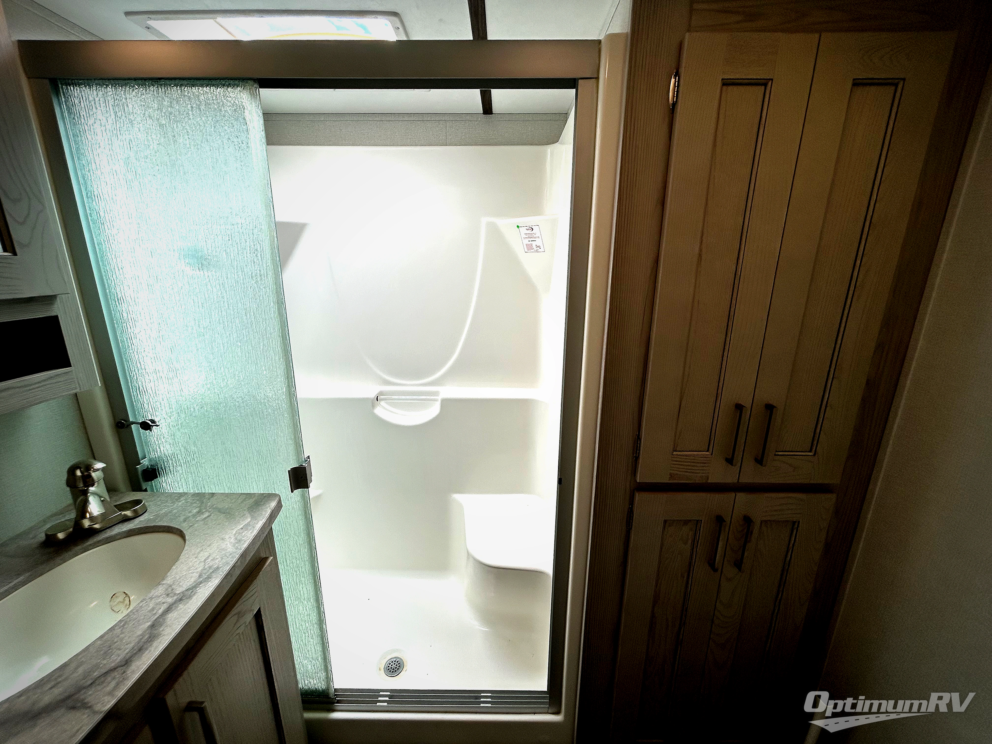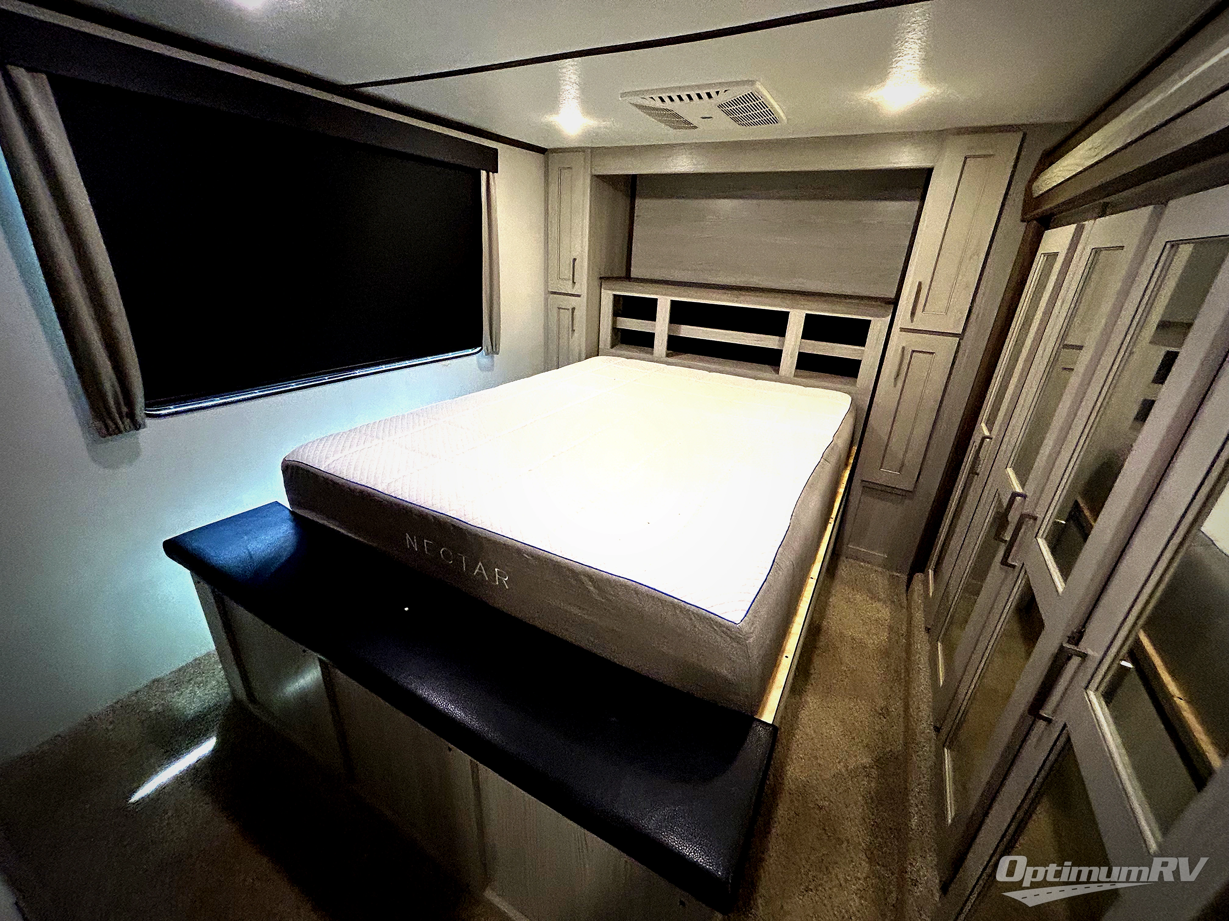 Have you been envisioning your golf cart going with you to your favorite destination? Have you been searching for the perfect fifth wheel? This Montana High Country toy hauler fifth wheel might just be the perfect answer! Model 380TH allows you to camp comfortably, and has space to take along your favorite ride on toy! Below the rear bedroom you will find a unique garage with a motion sensor LED light and a ramp door for easy loading and unloading. The front living area includes a telescoping HD LED TV above an LED fireplace, plenty of seating choices, and a front patent-pending windshield design providing amazing views. The cook will enjoy making meals in the kitchen which also includes a hutch and a 18 cu. ft. residential refrigerator. The bedroom features a queen bed, an HD LED TV, and a large slide out wardrobe. Choose this fun RV today!