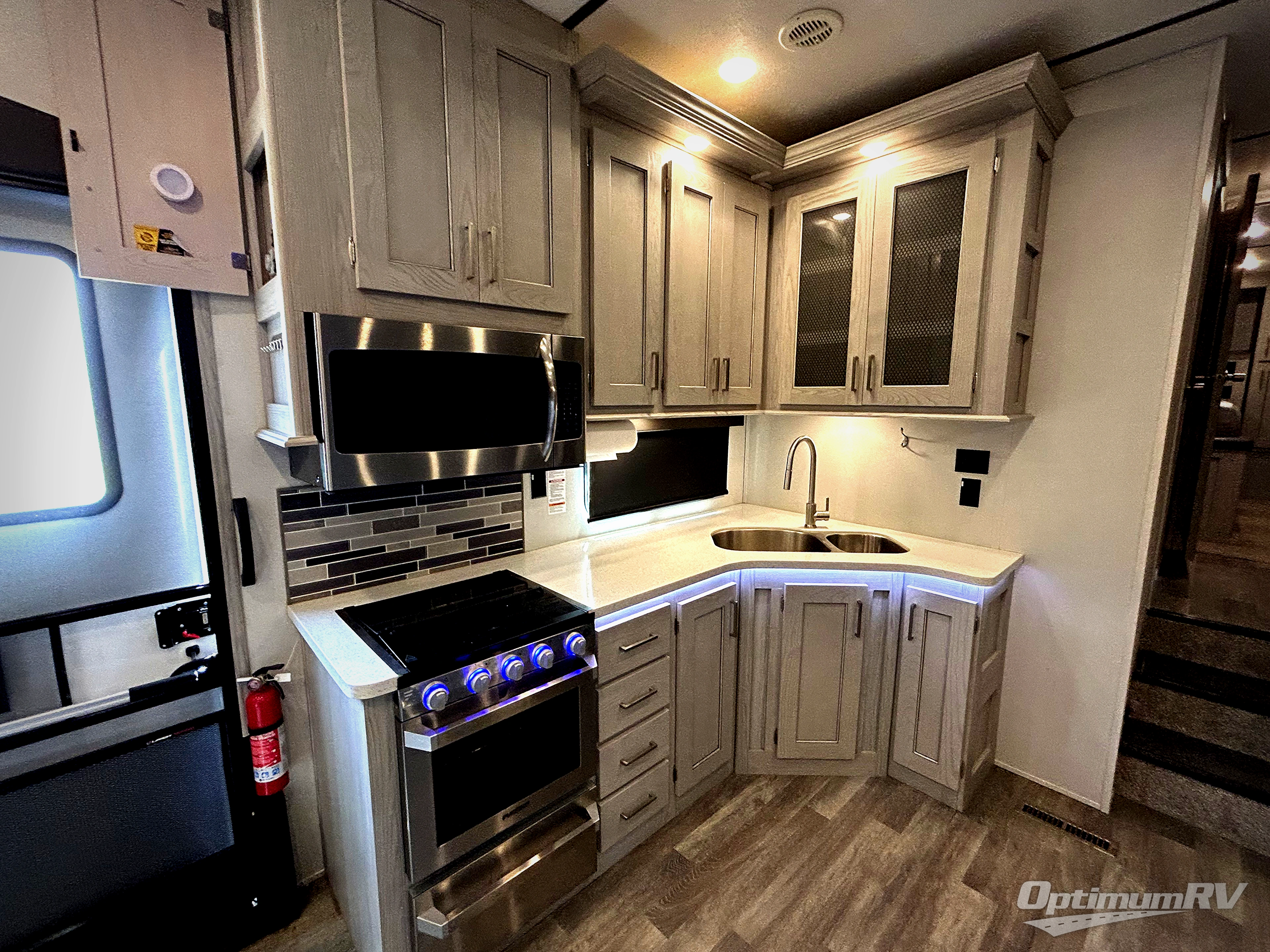 When heading out and setting up in a Keystone Montana High Country fifth wheel you will appreciate the Dexter E-Z Lube axles, Max Turn front cap and radius frame with Hitch Vision, and an enormous drop frame pass-through storage compartment to name a few features. Inside you will find luxury and comfort with the 78" tall main slide outs and flush mounted LED interior lights. The bath features a skylight over the shower, seamless countertops, and a vanity with three drawers for extra storage space!. The chef of the family is going to love the Montana High Country's kitchen with its Furrion 21" two in one stainless steel cooktop and oven, a 30" over-the-range microwave, solid surface countertops, and a high-rise faucet with an integrated pull-out sprayer, plus so much more!
