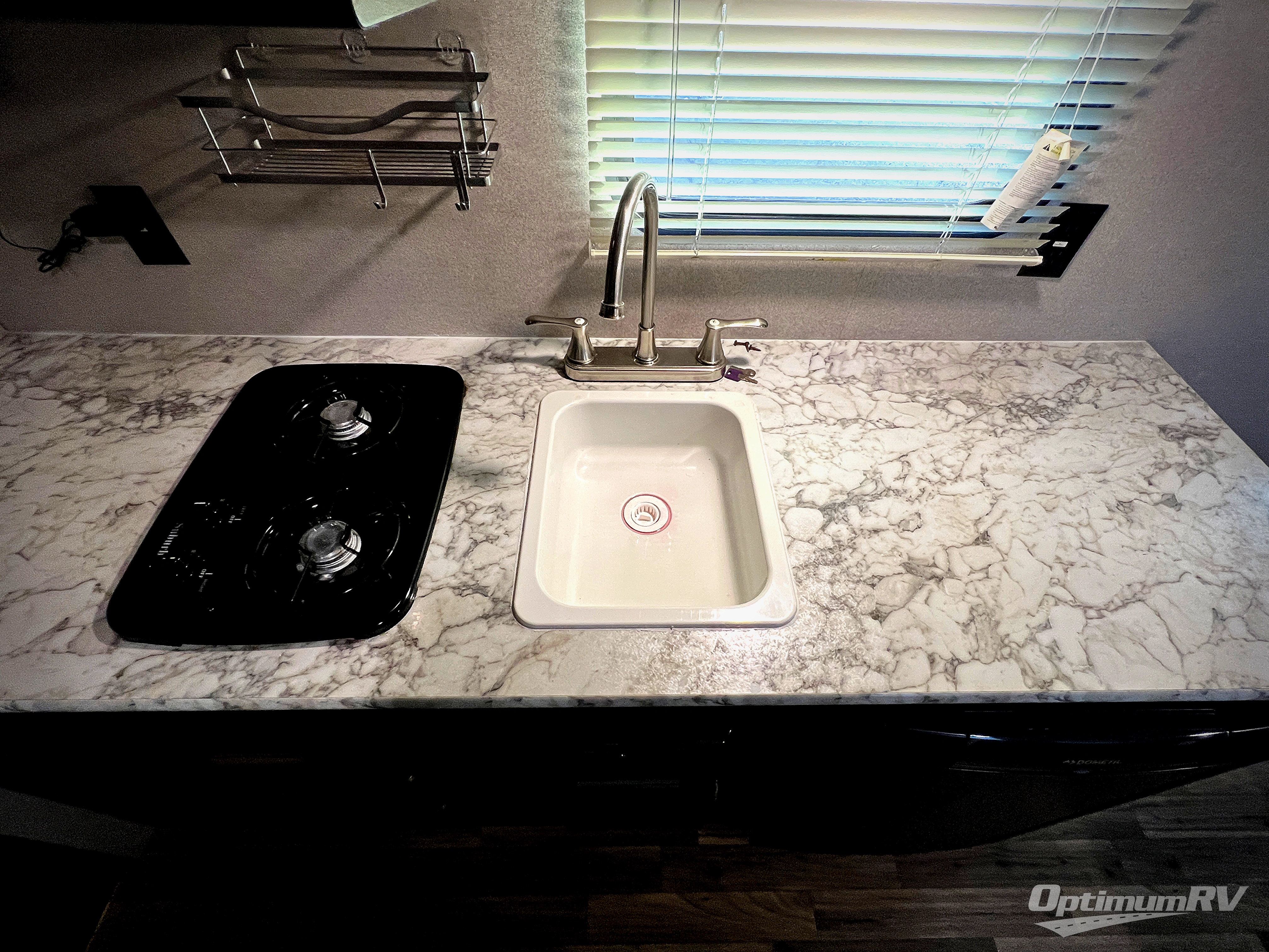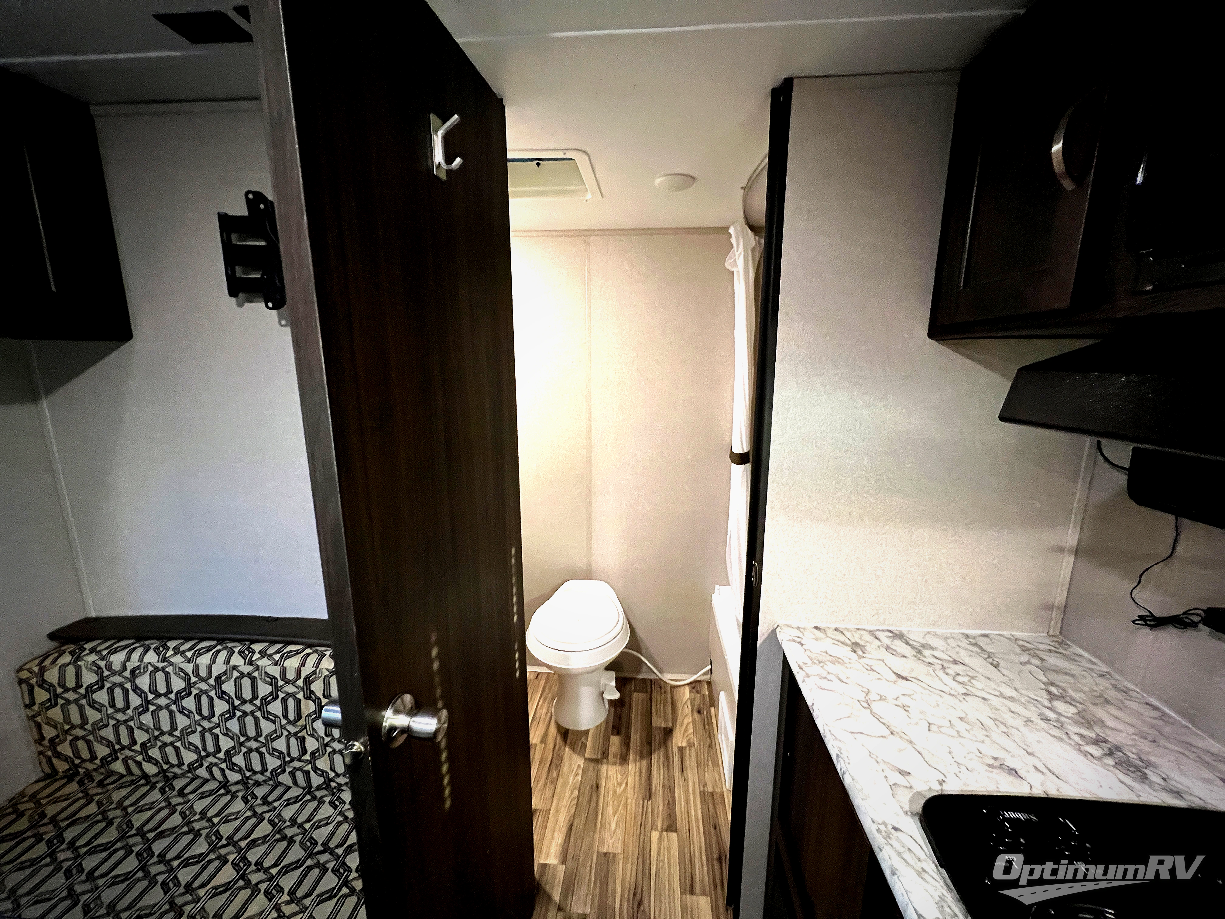 This is the perfect couples coach for any camping trip! You will find a rear full bath and a front queen bed in this Springdale Mini travel trailer. This single axle model 1700FQ is just right for summer camping for two or three individuals when you convert the booth dinette into an extra sleeping space. The convenient rear bathroom has everything you need to easily get ready for the day. In the kitchen you can quickly fix a snack or your meal with the two burner range, or even the sleek back Furrion microwave, plus there is plenty of storage with the overhead cabinets and the exterior pass through storage to hold all of your camping gear!