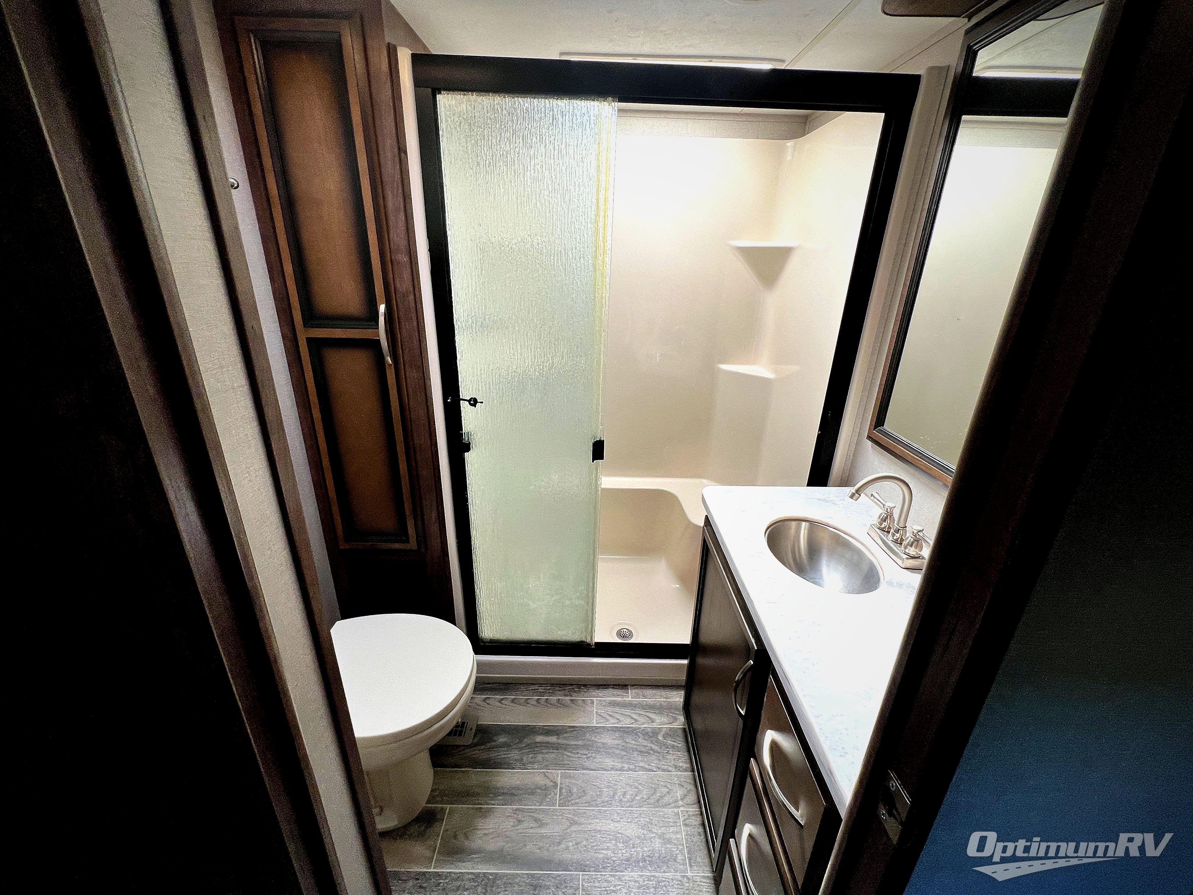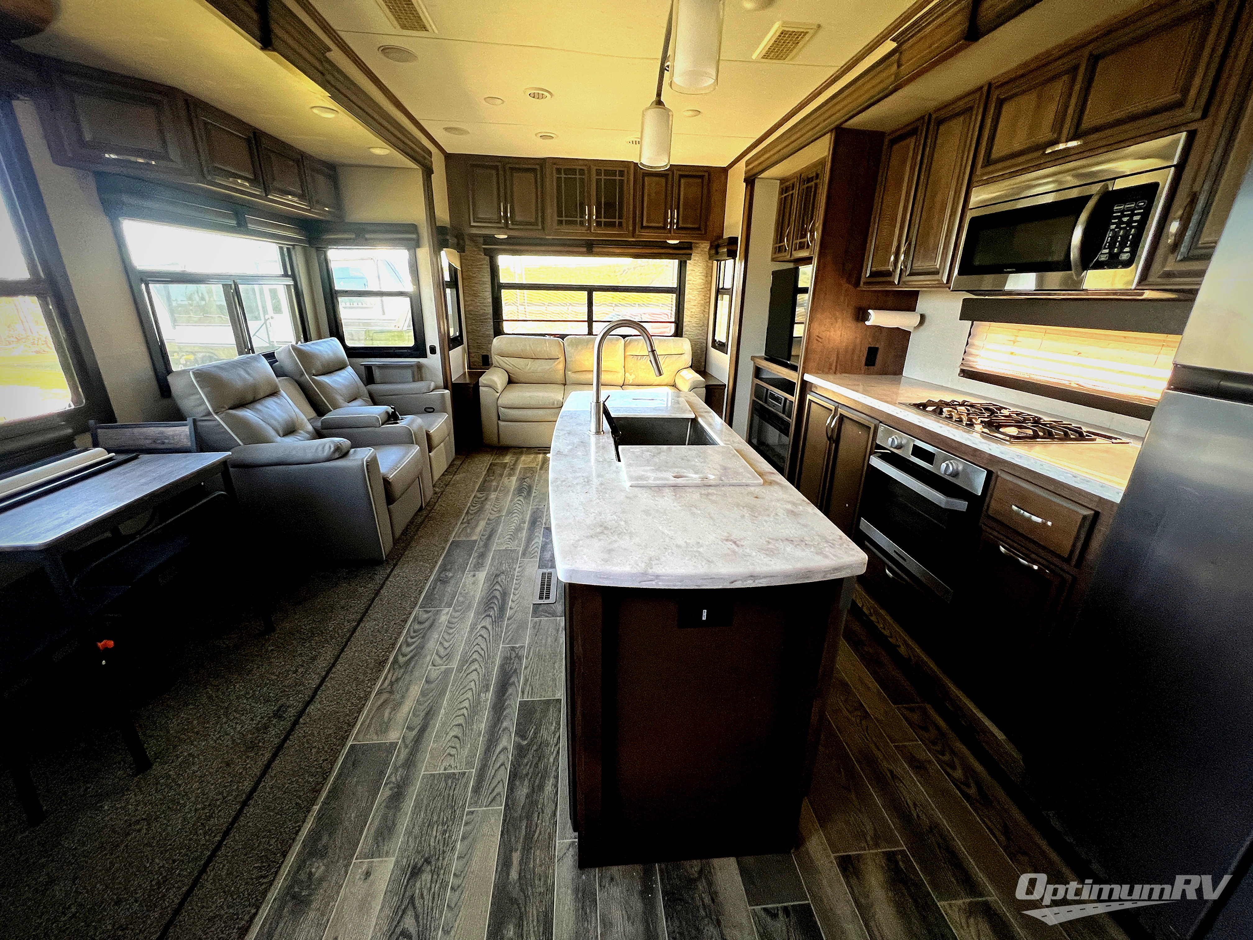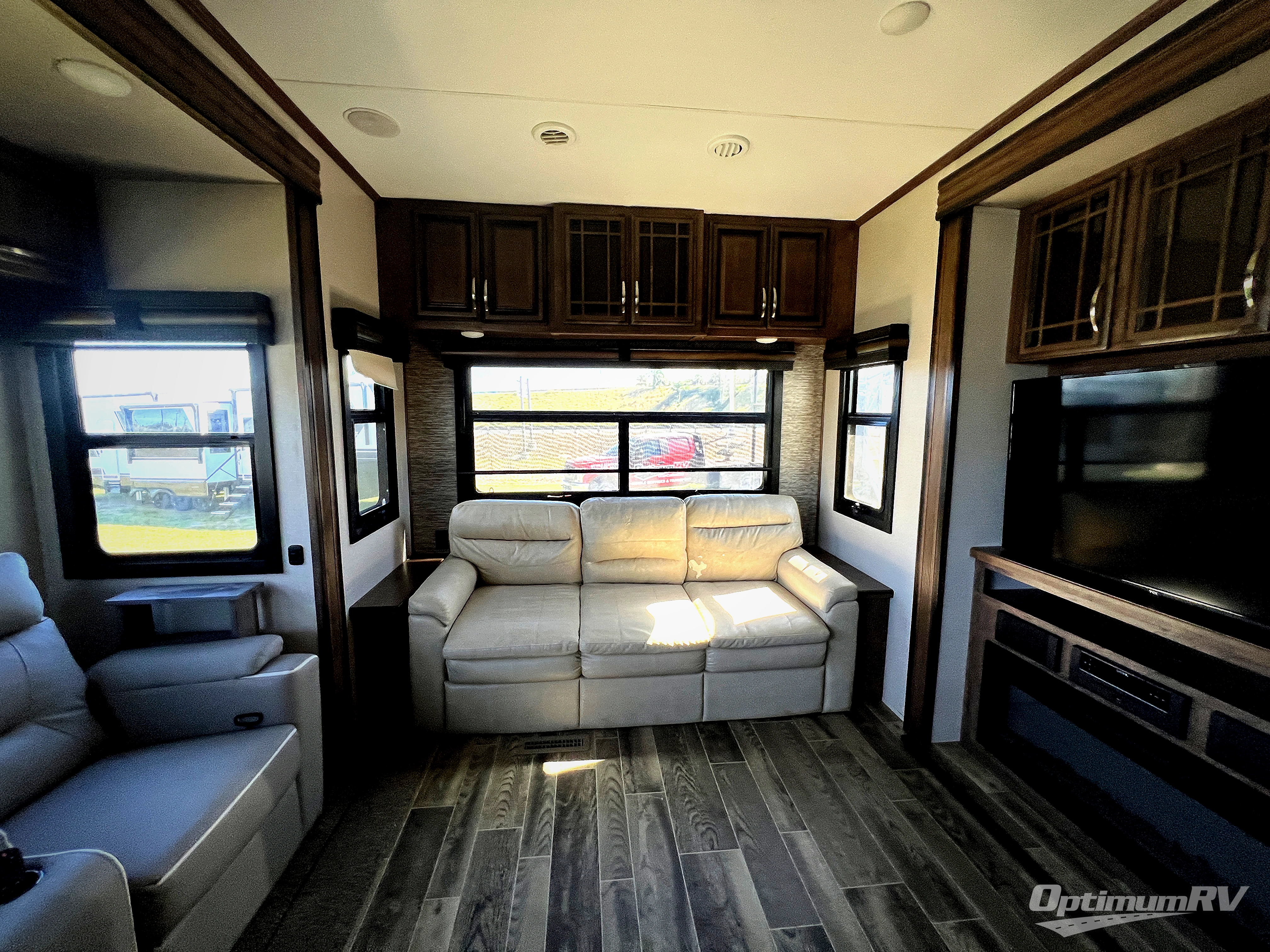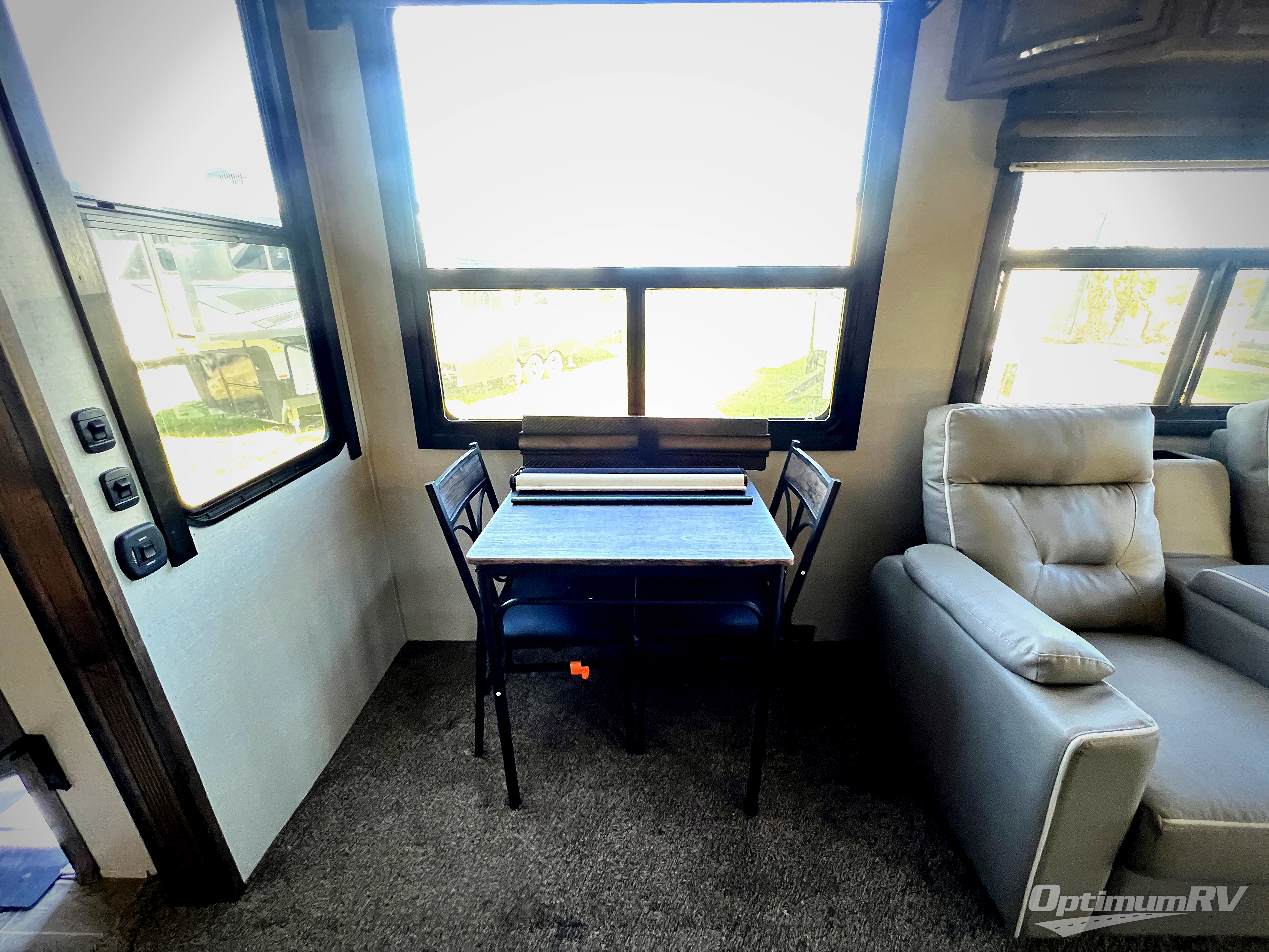 Step up into full-time RV living the right way, in this Durango Gold fifth wheel. You'll love the space you have thanks to the dual opposing slides in the rear kitchen/living area and there is a third slide in the front master suite for even more space. Spend your days exploring or just relaxing outside under the power awning and the full bath will allow you to clean up just like you do at home. Watch your favorite shows on the 50" LED TV or catch up on some reading with the cozy fireplace on. Since this model features theater seating with heat, massage, LED lit cup holders, and power recline, you may never want to leave your seat! When it's time to call it a night, the electric tilt king bed will provide a great night's rest and you'll find plenty of storage for all your clothes, including a dresser with hidden storage!