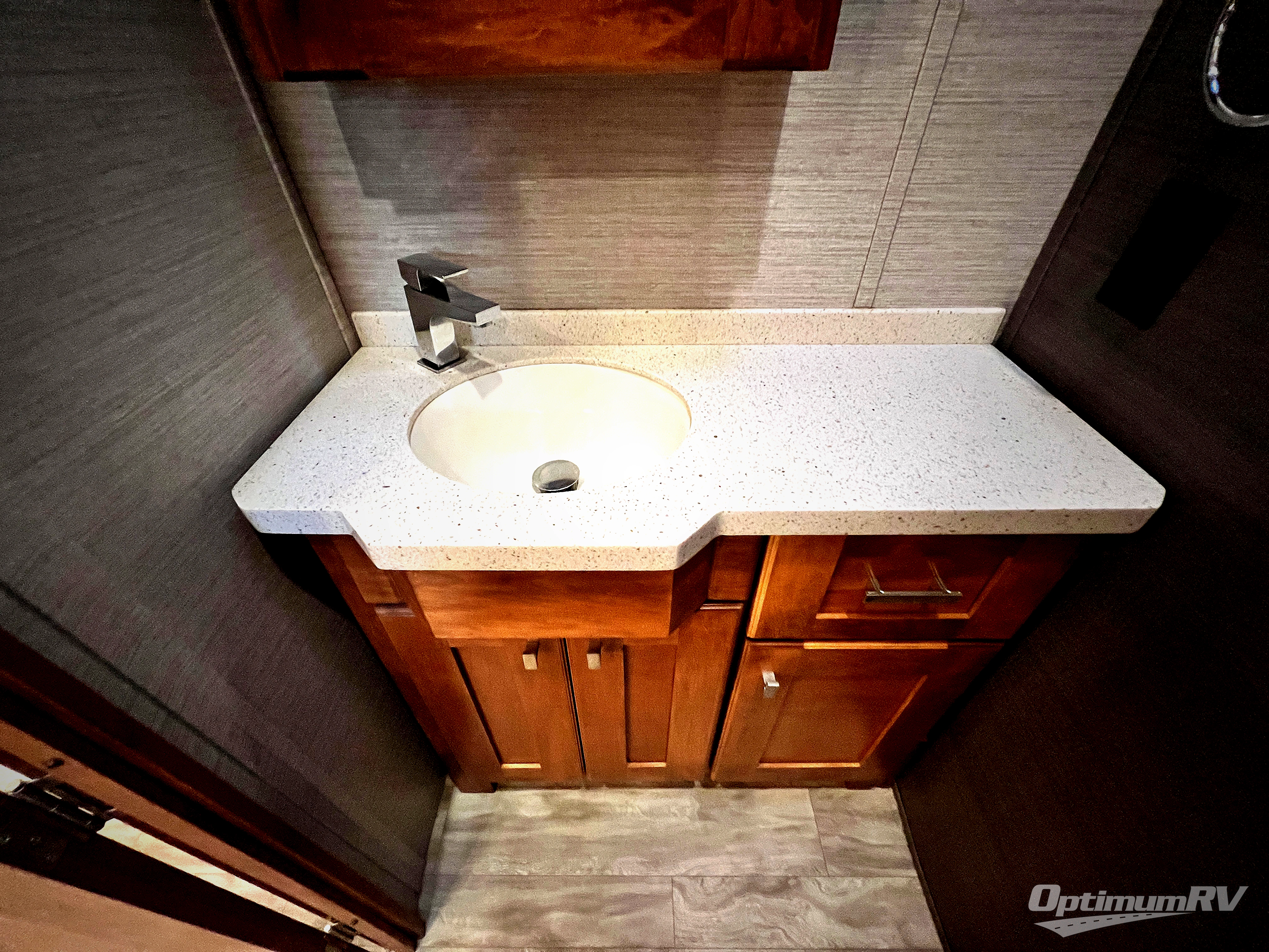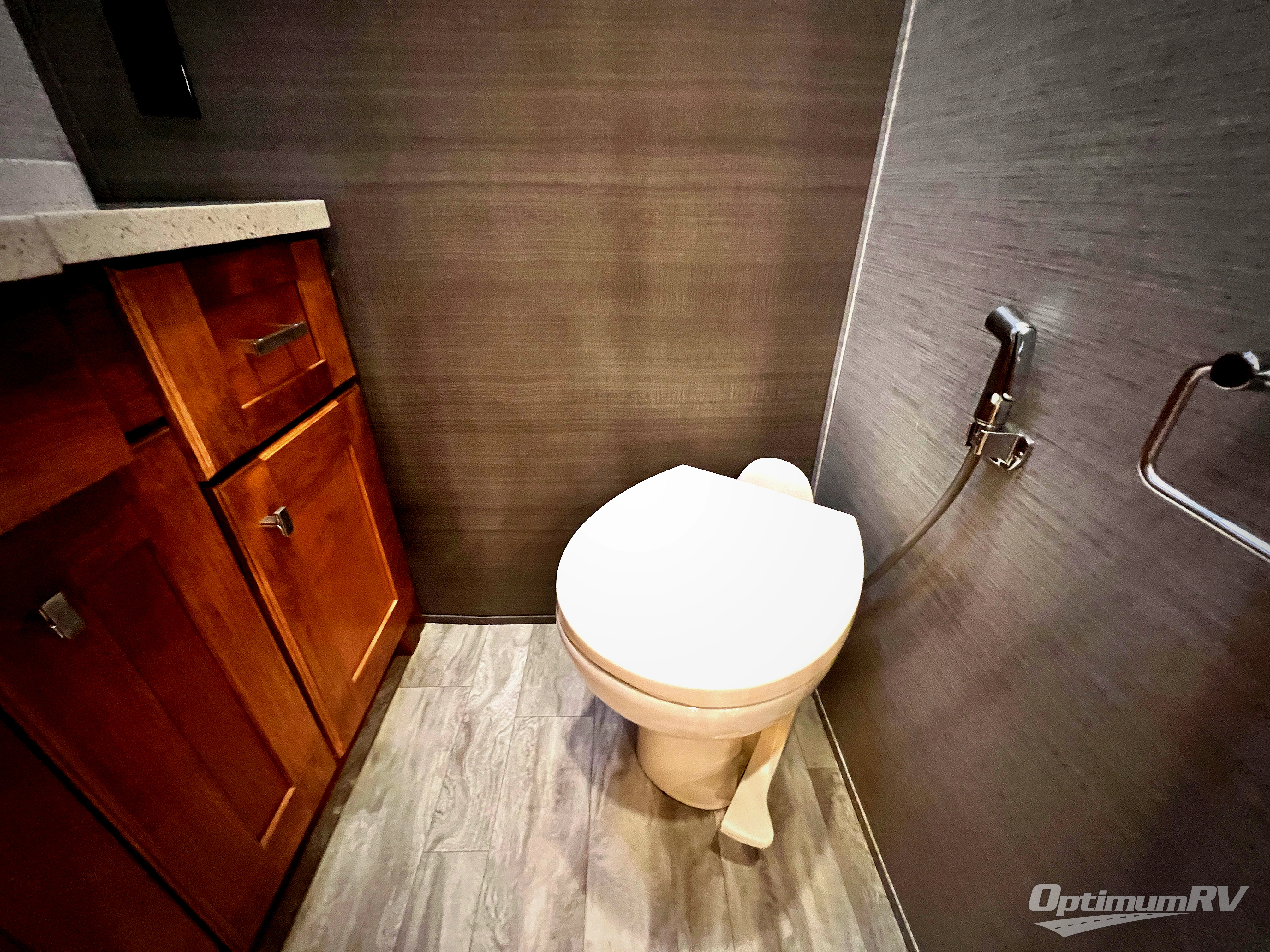 Don't wait another moment to test out this fabulous and accommodating Vilano fifth wheel for yourself! You'll see just how spectacular this unit is once you check out the full and half bath. The full bathroom in the front creates a luxurious master suite for you and your spouse, and it houses a dual-sink vanity so that you both can get ready quickly in the morning. After that, you can head out to the kitchen for a delicious breakfast around the kitchen island or the free-standing table with chairs.