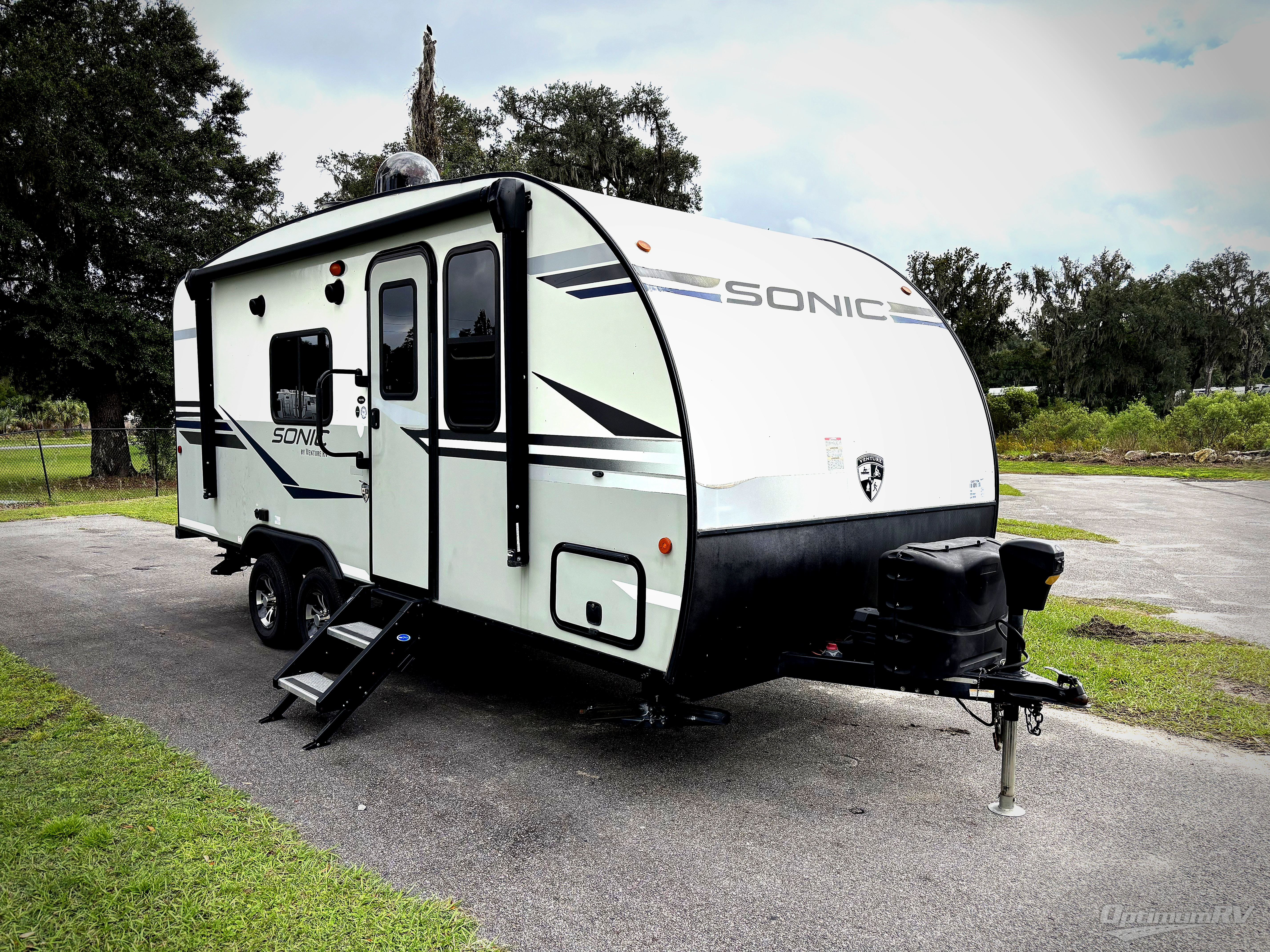With any Sonic travel trailer by Venture RV you will appreciate the NXG frame, providing a strong and lightweight foundation, and the one-piece fiberglass roof system which helps to prevent potential leaks. Inside, you will find plenty comforts of home such as your own bedding, Tufted dinette cushions, a Safe-Tek box with a USB charger, and stainless steel accented appliances. Each unit has been prewired for solar and backup camera, plus there is a motion lighted pass-through storage so you can bring along those larger camping items with ease. Choose your favorite layout and start exploring today!